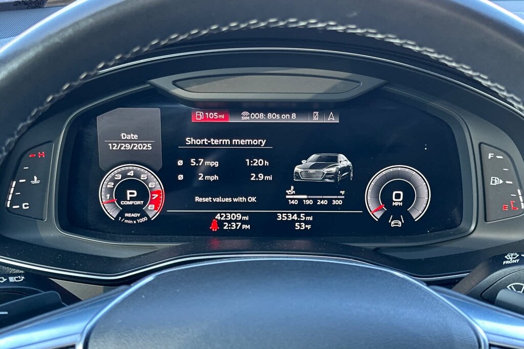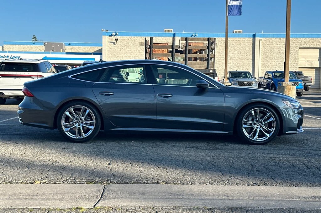 Lithia Ford and Lincoln of Fresno is pleased to offer this Daytona Gray Pearl 2021 Audi A7 55 Premium Plus for purchase, this vehicle is well equipped with many features including: Convenience Package (Audi Phone Box w/Wireless Charging, Heated 3-Spoke Multifunction Steering Wheel, and Top View Camera System w/Virtual 360 View), Executive Package (Heated Rear Seats), Premium Plus (Contrast Stitching on Door Armrests and HD Matrix-Design Headlights & Washer System), S-Line Package (Illuminated S Line Door Sills, S Line Fender Badge, and Sport Suspension), Audi Certified, 10 Speakers, 4-Wheel Disc Brakes, ABS brakes, Air Conditioning, Alloy wheels, AM/FM radio: SiriusXM, Audi smartphone interface (Apple CarPlay/Android Auto), Auto High-beam Headlights, Auto tilt-away steering wheel, Auto-dimming door mirrors, Auto-dimming Rear-View mirror, Automatic temperature control, Brake assist, Bumpers: body-color, Compass, Delay-off headlights, Driver door bin, Driver vanity mirror, Dual front impact airbags, Dual front side impact airbags, Electronic Stability Control, Emergency communication system: Audi connect CARE, Exterior Parking Camera Rear, Four wheel independent suspension, Front & Rear Doors Audi Beam-Rings, Front anti-roll bar, Front Bucket Seats, Front Center Armrest, Front dual zone A/C, Front fog lights, Front reading lights, Garage door transmitter: HomeLink, Genuine wood console insert, Genuine wood dashboard insert, Genuine wood door panel insert, Heated door mirrors, Heated Front Bucket Seats, Heated front seats, Illuminated entry, Knee airbag, Leather Seating Surfaces, Leather Shift Knob, Low tire pressure warning, Memory seat, Navigation system: MMI Navigation plus, Occupant sensing airbag, Outside temperature display, Overhead airbag, Overhead console, Panic alarm, Passenger door bin, Passenger vanity mirror, Power door mirrors, Power driver seat, Power Liftgate, Power moonroof, Power passenger seat, Power steering, Power windows, Radio data system, Radio: MMI Navigation Plus, Rain sensing wipers, Rear air conditioning, Rear anti-roll bar, Rear reading lights, Rear seat center armrest, Rear window defroster, Remote keyless entry, Security system, Speed control, Speed-sensing steering, Speed-Sensitive Wipers, Split folding rear seat, Spoiler, Steering wheel memory, Steering wheel mounted audio controls, Tachometer, Telescoping steering wheel, Tilt steering wheel, Traction control, Trip computer, Turn signal indicator mirrors, Variably intermittent wipers, and Wheels: 20 5-Twin-Arm Design. quattro 3.0L V6 Turbocharged DOHC 24V LEV3-ULEV70 335hp 7-Speed Automatic S tronic 55 Premium Plus quattro