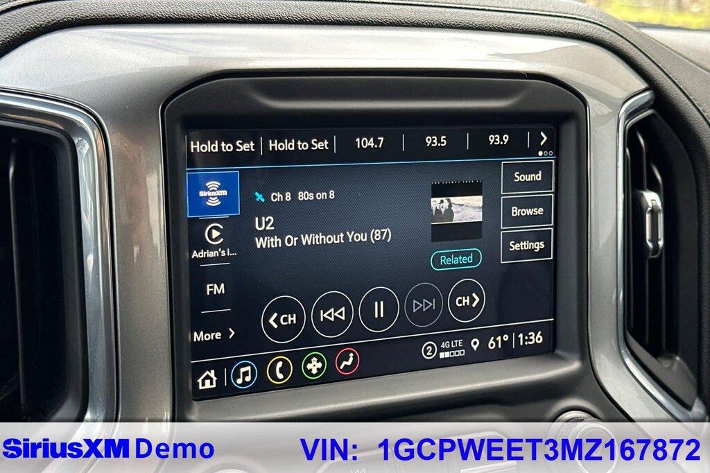 Lithia Ford and Lincoln of Fresno is pleased to offer this Shadow Gray Metallic 2021 Chevrolet Silverado 1500 LTZ for purchase, this vehicle is well equipped with many features including: LTZ Convenience Package (2 USB Ports (First Row), Floor Mounted Center Console, Power Sliding Rear Window w/Rear Defogger, Universal Home Remote, and Ventilated Driver & Front Passenger Seats), LTZ Plus Package, Preferred Equipment Group 1LZ (10-Way Power Driver Seat w/Lumbar, 10-Way Power Passenger Seat Adjuster w/Lumbar, 12-Volt Rear Auxiliary Power Outlet, 120-Volt Bed Mounted Power Outlet, 120-Volt Instrument Panel Power Outlet, 2 USB Ports, 4.2 Diagonal Color Display Driver Info Center, 4G LTE Wi-Fi Hot Spot Capable, 6-Speaker Audio System, Advanced Trailering System, Auto-Dimming Inside Rear-View Mirror, Auto-Locking Rear Differential, Auxiliary External Transmission Oil Cooler, Bluetoothî For Phone, Chevrolet Connected Access Capable, Chrome Grille, Chrome Mirror Caps, Color-Keyed Carpeting Floor Covering, Compass, Deep-Tinted Glass, Driver Memory, Electric Rear-Window Defogger, Electrical Lock Control Steering Column, Electronic Cruise Control, Front LED Fog Lamps, Front Rubberized Vinyl Floor Mats, HD Rear Vision Camera, Heated Driver & Front Outboard Passenger Seats, Heated Steering Wheel, Hitch Guidance w/Hitch View, Integrated Trailer Brake Controller, Keyless Open & Start, Leather Wrapped Steering Wheel, LED Cargo Area Lighting, Manual Tilt/Telescoping Steering Column, OnStar & Chevrolet Connected Services Capable, Outside Heated Power-Adjustable Mirrors, Power Door Locks, Power Front Passenger Windows w/Express Up/Down, Power Front Windows w/Driver Express Up/Down, Power Rear Windows w/Express Down, Power Tailgate, Rear Dual USB Charging-Only Ports, Rear Rubberized-Vinyl Floor Mats, Rear Wheelhouse Liners, Remote Vehicle Starter System, SiriusXM w/360L, Standard Tailgate, Steering Wheel Audio Controls, Theft Deterrent System (Unauthorized Entry), and Wireless Phone Projection), Safety Package (Front Frame-Mounted Black Recovery Hooks, Lane Change Alert w/Side Blind Zone Alert, Perimeter Lighting, Rear Cross Traffic Alert, and Ultrasonic Front & Rear Park Assist), Trailering Package (Hitch Guidance), Up-Level Rear Seat w/Storage Package, GM Certified, 10-Speed Automatic, Jet Black Leather, 170 Amp Alternator, 220 Amp Alternator, 3.23 Rear Axle Ratio, 4-Wheel Disc Brakes, 6 Speakers, ABS brakes, Air Conditioning, Alloy wheels, AM/FM radio: SiriusXM with 360L, Apple CarPlay/Android Auto, Auto-dimming door mirrors, Auto-dimming Rear-View mirror, Automatic temperature control, Brake assist, Bumpers: chrome, Delay-off headlights, Driver door bin, Driver vanity mirror, Dual front impact airbags, Dual front side impact airbags, Electronic Stability Control, Engine Block Heater, Front anti-roll bar, Front Bucket Seats, Front Center Armrest w/Storage, Front dual zone A/C, Front fog lights, Front License Plate Kit, Front reading lights, Front wheel independent suspension, Fully automatic headlights, Garage door transmitter, Heated door mirrors, Heated front seats, Heated steering wheel, Heavy Duty Suspension, Illuminated entry, Low tire pressure warning, Memory seat, Occupant sensing airbag, Outside temperature display, Overhead airbag, Overhead console, Panic alarm, Passenger door bin, Passenger vanity mirror, Perforated Leather-Appointed Front Seat Trim, Power door mirrors, Power driver seat, Power passenger seat, Power steering, Power windows, Premium audio system: Chevrolet Infotainment 3 Plus, Radio data system, Radio: Chevrolet Infotainment 3 Plus System, Rear reading lights, Rear seat center armrest, Rear step bumper, Rear window defroster, Remote keyless entry, Security system, Speed control, Speed-sensing steering, Split folding rear seat, Steering wheel mounted audio controls, Tachometer, Telescoping steering wheel, Tilt s