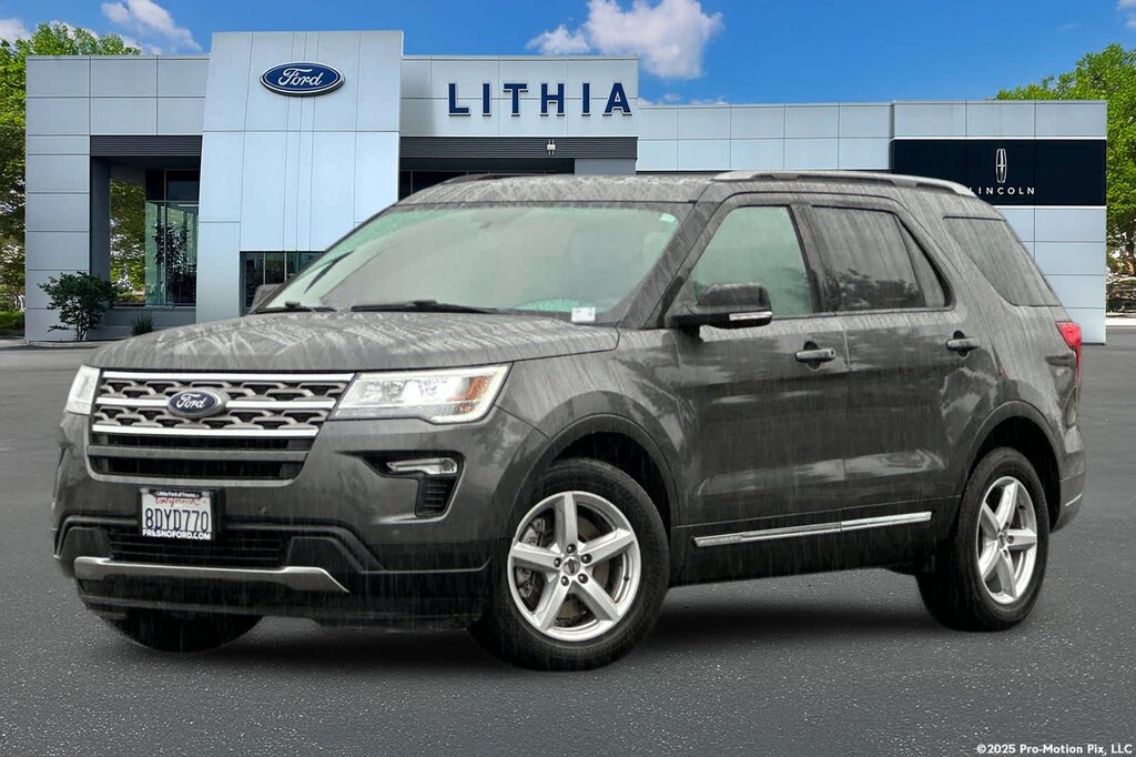 Lithia Ford and Lincoln of Fresno is pleased to offer this Magnetic 2018 Ford Explorer XLT for purchase, this vehicle is well equipped with many features including: Driver Connect Package (2 Driver Configurable 4.2 Color LCD Displays), Equipment Group 202A (Forward Sensing System, LED Fog Lamps, Power & Heated Glass Sideview Mirrors, Power Liftgate, Radio: AM/FM Stereo w/7 Speakers, and Remote Start System), XLT Technology Feature Bundle (Voice-Activated Touchscreen Navigation System), Ford Certified, 3.39 Non-Limited-Slip Axle Ratio, 3rd row seats: split-bench, 4-Wheel Disc Brakes, 6 Speakers, ABS brakes, Air Conditioning, Alloy wheels, AM/FM radio: SiriusXM, AM/FM Stereo, Brake assist, Bumpers: body-color, Compass, Delay-off headlights, Driver door bin, Driver vanity mirror, Dual front impact airbags, Dual front side impact airbags, Electronic Stability Control, Emergency communication system: 911 Assist, Exterior Parking Camera Rear, Four wheel independent suspension, Front anti-roll bar, Front Bucket Seats, Front Center Armrest, Front License Plate Bracket, Front reading lights, Fully automatic headlights, Heated door mirrors, Illuminated entry, Knee airbag, Leather steering wheel, Low tire pressure warning, Occupant sensing airbag, Outside temperature display, Overhead airbag, Overhead console, Panic alarm, Passenger door bin, Passenger vanity mirror, Power door mirrors, Power driver seat, Power passenger seat, Power steering, Power windows, Rear air conditioning, Rear anti-roll bar, Rear Parking Sensors, Rear reading lights, Rear seat center armrest, Rear window defroster, Rear window wiper, Remote keyless entry, Roof rack: rails only, Security system, Speed control, Speed-sensing steering, Speed-Sensitive Wipers, Split folding rear seat, Spoiler, Steering wheel mounted audio controls, SYNC Communication & Entertainment System, Tachometer, Telescoping steering wheel, Tilt steering wheel, Traction control, Trip computer, Variably intermittent wipers, and Wheels: 18 5-Spoke Sparkle Silver-Painted Alum. FWD 3.5L 6-Cylinder SMPI DOHC 6-Speed Automatic with Select-Shift XLT