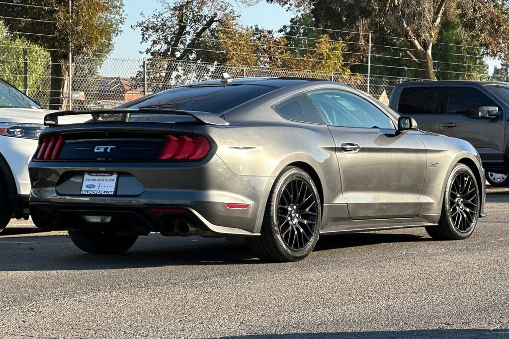 Lithia Ford and Lincoln of Fresno is pleased to offer this Magnetic 2020 Ford Mustang GT Premium for purchase, this vehicle is well equipped with many features including: Equipment Group 401A (Blind Spot Info System w/Cross-Traffic Alert), GT Performance Package (Engine Spun Aluminum Instrument Panel, Unique Stability Control, and Wheels: 19 x 9 Fr & 19 x 9.5 Rr Ebony Black), Premium Plus Package (Heated Steering Wheel and Voice-Activated Touch-Screen Navigation System), Ford Certified, 4-Wheel Disc Brakes, 9 Speakers, ABS brakes, Active Valve Performance Exhaust, Air Conditioning, Alloy wheels, AM/FM radio: SiriusXM, AM/FM Stereo, Auto-dimming Rear-View mirror, Automatic temperature control, Brake assist, Bumpers: body-color, Climate Controlled Heated/Cooled Front Seats, Compass, Delay-off headlights, Driver door bin, Driver vanity mirror, Dual front impact airbags, Dual front side impact airbags, Electronic Stability Control, Emergency communication system: 911 Assist, Exterior Parking Camera Rear, Four wheel independent suspension, Front anti-roll bar, Front Bucket Seats, Front Center Armrest, Front dual zone A/C, Front fog lights, Front reading lights, Fully automatic headlights, Garage door transmitter, HD Radio, Heated door mirrors, Heated front seats, Illuminated entry, Knee airbag, Leather Bucket Seats, Leather Shift Knob, Low tire pressure warning, Occupant sensing airbag, Outside temperature display, Overhead airbag, Overhead console, Panic alarm, Passenger door bin, Passenger vanity mirror, Power door mirrors, Power driver seat, Power passenger seat, Power steering, Power windows, Premium Floor Mats w/Accent Stitch, Radio data system, Radio: B&O Sound System by Bang & Olufsen, Rear anti-roll bar, Rear window defroster, Remote keyless entry, Security system, SiriusXM Radio, Speed control, Speed-sensing steering, Speed-Sensitive Wipers, Split folding rear seat, Spoiler, Steering wheel mounted audio controls, SYNC 3 Communications & Entertainment System, Tachometer, Telescoping steering wheel, Tilt steering wheel, Traction control, Trip computer, Turn signal indicator mirrors, Variably intermittent wipers, Ventilated front seats, Voltmeter, and Wheels: 18 x 8 Machined-Face Aluminum. RWD 5.0L V8 Ti-VCT 10-Speed Automatic GT Premium