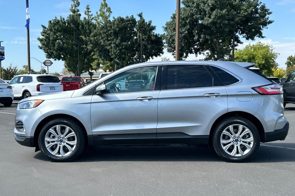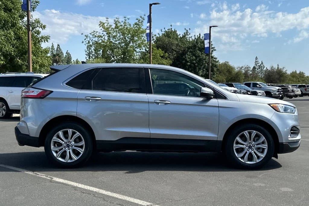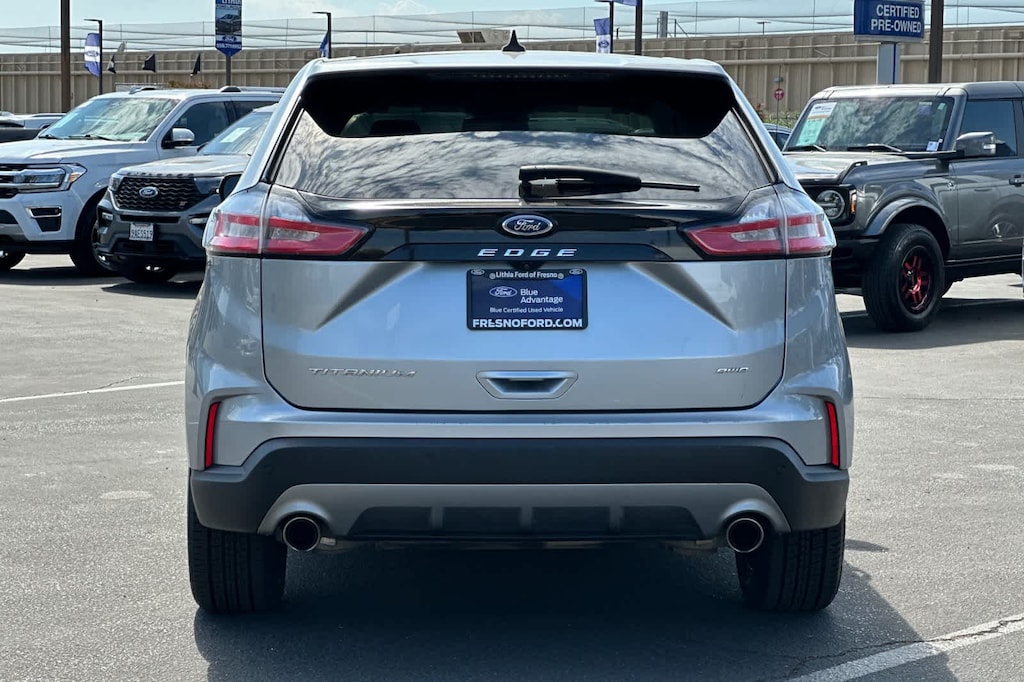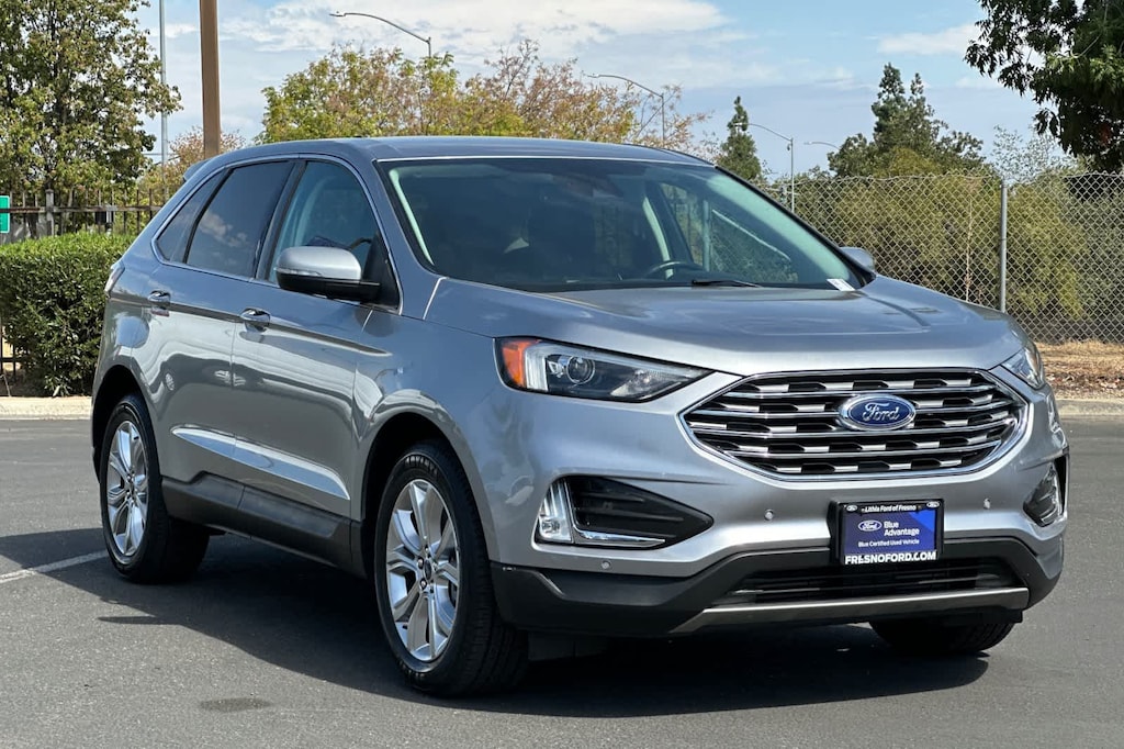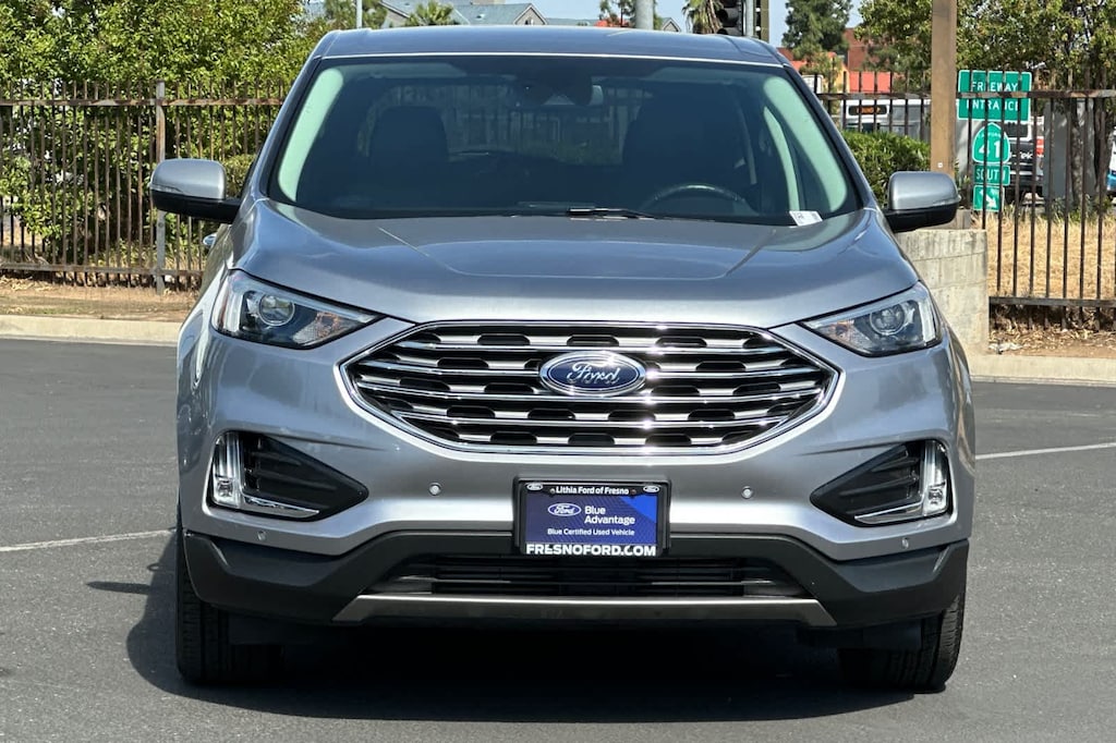 Lithia Ford and Lincoln of Fresno is pleased to offer this Silver Metallic 2022 Ford Edge Titanium for purchase, this vehicle is well equipped with many features including: Equipment Group 300A, Ford Certified, AWD, 12 Speakers, 3.80 Axle Ratio, 4-Wheel Disc Brakes, ABS brakes, Air Conditioning, Alloy wheels, AM/FM radio: SiriusXM with 360L, Auto High-beam Headlights, Auto-dimming Rear-View mirror, Automatic temperature control, Brake assist, Bumpers: body-color, Compass, Delay-off headlights, Driver door bin, Driver vanity mirror, Dual front impact airbags, Dual front side impact airbags, Electronic Stability Control, Emergency communication system: SYNC 4 911 Assist, FordPass Connect, Four wheel independent suspension, Front anti-roll bar, Front Bucket Seats, Front Center Armrest w/Storage, Front dual zone A/C, Front fog lights, Front License Plate Bracket, Front reading lights, Fully automatic headlights, Garage door transmitter, Heated door mirrors, Heated front seats, Heated steering wheel, Illuminated entry, Knee airbag, Leather-Trimmed Heated Sport Bucket Seats, Low tire pressure warning, Memory seat, Occupant sensing airbag, Outside temperature display, Overhead airbag, Overhead console, Panic alarm, Passenger door bin, Passenger vanity mirror, Power door mirrors, Power driver seat, Power Liftgate, Power passenger seat, Power steering, Power windows, Radio: B&O Sound System by Bang & Olufsen, Rain sensing wipers, Rear anti-roll bar, Rear reading lights, Rear seat center armrest, Rear window defroster, Rear window wiper, Remote keyless entry, Security system, SiriusXM w/360L, Speed control, Speed-Sensitive Wipers, Split folding rear seat, Spoiler, Steering wheel mounted audio controls, SYNC 4A w/Enhanced Voice Recognition, Tachometer, Telescoping steering wheel, Tilt steering wheel, Traction control, Trip computer, Turn signal indicator mirrors, Variably intermittent wipers, and Wheels: 19 Luster Nickel-Painted Aluminum. AWD EcoBoost 2.0L I4 GTDi DOHC Turbocharged VCT 8-Speed Automatic Titanium