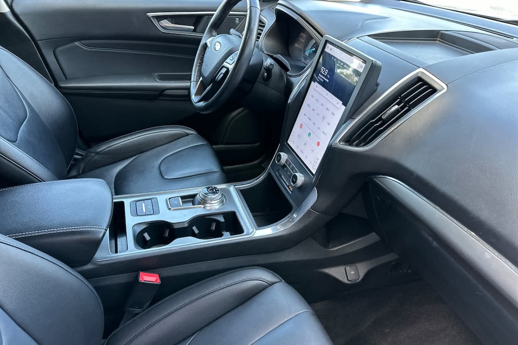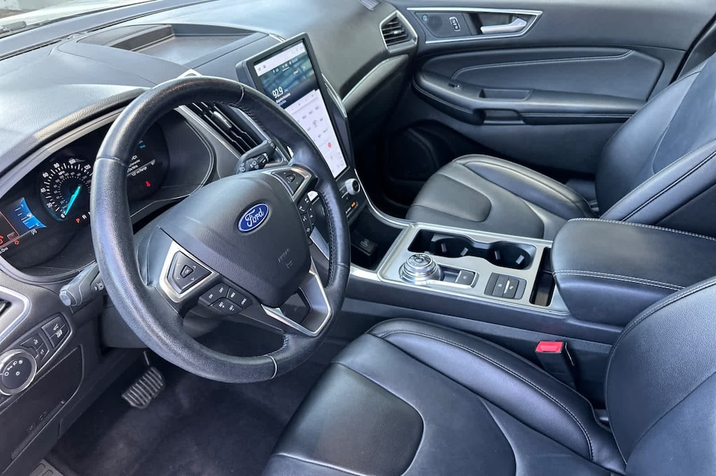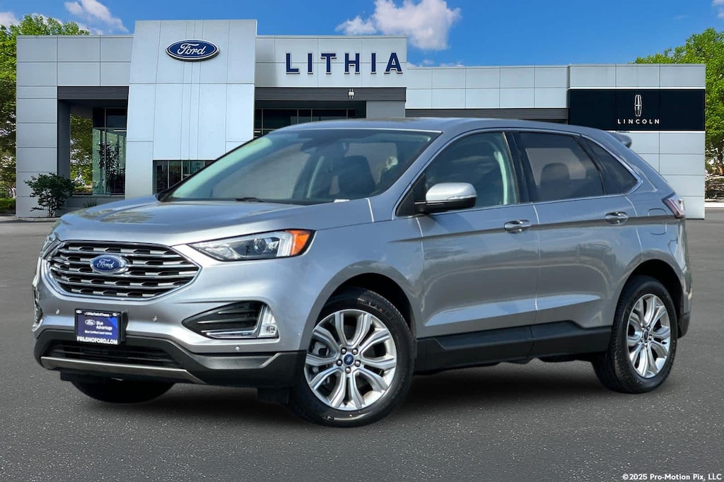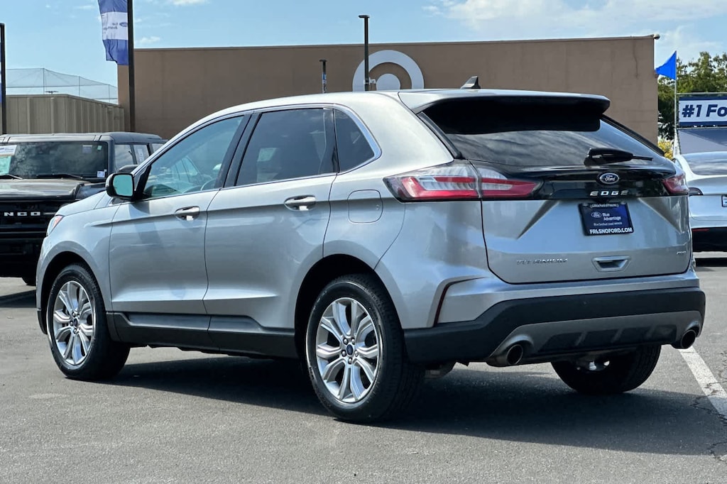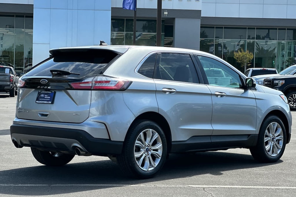 Lithia Ford and Lincoln of Fresno is pleased to offer this Silver Metallic 2022 Ford Edge Titanium for purchase, this vehicle is well equipped with many features including: Equipment Group 300A, Ford Certified, AWD, 12 Speakers, 3.80 Axle Ratio, 4-Wheel Disc Brakes, ABS brakes, Air Conditioning, Alloy wheels, AM/FM radio: SiriusXM with 360L, Auto High-beam Headlights, Auto-dimming Rear-View mirror, Automatic temperature control, Brake assist, Bumpers: body-color, Compass, Delay-off headlights, Driver door bin, Driver vanity mirror, Dual front impact airbags, Dual front side impact airbags, Electronic Stability Control, Emergency communication system: SYNC 4 911 Assist, FordPass Connect, Four wheel independent suspension, Front anti-roll bar, Front Bucket Seats, Front Center Armrest w/Storage, Front dual zone A/C, Front fog lights, Front License Plate Bracket, Front reading lights, Fully automatic headlights, Garage door transmitter, Heated door mirrors, Heated front seats, Heated steering wheel, Illuminated entry, Knee airbag, Leather-Trimmed Heated Sport Bucket Seats, Low tire pressure warning, Memory seat, Occupant sensing airbag, Outside temperature display, Overhead airbag, Overhead console, Panic alarm, Passenger door bin, Passenger vanity mirror, Power door mirrors, Power driver seat, Power Liftgate, Power passenger seat, Power steering, Power windows, Radio: B&O Sound System by Bang & Olufsen, Rain sensing wipers, Rear anti-roll bar, Rear reading lights, Rear seat center armrest, Rear window defroster, Rear window wiper, Remote keyless entry, Security system, SiriusXM w/360L, Speed control, Speed-Sensitive Wipers, Split folding rear seat, Spoiler, Steering wheel mounted audio controls, SYNC 4A w/Enhanced Voice Recognition, Tachometer, Telescoping steering wheel, Tilt steering wheel, Traction control, Trip computer, Turn signal indicator mirrors, Variably intermittent wipers, and Wheels: 19 Luster Nickel-Painted Aluminum. AWD EcoBoost 2.0L I4 GTDi DOHC Turbocharged VCT 8-Speed Automatic Titanium