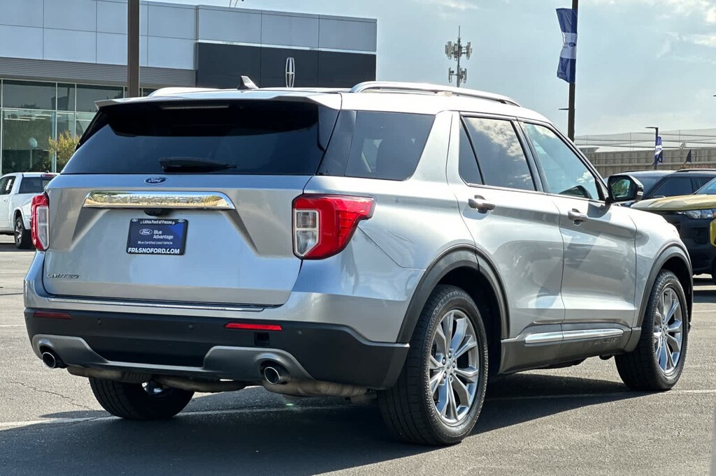 Lithia Ford and Lincoln of Fresno is pleased to offer this Silver Metallic 2022 Ford Explorer Limited for purchase, this vehicle is well equipped with many features including: Equipment Group 301A, Limited Convenience Package (110V/150W AC Power Outlet, 3rd Row PowerFold Seat, Hands-Free Foot-Activated Liftgate, Memory Drivers Seat, Power Tilt/Telescoping Steering Column, and Sideview Mirrors w/Gloss Black Caps), Ford Certified, 12 Speakers, 1st Row Heated Seats, 20 Premium Painted Aluminum Wheels, 3.58 Non-Limited-Slip Rear Axle Ratio, 3rd row seats: bench, 4-Wheel Disc Brakes, ABS brakes, Air Conditioning, Alloy wheels, AM/FM radio: SiriusXM, Auto High-beam Headlights, Auto-dimming Rear-View mirror, Automatic temperature control, Brake assist, Bumpers: body-color, Compass, Delay-off headlights, Driver door bin, Driver vanity mirror, Dual front impact airbags, Dual front side impact airbags, Electronic Stability Control, Emergency communication system: SYNC 3 911 Assist, Exterior Parking Camera Rear, FordPass Connect, Four wheel independent suspension, Front anti-roll bar, Front Bucket Seats, Front Center Armrest, Front dual zone A/C, Front fog lights, Front reading lights, Fully automatic headlights, Garage door transmitter, Heated door mirrors, Heated front seats, Heated rear seats, Heated steering wheel, Illuminated entry, Knee airbag, Leather Heated/Ventilated Captains Chairs, Leather steering wheel, Low tire pressure warning, Navigation System, Occupant sensing airbag, Outside temperature display, Overhead airbag, Overhead console, Panic alarm, Passenger door bin, Passenger vanity mirror, Power door mirrors, Power driver seat, Power Liftgate, Power passenger seat, Power steering, Power windows, Radio data system, Radio: B&O Sound System by Bang & Olufsen, Rain sensing wipers, Rear air conditioning, Rear anti-roll bar, Rear reading lights, Rear window defroster, Rear window wiper, Remote keyless entry, Roof rack: rails only, Security system, Speed control, Speed-sensing steering, Speed-Sensitive Wipers, Split folding rear seat, Spoiler, Steering wheel mounted audio controls, SYNC 3 Communications & Entertainment System, SYNC 3/Apple CarPlay/Android Auto, Tachometer, Telescoping steering wheel, Tilt steering wheel, Traction control, Trip computer, Variably intermittent wipers, Ventilated front seats, and Voice-Activated Touchscreen Navigation System. RWD 2.3L EcoBoost I-4 10-Speed Automatic Limited