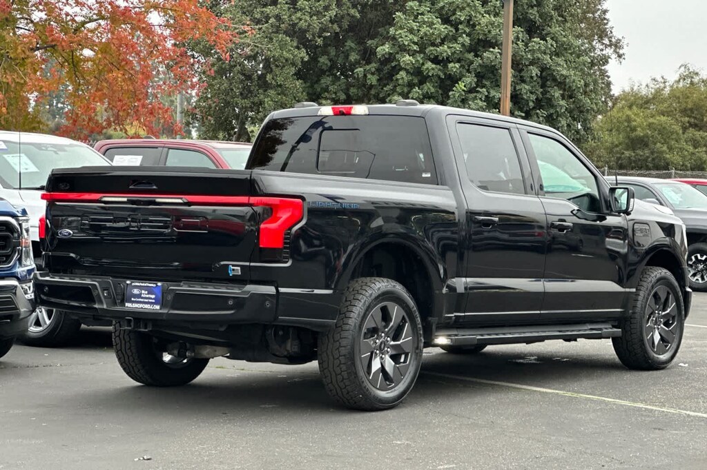Lithia Ford and Lincoln of Fresno is pleased to offer this Black Metallic 2022 Ford F-150 Lightning Lariat for purchase, this vehicle is well equipped with many features including: Equipment Group 510A Standard, Ford Co-Pilot360 Active 2.0 (Active Park Assist 2.0 and BlueCruise), Ford EV Certified Certified, 4-Wheel Disc Brakes, 8 Speakers, ABS brakes, Adjustable pedals, Air Conditioning, Alloy wheels, AM/FM radio: SiriusXM with 360L, Auto High-beam Headlights, Auto-dimming door mirrors, Auto-dimming Rear-View mirror, Automatic temperature control, Brake assist, Bumpers: body-color, Compass, Delay-off headlights, Driver door bin, Driver vanity mirror, Dual front impact airbags, Dual front side impact airbags, Electronic Stability Control, Emergency communication system: SYNC 4 911 Assist, Forward Sensing System, Four wheel independent suspension, Front anti-roll bar, Front Bucket Seats, Front Center Armrest, Front dual zone A/C, Front License Plate Bracket, Front reading lights, Fully automatic headlights, Garage door transmitter, Heated door mirrors, Heated front seats, Heated steering wheel, Illuminated entry, Illuminated running boards, Knee airbag, Leather-Trimmed Heated & Ventilated Seats, Low tire pressure warning, Memory seat, Navigation system: Connected Navigation (3-year trial), Occupant sensing airbag, Outside temperature display, Overhead airbag, Overhead console, Panic alarm, Passenger door bin, Passenger vanity mirror, Pedal memory, Power door mirrors, Power driver seat, Power passenger seat, Power steering, Power windows, Radio data system, Radio: B&O Sound System by Bang & Olufsen, Rear anti-roll bar, Rear reading lights, Rear seat center armrest, Rear step bumper, Rear window defroster, Remote keyless entry, Security system, Speed control, Speed-sensing steering, Split folding rear seat, Steering wheel mounted audio controls, SYNC 4A w/Enhanced Voice Recognition, Telescoping steering wheel, Tilt steering wheel, Tough Bed Spray-In Bedliner, Traction control, Tray Style Floor Liner, Trip computer, Turn signal indicator mirrors, Variably intermittent wipers, Ventilated front seats, and Wheels: 20 Alloy Dark Carbonized Gray. AWD Electric Motor Single-Speed Automatic Lariat