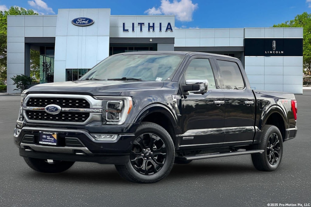 EQUIPMENT GROUP 701A HIGH Ford Co-Pilot360 Active 2.0, forward sensing system, BlueCruise, Active Park Assist 2.0, Radio: B&O Unleashed Sound System by Bang & Olufsen, HD Radio and 18 speakers including subwoofer, Bed Utility Package, BoxLink, 4 premium locking cleats, LED Box Lighting, Tailgate Step w/Tailgate Work Surface, Power Tailgate, Tow Technology Package, smart trailer tow connector and BLIS w/trailer tow coverage where BLIS is available, 360 Degree Camera, trailer reverse guidance, Pro Trailer Backup Assist, ENGINE: 3.5L POWERBOOST FULL-HYBRID V6 Electronic Locking w/3.73 Axle Ratio, TWIN PANEL MOONROOF. 2022 Ford F-150 with Antimatter Blue exterior and Black interior features a V6 Cylinder Engine with 400 HP at 6000 RPM*.