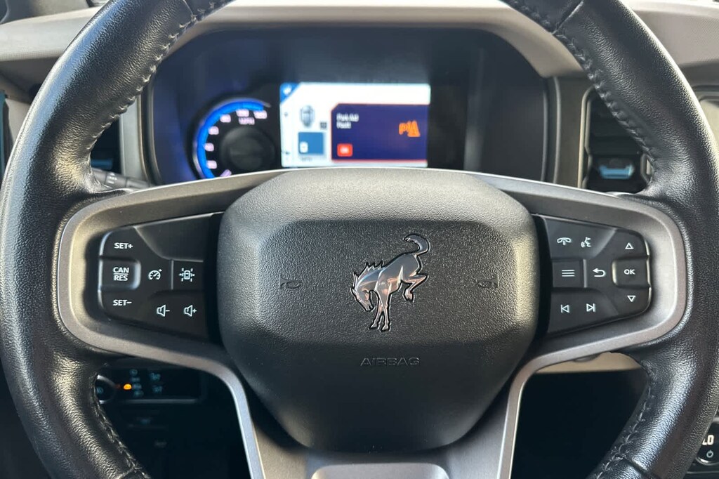 Lithia Ford and Lincoln of Fresno is pleased to offer this Area 51 2023 Ford Bronco Wildtrak for purchase, this vehicle is well equipped with many features including: Equipment Group 352A Mid Package, Ford Certified, 4-Wheel Disc Brakes, 4.7 Axle Ratio, 7 Speakers, ABS brakes, Air Conditioning, Alloy wheels, AM/FM radio: SiriusXM with 360L, AM/FM Stereo, Auto High-beam Headlights, Auto-dimming Rear-View mirror, Automatic temperature control, Brake assist, Carbonized Gray Molded-In-Color Hard Top, Compass, Connected Navigation, Delay-off headlights, Driver door bin, Driver vanity mirror, Dual front impact airbags, Dual front side impact airbags, Electronic Stability Control, Emergency communication system: 911 Assist, Exterior Parking Camera Rear, Front anti-roll bar, Front Bucket Seats, Front Center Armrest, Front dual zone A/C, Front fog lights, Front reading lights, Front Row Top Panels Storage Bag, Front wheel independent suspension, Fully automatic headlights, Hard Top Sound Deadening Headliner, Heated door mirrors, Heated front seats, Heated Leather-Trimmed/Vinyl Bucket Seats, Illuminated entry, Integrated roll-over protection, Leather Shift Knob, Low tire pressure warning, Navigation system: Connected Navigation, Occupant sensing airbag, Outside temperature display, Overhead airbag, Overhead console, Panic alarm, Passenger door bin, Passenger vanity mirror, Power door mirrors, Power steering, Power windows, Radio data system, Radio: 6 Speakers w/Subwoofer Delete, Rear-Window Defroster & Washer, Remote keyless entry, Security system, SiriusXM Radio w/360L, Speed control, Split folding rear seat, Steering wheel mounted audio controls, SYNC 4, Tachometer, Telescoping steering wheel, Tilt steering wheel, Towing Capability, Traction control, Trip computer, Variably intermittent wipers, Voltmeter, and Wheels: 17 Black High Gloss-Painted Aluminum. 4WD 2.7L EcoBoost V6 10-Speed Automatic Wildtrak