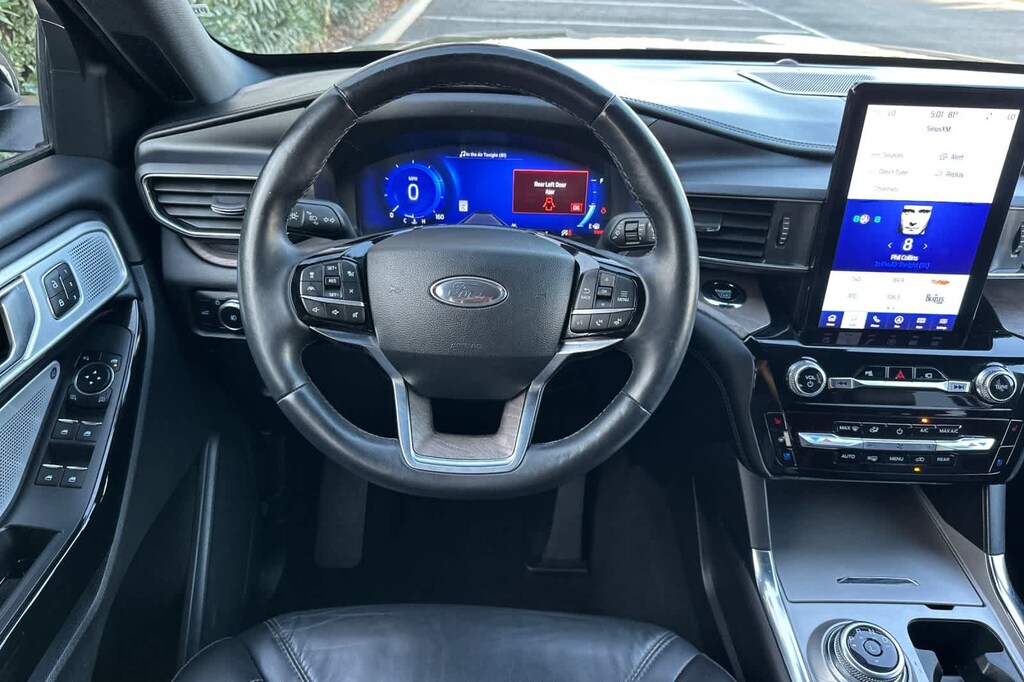 Lithia Ford and Lincoln of Fresno is pleased to offer this Agate Black Metallic 2023 Ford Explorer Platinum for purchase, this vehicle is well equipped with many features including: Class IV Trailer Tow Package, Equipment Group 601A (3.31 Non-Limited-Slip Rear Axle Ratio), Technology Package (10.1 LCD Capacitive Portrait Touchscreen and 2 Additional Speakers), Ford Certified, 4WD, 12 Speakers, 3.73 Non-Limited-Slip Rear Axle Ratio, 3rd row seats: bench, 4-Wheel Disc Brakes, 4G LTE Wi-Fi Hotspot Credit, ABS brakes, Air Conditioning, Alloy wheels, AM/FM radio: SiriusXM, Auto High-beam Headlights, Auto-dimming door mirrors, Auto-dimming Rear-View mirror, Automatic temperature control, Brake assist, Bumpers: body-color, Compass, Delay-off headlights, Driver door bin, Driver vanity mirror, Dual front impact airbags, Dual front side impact airbags, Electronic Stability Control, Emergency communication system: SYNC 3 911 Assist, Exterior Parking Camera Rear, FordPass Connect, Four wheel independent suspension, Front & Second Row Floor Liners (16B), Front anti-roll bar, Front Bucket Seats, Front Center Armrest, Front dual zone A/C, Front fog lights, Front reading lights, Fully automatic headlights, Garage door transmitter, Genuine wood dashboard insert, Heated door mirrors, Heated front seats, Heated rear seats, Heated steering wheel, Illuminated entry, Knee airbag, Leather Htd/Ventilated Sport Captains Chairs, Leather steering wheel, Low tire pressure warning, Memory seat, Navigation System, Occupant sensing airbag, Outside temperature display, Overhead airbag, Overhead console, Panic alarm, Passenger door bin, Passenger vanity mirror, Power door mirrors, Power driver seat, Power Liftgate, Power passenger seat, Power steering, Power windows, Radio data system, Radio: B&O Sound System by Bang & Olufsen, Rain sensing wipers, Rear air conditioning, Rear anti-roll bar, Rear reading lights, Rear window defroster, Rear window wiper, Remote keyless entry, Roof rack: rails only, Security system, Speed control, Speed-sensing steering, Speed-Sensitive Wipers, Split folding rear seat, Spoiler, Steering wheel memory, Steering wheel mounted audio controls, SYNC 3 Communications & Entertainment System, SYNC 3/Apple CarPlay/Android Auto, Tachometer, Telescoping steering wheel, Tilt steering wheel, Traction control, Trip computer, Turn signal indicator mirrors, Twin Panel Moonroof, Variably intermittent wipers, Ventilated front seats, Voice-Activated Touchscreen Navigation System, and Wheels: 21 Bright Machined-Face Aluminum. 4WD 3.0L EcoBoost V6 10-Speed Automatic Platinum