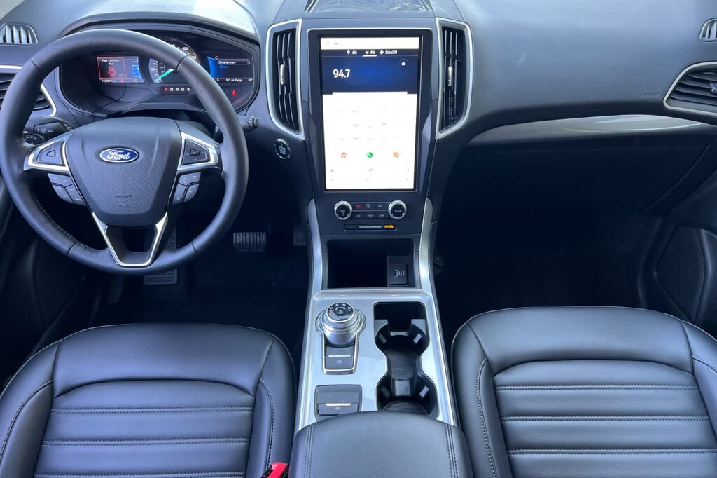 Lithia Ford and Lincoln of Fresno is pleased to offer this Rapid Red Metallic Tinted Clearcoat 2024 Ford Edge SEL for purchase, this vehicle is well equipped with many features including: Convenience Package (Fog Lamps w/Iconic Silver Bezel, Perimeter Alarm, and Wireless Charging Pad), Equipment Group 201A, Ford Gold Certified Certified, AWD, 3.80 Axle Ratio, 4-Wheel Disc Brakes, 6 Speakers, ABS brakes, ActiveX Trimmed Heated Bucket Seats, Air Conditioning, Alloy wheels, AM/FM radio: SiriusXM with 360L, AM/FM Stereo, Auto High-beam Headlights, Auto-dimming Rear-View mirror, Automatic temperature control, Brake assist, Bumpers: body-color, Compass, Delay-off headlights, Driver door bin, Driver vanity mirror, Dual front impact airbags, Dual front side impact airbags, Electronic Stability Control, Emergency communication system: SYNC 4 911 Assist, FordPass Connect, Four wheel independent suspension, Front anti-roll bar, Front Bucket Seats, Front Center Armrest w/Storage, Front dual zone A/C, Front reading lights, Fully automatic headlights, Heated door mirrors, Heated front seats, Heated Steering Wheel, Illuminated entry, Knee airbag, Leather steering wheel, Leather-Wrapped Steering Wheel, Low tire pressure warning, Occupant sensing airbag, Outside temperature display, Overhead airbag, Overhead console, Panic alarm, Panoramic Vista Roof, Passenger door bin, Passenger vanity mirror, Power door mirrors, Power driver seat, Power passenger seat, Power steering, Power windows, Rear anti-roll bar, Rear Parking Sensors, Rear reading lights, Rear seat center armrest, Rear window defroster, Rear window wiper, Remote keyless entry, SiriusXM w/360L, Speed control, Speed-Sensitive Wipers, Split folding rear seat, Spoiler, Steering wheel mounted audio controls, SYNC 4A w/Enhanced Voice Recognition, Tachometer, Telescoping steering wheel, Tilt steering wheel, Traction control, Trip computer, Variably intermittent wipers, Wheels: 18 Bright-Machined Aluminum, and Wheels: 18 Sparkle Silver-Painted Aluminum. AWD EcoBoost 2.0L I4 GTDi DOHC Turbocharged VCT 8-Speed Automatic SEL