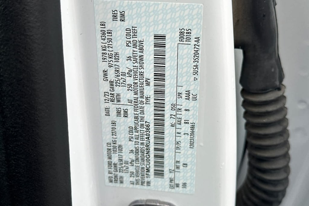 Lithia Ford and Lincoln of Fresno is pleased to offer this Oxford White 2024 Ford Escape Active for purchase, this vehicle is well equipped with many features including: Equipment Group 200A, Ford Certified, Wheels: 17 Shadow Silver-Painted Aluminum, 3.81 Axle Ratio, 4-Wheel Disc Brakes, 6 Speakers, ABS brakes, Air Conditioning, Alloy wheels, AM/FM radio: SiriusXM, AM/FM Stereo, Auto High-beam Headlights, Automatic temperature control, Brake assist, Bumpers: body-color, Compass, Delay-off headlights, Driver door bin, Driver vanity mirror, Dual front impact airbags, Dual front side impact airbags, Electronic Stability Control, Emergency communication system: SYNC 4 911 Assist, Exterior Parking Camera Rear, FordPass Connect, Four wheel independent suspension, Front anti-roll bar, Front Bucket Seats, Front Center Armrest, Front dual zone A/C, Front reading lights, Fully automatic headlights, Illuminated entry, Knee airbag, Low tire pressure warning, Occupant sensing airbag, Outside temperature display, Overhead airbag, Overhead console, Panic alarm, Passenger door bin, Passenger vanity mirror, Power door mirrors, Power driver seat, Power Liftgate, Power steering, Power windows, Radio data system, Rear anti-roll bar, Rear reading lights, Rear seat center armrest, Rear window defroster, Rear window wiper, Remote keyless entry, Speed control, Speed-sensing steering, Speed-Sensitive Wipers, Split folding rear seat, Spoiler, Steering wheel mounted audio controls, SYNC 4, Tachometer, Telescoping steering wheel, Tilt steering wheel, Traction control, Trip computer, Unique Cloth Front Bucket Seats, and Variably intermittent wipers. FWD 1.5L EcoBoost 8-Speed Automatic Active