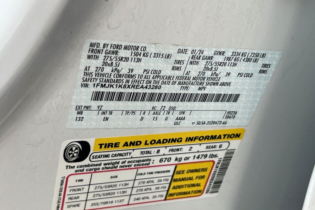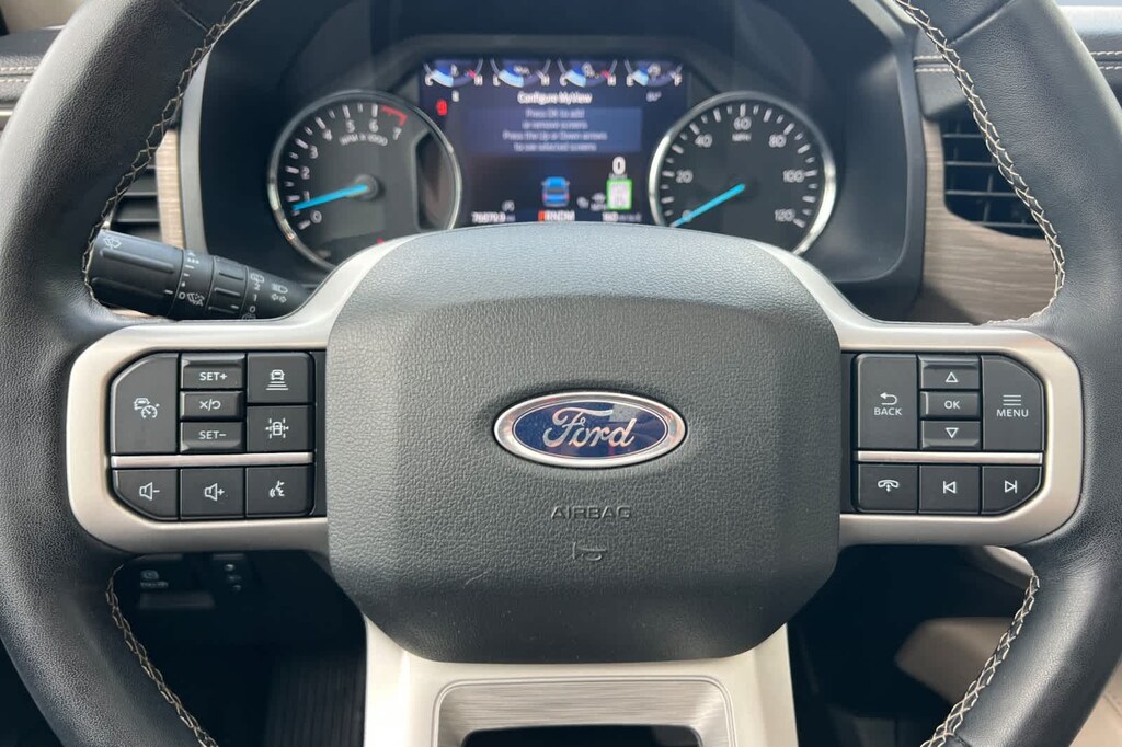 Lithia Ford and Lincoln of Fresno is pleased to offer this Oxford White 2024 Ford Expedition Max Limited for purchase, this vehicle is well equipped with many features including: Equipment Group 301A Mid Package, Ford Certified, 2nd Row Power-Folding 40/20/40 Leather Bench Seat, 12 Speakers, 3.31 Axle Ratio, 3rd row seats: split-bench, 4-Wheel Disc Brakes, ABS brakes, Adjustable pedals, Air Conditioning, Alloy wheels, AM/FM radio: SiriusXM with 360L, Auto High-beam Headlights, Auto-dimming door mirrors, Auto-dimming Rear-View mirror, Automatic temperature control, Brake assist, Bumpers: body-color, Compass, Delay-off headlights, Driver door bin, Driver vanity mirror, Dual front impact airbags, Dual front side impact airbags, Electronic Stability Control, Emergency communication system: SYNC 4 911 Assist, Exterior Parking Camera Rear, Four wheel independent suspension, Front anti-roll bar, Front Bucket Seats, Front Center Armrest, Front dual zone A/C, Front fog lights, Front License Plate Bracket, Front reading lights, Fully automatic headlights, Garage door transmitter, Heated & Ventilated Leather Front Captains Chairs, Heated door mirrors, Heated front seats, Heated rear seats, Heated steering wheel, Illuminated entry, Leather steering wheel, Low tire pressure warning, Memory seat, Navigation system: Connected Navigation, Occupant sensing airbag, Outside temperature display, Overhead airbag, Overhead console, Panic alarm, Passenger door bin, Passenger vanity mirror, Pedal memory, Power door mirrors, Power driver seat, Power Liftgate, Power moonroof, Power passenger seat, Power steering, Power windows, Radio data system, Radio: B&O Sound System by Bang & Olufsen, Rain sensing wipers, Rear air conditioning, Rear anti-roll bar, Rear reading lights, Rear window defroster, Rear window wiper, Reclining 3rd row seat, Remote keyless entry, Security system, SiriusXM w/360L, Speed control, Speed-sensing steering, Speed-Sensitive Wipers, Split folding rear seat, Spoiler, Steering wheel memory, Steering wheel mounted audio controls, SYNC 4 w/Enhanced Voice Recognition, Tachometer, Telescoping steering wheel, Tilt steering wheel, Traction control, Trip computer, Turn signal indicator mirrors, Variably intermittent wipers, Ventilated front seats, Voltmeter, and Wheels: 20 Bright Machined Aluminum. RWD EcoBoost 3.5L V6 GTDi DOHC 24V Twin Turbocharged 10-Speed Automatic Limited