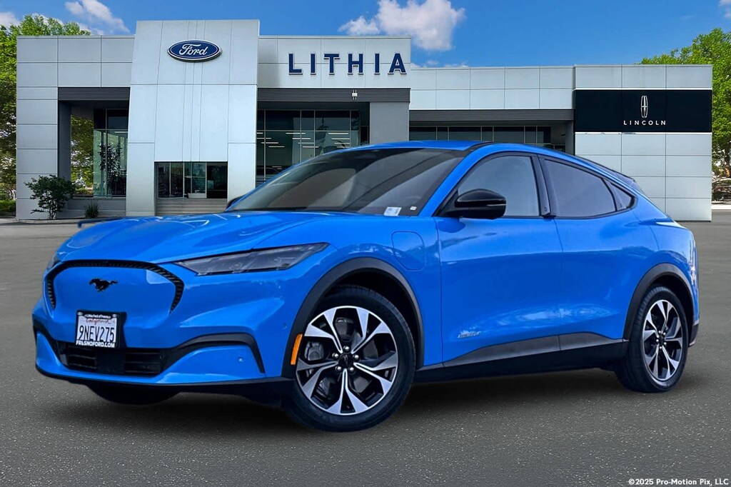 Lithia Ford and Lincoln of Fresno is pleased to offer this Grabber Blue Metallic 2024 Ford Mustang Mach-E Select for purchase, this vehicle is well equipped with many features including: Ford Gold Certified Certified, 4-Wheel Disc Brakes, 6 Speakers, ABS brakes, ActiveX Bucket Seats, Air Conditioning, Alloy wheels, AM/FM radio: SiriusXM with 360L, AM/FM Stereo, Apple CarPlay/Android Auto, Auto High-beam Headlights, Auto-dimming Rear-View mirror, Automatic temperature control, Brake assist, Bumpers: body-color, Compass, Delay-off headlights, Driver door bin, Driver vanity mirror, Dual front impact airbags, Dual front side impact airbags, Electronic Stability Control, Emergency communication system: 911 Assist, Exterior Parking Camera Rear, Four wheel independent suspension, Front anti-roll bar, Front Bucket Seats, Front Center Armrest, Front dual zone A/C, Front reading lights, Fully automatic headlights, Garage door transmitter, Heated door mirrors, Illuminated entry, Knee airbag, Low tire pressure warning, Navigation system: Connected Navigation, Occupant sensing airbag, Outside temperature display, Overhead airbag, Overhead console, Panic alarm, Passenger door bin, Passenger vanity mirror, Power door mirrors, Power driver seat, Power steering, Power windows, Radio data system, Rain sensing wipers, Rear anti-roll bar, Rear seat center armrest, Rear side impact airbag, Rear window defroster, Rear window wiper, Remote keyless entry, Security system, SiriusXM Radio w/360L, Speed control, Speed-sensing steering, Speed-Sensitive Wipers, Split folding rear seat, Spoiler, Steering wheel mounted audio controls, SYNC 4A w/Enhanced Voice Recognition, Telescoping steering wheel, Tilt steering wheel, Traction control, Trip computer, Turn signal indicator mirrors, Variably intermittent wipers, and Wheels: 19 Machined-Face Aluminum. RWD Dual Electric Motor Single-Speed Automatic Select