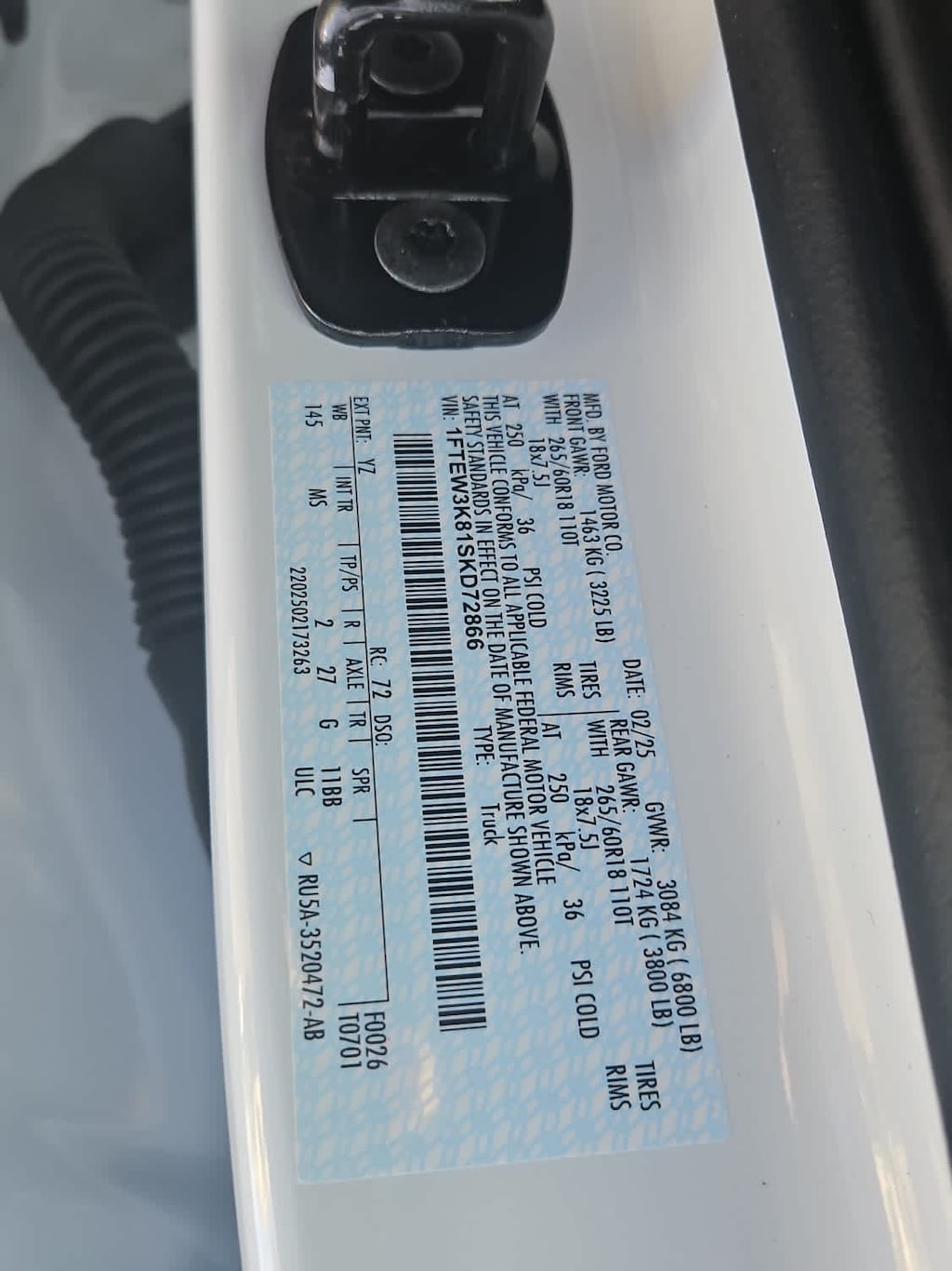Lithia Ford and Lincoln of Fresno is pleased to offer this Oxford White 2025 Ford F-150 XLT for purchase, this vehicle is well equipped with many features including: Equipment Group 301A Standard (6 Angular Bright Anodized Step Bar, Black Painted Grille w/Chrome Center Bar, Chrome Door & Tailgate Handles, Chrome Single-Tip Exhaust, Cloth 40/20/40 Front Seat w/Console, Dual-Zone Electronic Automatic Temperature Control, and Wrapped Steering Wheel), GVWR: 6,800 lbs Payload Package, Ford Certified, 3.31 Axle Ratio, 4-Wheel Disc Brakes, 6 Speakers, ABS brakes, Air Conditioning, Alloy wheels, AM/FM radio: SiriusXM with 360L, Auto High-beam Headlights, Brake assist, Bumpers: chrome, Cloth 40/20/40 Front Seat, Compass, Delay-off headlights, Driver door bin, Driver vanity mirror, Dual front impact airbags, Dual front side impact airbags, Electronic Stability Control, Emergency communication system: SYNC 4 911 Assist, Front anti-roll bar, Front Center Armrest, Front fog lights, Front License Plate Bracket, Front reading lights, Front wheel independent suspension, Fully automatic headlights, Heated door mirrors, Illuminated entry, Internet access capable: FordPass Connect 5G, Low tire pressure warning, Occupant sensing airbag, Outside temperature display, Overhead airbag, Overhead console, Panic alarm, Passenger door bin, Passenger vanity mirror, Power door mirrors, Power steering, Power windows, Radio data system, Radio: AM/FM Stereo w/SiriusXM 360L, Rear Parking Sensors, Rear reading lights, Rear step bumper, Rear window defroster, Remote keyless entry, Security system, Speed control, Split folding rear seat, Steering wheel mounted audio controls, SYNC 4 w/Enhanced Voice Recognition, Tachometer, Telescoping steering wheel, Tilt steering wheel, Traction control, Trip computer, Variably intermittent wipers, and Voltmeter. RWD 3.5L V6 EcoBoost 10-Speed Automatic XLT