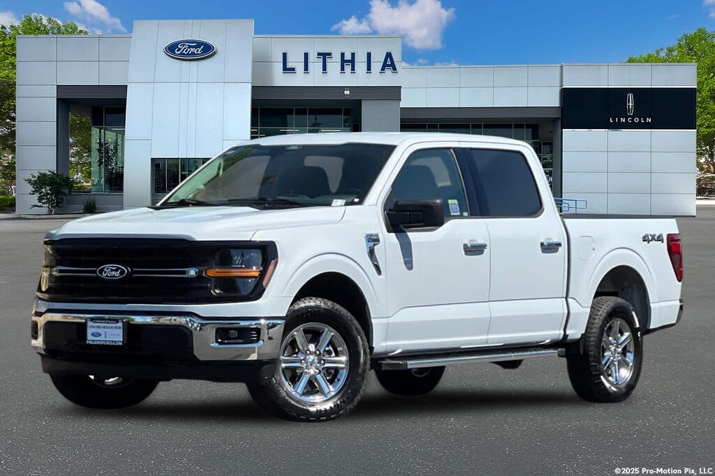Lithia Ford and Lincoln of Fresno is pleased to offer this Space White Metallic 2025 Ford F-150 XLT for purchase, this vehicle is well equipped with many features including: Equipment Group 301A Standard (6 Angular Bright Anodized Step Bar, Black Painted Grille w/Chrome Center Bar, Chrome Door & Tailgate Handles, Chrome Single-Tip Exhaust, Cloth 40/20/40 Front Seat w/Console, Dual-Zone Electronic Automatic Temperature Control, and Wrapped Steering Wheel), GVWR: 7,100 lbs Payload Package, Ford Certified, 4WD, 3.31 Axle Ratio, 4-Wheel Disc Brakes, 6 Speakers, ABS brakes, Air Conditioning, Alloy wheels, AM/FM radio: SiriusXM with 360L, Auto High-beam Headlights, Brake assist, Bumpers: chrome, Chrome wheels, Cloth 40/20/40 Front Seat, Compass, Delay-off headlights, Driver door bin, Driver vanity mirror, Dual front impact airbags, Dual front side impact airbags, Electronic Stability Control, Emergency communication system: SYNC 4 911 Assist, Front anti-roll bar, Front Center Armrest, Front fog lights, Front License Plate Bracket, Front reading lights, Front wheel independent suspension, Fully automatic headlights, Heated door mirrors, Illuminated entry, Internet access capable: FordPass Connect 5G, Low tire pressure warning, Occupant sensing airbag, Outside temperature display, Overhead airbag, Overhead console, Panic alarm, Passenger door bin, Passenger vanity mirror, Power door mirrors, Power steering, Power windows, Radio data system, Radio: AM/FM Stereo w/SiriusXM 360L, Rear Parking Sensors, Rear reading lights, Rear step bumper, Rear window defroster, Remote keyless entry, Security system, Speed control, Split folding rear seat, Steering wheel mounted audio controls, SYNC 4 w/Enhanced Voice Recognition, Tachometer, Telescoping steering wheel, Tilt steering wheel, Traction control, Trip computer, Variably intermittent wipers, Voltmeter, and Wheels: 18 Chrome-Like PVD. 4WD 3.5L V6 EcoBoost 10-Speed Automatic XLT