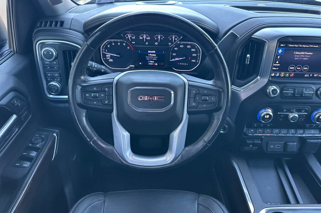 Lithia Ford and Lincoln of Fresno is pleased to offer this Dark Sky Metallic 2019 GMC Sierra 1500 SLT for purchase, this vehicle is well equipped with many features including: Driver Alert Package I (Lane Change Alert w/Side Blind Zone Alert, Perimeter Lighting, Rear Cross Traffic Alert, and Ultrasonic Front & Rear Park Assist), Driver Alert Package II (Following Distance Indicator, Forward Collision Alert, Front Pedestrian Braking, IntelliBeam Automatic High Beam On/Off, Lane Keep Assist w/Lane Departure Warning, Low Speed Forward Automatic Braking, and Safety Alert Seat), Preferred Equipment Group 4SA (12-Volt Rear Auxiliary Power Outlet, 120-Volt Bed Mounted Power Outlet, 120-Volt Instrument Panel Power Outlet, 170 Amp Alternator, Auxiliary External Transmission Oil Cooler, Chrome Grille, Color-Keyed Carpeting Floor Covering, Compass, Deep-Tinted Glass, Electric Rear-Window Defogger, Electrical Lock Control Steering Column, Front Frame-Mounted Black Recovery Hooks, GMC 4G LTE, GMC Connected Access, HD Radio, Heated Driver & Front Passenger Seating, Heavy-Duty Rear Locking Differential, Hitch Guidance, Hitch Guidance w/Hitch View, In-Vehicle Trailering App, Integrated Trailer Brake Controller, Keyless Open & Start, LED Cargo Area Lighting, Manual Tilt-Wheel & Telescoping Steering Column, OnStar & GMC Connected Services Capable, Power Door Locks, Power Front Passenger Windows w/Express Up/Down, Power Front Windows w/Driver Express Up/Down, Power Rear Windows w/Express Down, Rear Dual USB Charging-Only Ports, Rear Wheelhouse Liners, Remote Vehicle Starter System, Steering Wheel Audio Controls, and Theft Deterrent System (Unauthorized Entry)), SLT Convenience Package (2 USB Ports, 2 USB Ports (1st Row), Floor Mounted Console, Front Bucket Seats, Heated 2nd Row Outboard Seats, Power Sliding Rear Window w/Rear Defogger, Universal Home Remote, and Ventilated Driver & Front Passenger Seats), SLT Preferred Package (Premium Bose 7-Speaker Sound System, Radio: Premium GMC Infotainment Sys w/Navigation, SiriusXM Radio, and Wireless Charging), SLT Premium Plus Package (Chrome Assist Steps, Spray-On Pickup Bed Liner w/GMC Logo, and Trailer Tire Pressure Monitor System), Trailering Package, X31 Off-Road Package (Dual Exhaust w/Premium Tips, High-Capacity Air Filter, Hill Descent Control, Off-Road Suspension, and X31 Hard Badge), GM Certified, 8-Speed Automatic, 4WD, Jet Black Leather, 10-Way Power Driver Seat Adjuster w/Lumbar, 10-Way Power Passenger Seat Adjuster w/Lumbar, 20 x 9 Polished Aluminum Wheels, 3.23 Rear Axle Ratio, 4-Wheel Disc Brakes, 6 Speakers, 6-Speaker Audio System Feature, ABS brakes, Air Conditioning, All-Weather Floor Liner (LPO), Alloy wheels, AM/FM radio: SiriusXM, Apple CarPlay/Android Auto, Auto-dimming door mirrors, Auto-dimming Rear-View mirror, Automatic temperature control, Brake assist, Bumpers: chrome, Delay-off headlights, Driver door bin, Driver Memory, Driver vanity mirror, Dual front impact airbags, Dual front side impact airbags, Electronic Stability Control, Front 40/20/40 Split-Bench Seat, Front anti-roll bar, Front Center Armrest w/Storage, Front dual zone A/C, Front fog lights, Front License Plate Kit, Front reading lights, Front wheel independent suspension, Fully automatic headlights, Heated door mirrors, Heated front seats, Heated steering wheel, Heavy Duty Suspension, Illuminated entry, Low tire pressure warning, Memory seat, Occupant sensing airbag, Outside temperature display, Overhead airbag, Overhead console, Panic alarm, Passenger door bin, Passenger vanity mirror, Perforated Leather-Appointed Seat Trim, Power door mirrors, Power driver seat, Power passenger seat, Power steering, Power windows, Premium audio system: GMC Infotainment System, Radio data system, Radio: Premium GMC Infotainment Sys w/Multi-Touch, Rear reading lights, Rear seat center armrest, Rear step bumper, Rear windo