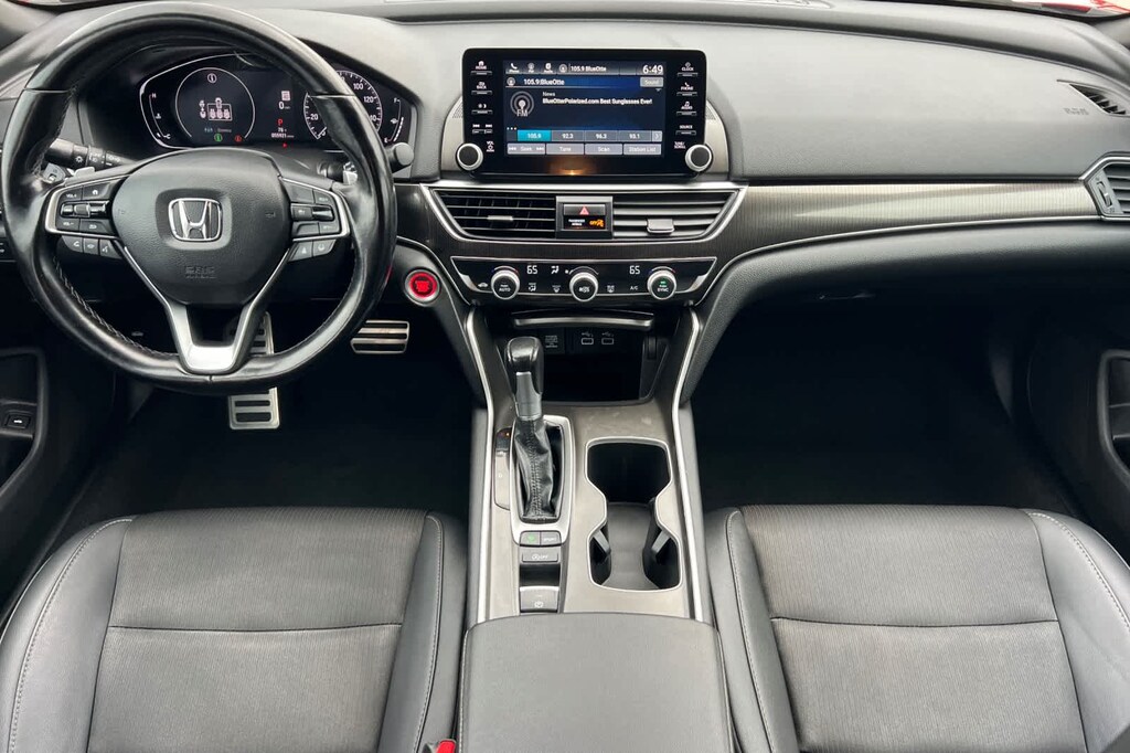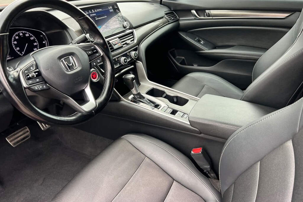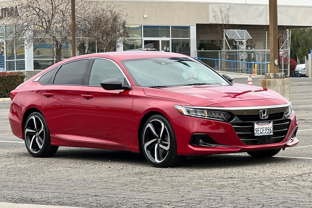 Lithia Ford and Lincoln of Fresno is pleased to offer this San Marino Red 2021 Honda Accord Sport for purchase, this vehicle is well equipped with many features including: Honda Certified, Black w/Leather-Trimmed Seats, Air Conditioning, Power driver seat, Power steering, Power windows, 4-Wheel Disc Brakes, 8 Speakers, ABS brakes, Adaptive Cruise Control: Adaptive Cruise Control (ACC) with Low-Speed Follow, Alloy wheels, AM/FM radio, Apple CarPlay/Android Auto, Auto High-beam Headlights, Automatic temperature control, Brake assist, Bumpers: body-color, Cloth Seat Trim, Delay-off headlights, Driver door bin, Driver vanity mirror, Dual front impact airbags, Dual front side impact airbags, Electronic Stability Control, Emergency communication system: HondaLink, Exterior Parking Camera Rear, Forward collision: Collision Mitigation Braking System (CMBS) + FCW mitigation, Four wheel independent suspension, Front anti-roll bar, Front Bucket Seats, Front Center Armrest, Front dual zone A/C, Front fog lights, Front reading lights, Fully automatic headlights, Illuminated entry, Knee airbag, Lane Departure Warning System, Leather Shift Knob, Leather steering wheel, Low tire pressure warning, Occupant sensing airbag, Outside temperature display, Overhead airbag, Overhead console, Panic alarm, Passenger door bin, Passenger vanity mirror, Power door mirrors, Radio data system, Radio: 180-Watt AM/FM Audio System, Rear anti-roll bar, Rear seat center armrest, Rear window defroster, Remote keyless entry, Security system, Speed control, Speed-sensing steering, Speed-Sensitive Wipers, Split folding rear seat, Spoiler, Steering wheel mounted audio controls, Tachometer, Telescoping steering wheel, Tilt steering wheel, Traction control, Trip computer, Variably intermittent wipers, and Wheels: 19 Machine-Finished Alloy w/Black Inserts. FWD 1.5T I4 DOHC 16V Turbocharged VTEC CVT Sport