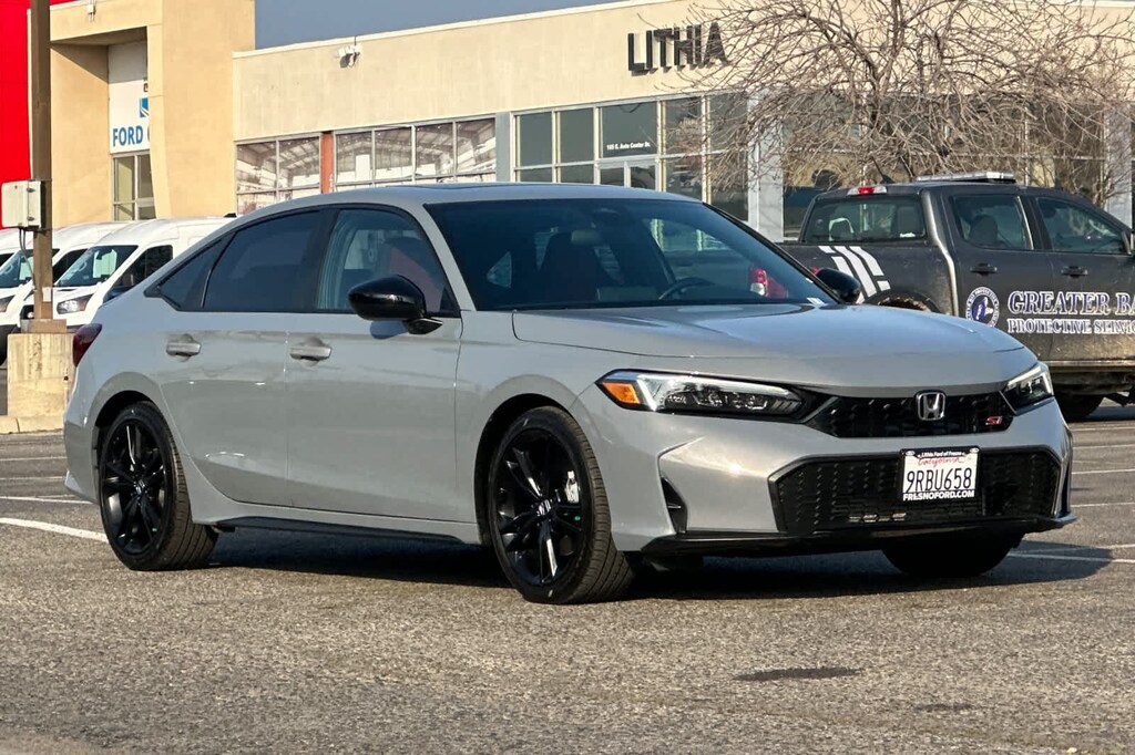 Lithia Ford and Lincoln of Fresno is pleased to offer this Urban Gray Pearl 2025 Honda Civic Si for purchase, this vehicle is well equipped with many features including: Honda Certified, Navigation system: Google Maps, Power moonroof, Power windows, 12 Speakers, 18 Matte Black Alloy Wheels, 4-Wheel Disc Brakes, ABS brakes, Air Conditioning, Alloy wheels, AM/FM radio, Apple CarPlay/Android Auto, Auto High-beam Headlights, Automatic temperature control, Blind Spot Information (BSI) System warning, BOSE Premium Sound System, Brake assist, Bumpers: body-color, Cloth Seating Surfaces, Delay-off headlights, Driver door bin, Driver vanity mirror, Dual front impact airbags, Dual front side impact airbags, Electronic Stability Control, Exterior Parking Camera Rear, Four wheel independent suspension, Front anti-roll bar, Front Bucket Seats, Front Center Armrest, Front dual zone A/C, Front reading lights, Fully automatic headlights, Heated door mirrors, Heated Front Bucket Seats, Heated front seats, Illuminated entry, Knee airbag, Leather Shift Knob, Leather steering wheel, Low tire pressure warning, Occupant sensing airbag, Outside temperature display, Overhead airbag, Overhead console, Panic alarm, Passenger door bin, Passenger vanity mirror, Power door mirrors, Power steering, Radio data system, Rear anti-roll bar, Rear seat center armrest, Rear side impact airbag, Rear window defroster, Remote keyless entry, Security system, Speed control, Speed-sensing steering, Split folding rear seat, Spoiler, Steering wheel mounted audio controls, Tachometer, Telescoping steering wheel, Tilt steering wheel, Traction control, Trip computer, and Variably intermittent wipers. FWD 1.5L I4 DOHC 16V 6-Speed Manual
