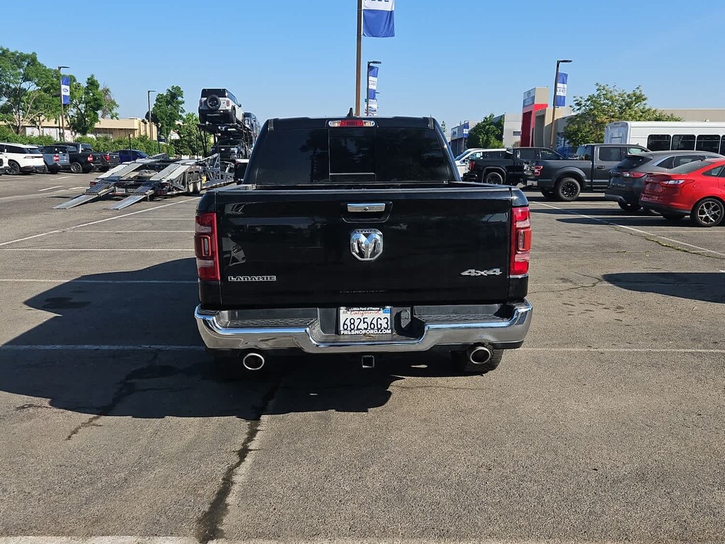 Lithia Ford and Lincoln of Fresno is pleased to offer this Diamond Black Crystal Pearlcoat 2021 Ram 1500 Laramie for purchase, this vehicle is well equipped with many features including: Quick Order Package 25H Laramie, Ram Certified, Wheels: 20 x 9 Premium Paint/Polished, #1 Seat Foam Cushion, 10 Speakers, 3 Rear Seat Head Restraints, 3.21 Rear Axle Ratio, 4 Way Front Headrests, 4-Wheel Disc Brakes, 48V Belt Starter Generator, 8.4 Touchscreen Display, ABS brakes, Adjustable pedals, Air Conditioning, Alloy wheels, AM/FM radio: SiriusXM, Anti-Spin Differential Rear Axle, Apple CarPlay, Apple CarPlay/Android Auto, Audio memory, Auto-dimming door mirrors, Auto-dimming Rear-View mirror, Automatic temperature control, Brake assist, Bumpers: chrome, Chrome Exterior Mirrors, Compass, Delay-off headlights, Driver door bin, Driver Seat Memory, Driver vanity mirror, Dual front impact airbags, Dual front side impact airbags, Electronic Stability Control, For More Info, Call 800-643-2112, Front anti-roll bar, Front Center Armrest w/Storage, Front dual zone A/C, Front fog lights, Front License Plate Bracket, Front reading lights, Front Seat Back Map Pockets, Front wheel independent suspension, Fully automatic headlights, Garage door transmitter, Google Android Auto, GPS Antenna Input, Heated door mirrors, Heated Front Seats, Heated front seats, Heated Steering Wheel, Heated steering wheel, Illuminated entry, Integrated Center Stack Radio, Integrated Voice Command w/Bluetooth, Leather steering wheel, Leather Trim 40/20/40 Bench Seat, Low tire pressure warning, Memory seat, MOPAR Front & Rear Rubber Floor Mats, Occupant sensing airbag, Outside temperature display, Overhead airbag, Overhead console, Panic alarm, ParkView Rear Back-Up Camera, Passenger door bin, Passenger vanity mirror, Pedal memory, Power 4-Way Driver Lumbar Adjust, Power 4-Way Passenger Lumbar Adjust, Power 8-Way Driver & Passenger Seats, Power door mirrors, Power driver seat, Power passenger seat, Power steering, Power windows, Radio data system, Radio: Uconnect 4 w/8.4 Display, Rear anti-roll bar, Rear seat center armrest, Rear step bumper, Rear window defroster, Remote keyless entry, Security system, SiriusXM Radio Service, SiriusXM Satellite Radio, Speed control, Split folding rear seat, Steering wheel mounted audio controls, Tachometer, Telescoping steering wheel, Tilt steering wheel, Traction control, Trip computer, Turn signal indicator mirrors, Variably intermittent wipers, Ventilated Front Seats, Ventilated front seats, and Voltmeter. 4WD HEMI 5.7L V8 Multi Displacement VVT 8-Speed Automatic Laramie