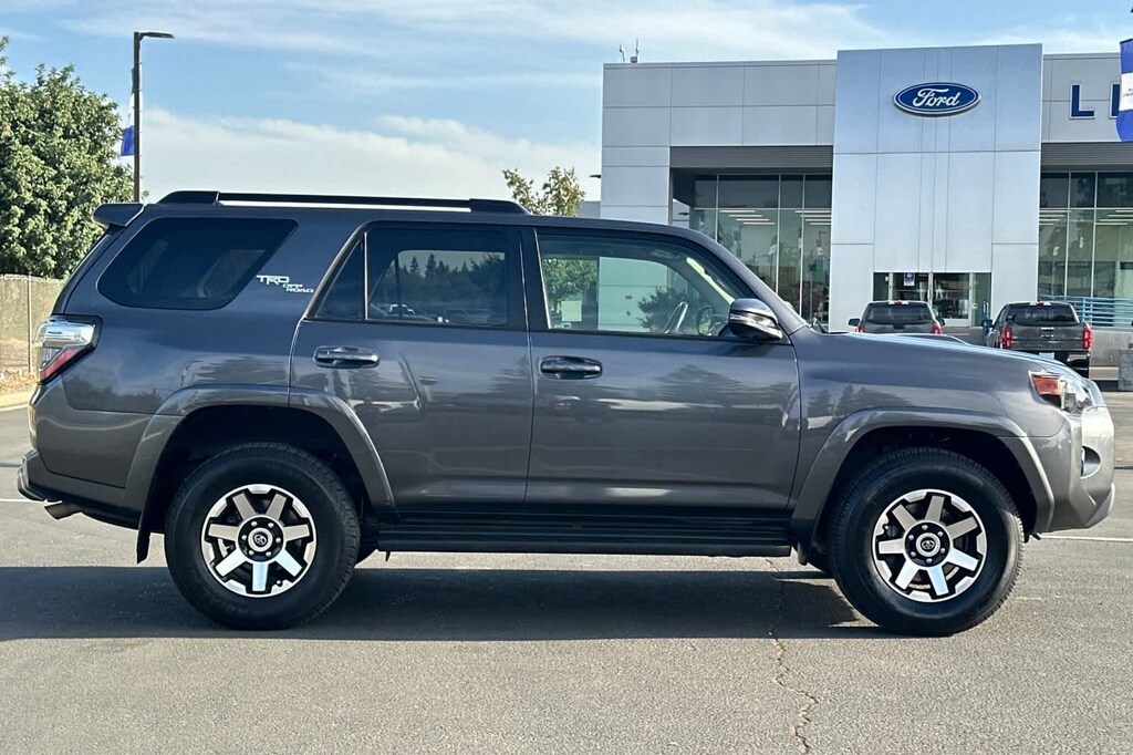 Lithia Ford and Lincoln of Fresno is pleased to offer this Gray 2022 Toyota 4Runner TRD Off-Road Premium for purchase, this vehicle is well equipped with many features including: Toyota Certified, 4WD, 3.727 Axle Ratio, 4-Wheel Disc Brakes, 8 Speakers, ABS brakes, Air Conditioning, Alloy wheels, AM/FM radio: SiriusXM, Anti-whiplash front head restraints, Apple CarPlay/Android Auto, Auto High-beam Headlights, Auto-dimming Rear-View mirror, Black Roof Rails, Blind Spot Monitor (BSM), Brake assist, Bumpers: body-color, Compass, Driver door bin, Driver vanity mirror, Dual front impact airbags, Dual front side impact airbags, Electronic Stability Control, Emergency communication system: Safety Connect with 1-year trial, Exterior Parking Camera Rear, Front anti-roll bar, Front Bucket Seats, Front Center Armrest, Front fog lights, Front reading lights, Front wheel independent suspension, Garage Door Opener, Garage door transmitter: HomeLink, Heated door mirrors, Heated Front Bucket Seats, Heated front seats, Illuminated entry, Knee airbag, Leather Shift Knob, Low tire pressure warning, Occupant sensing airbag, Outside Rear View Mirror, Outside temperature display, Overhead airbag, Overhead console, Panic alarm, Passenger door bin, Passenger vanity mirror, Power door mirrors, Power driver seat, Power passenger seat, Power steering, Power windows, Radio: Premium Audio w/Dynamic Navigation, Rear anti-roll bar, Rear seat center armrest, Rear window defroster, Rear window wiper, Remote keyless entry, Roof rack: rails only, Security system, SofTex Seat Trim, Speed control, Speed-sensing steering, Split folding rear seat, Spoiler, Steering wheel mounted audio controls, Tachometer, Telescoping steering wheel, Tilt steering wheel, Traction control, Trip computer, Turn signal indicator mirrors, Variably intermittent wipers, and Wheels: 17 Unique 7-Spoke Off-Road Alloy. 4WD 4.0L V6 DOHC 24V 5-Speed with ECT TRD Off-Road Premium