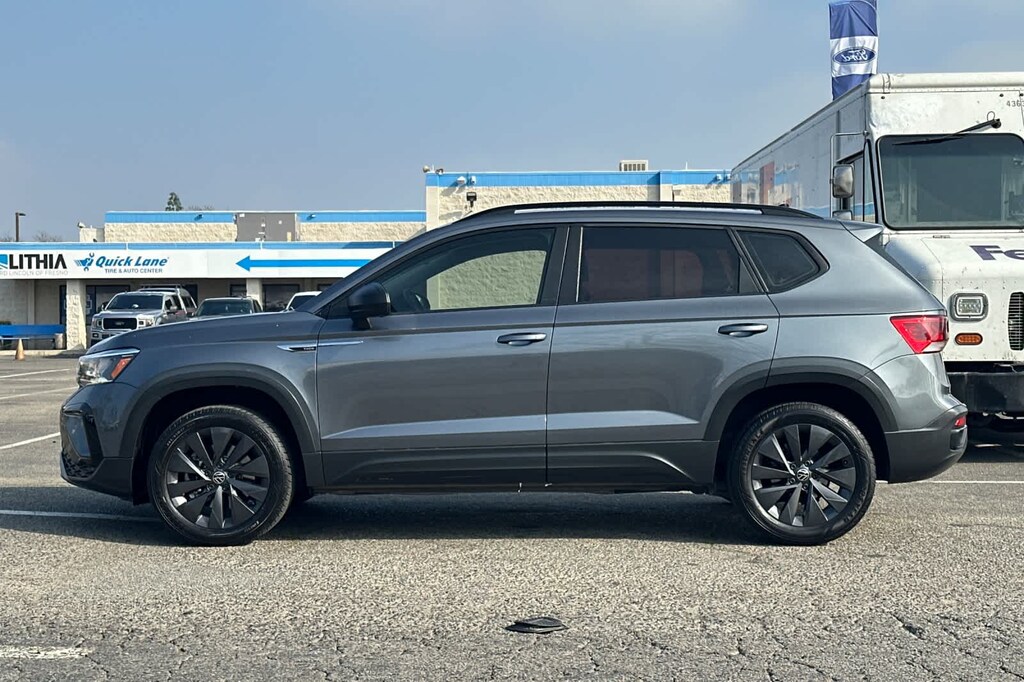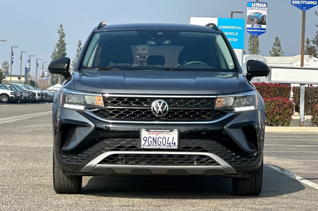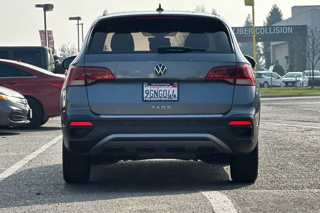 Lithia Ford and Lincoln of Fresno is pleased to offer this Platinum Gray Metallic 2023 Volkswagen Taos 1.5T S for purchase, this vehicle is well equipped with many features including: Convenience Features (Automatic Rain-Sensing Front Wipers, Heated Leatherette-Wrapped Steering Wheel, and Light Assist (High Beam Control For Headlights)), Driver Assistance Package (Adaptive Cruise Control (ACC) w/Stop & Go, Emergency Assist, Lane Assist (Lane Keeping System), and Travel Assist (Semi-Automated Driving Assistance)), Volkswagen Certified, 3.23 Axle Ratio, 4-Wheel Disc Brakes, 6 Speakers, ABS brakes, Air Conditioning, Alloy wheels, AM/FM radio, Brake assist, Bumpers: body-color, Cloth Seating Surfaces, Compass, Delay-off headlights, Driver door bin, Driver vanity mirror, Dual front impact airbags, Dual front side impact airbags, Electronic Stability Control, Emergency communication system: VW Car-Net Safe & Secure 5-year, Exterior Parking Camera Rear, First Aid Kit, Front anti-roll bar, Front Bucket Seats, Front Center Armrest, Front reading lights, Front Strut Rear Torsion Beam Suspension, Front wheel independent suspension, Fully automatic headlights, Illuminated entry, Low tire pressure warning, Occupant sensing airbag, Outside temperature display, Overhead airbag, Overhead console, Panic alarm, Passenger door bin, Passenger vanity mirror, Power door mirrors, Power steering, Power windows, Radio data system, Radio: Composition Color AM/FM, Rear anti-roll bar, Rear seat center armrest, Rear Sensors Credit, Rear window defroster, Rear window wiper, Remote keyless entry, Roof rack: rails only, Rubber Mats Kit (SNM), Speed control, Speed-sensing steering, Split folding rear seat, Spoiler, Steering wheel mounted audio controls, Tachometer, Telescoping steering wheel, Tilt steering wheel, Traction control, Trip computer, Variably intermittent wipers, and Wheels: 17 Silver Painted Alloy. FWD 1.5L I4 Turbocharged DOHC 16V LEV3-SULEV30 158hp 8-Speed Automatic with Tiptronic 1.5T S