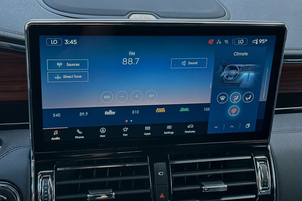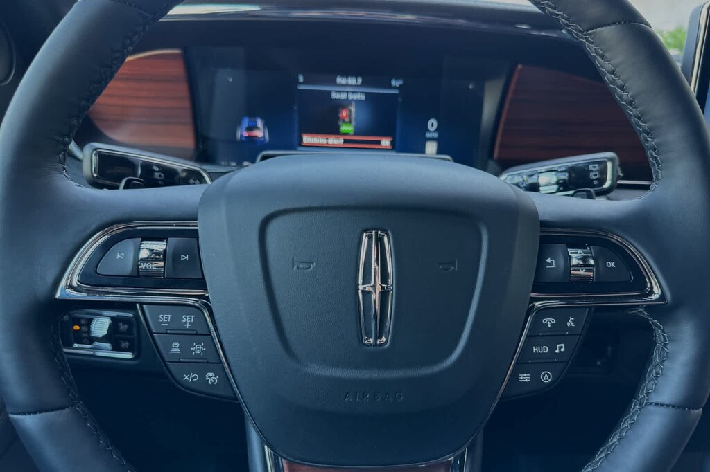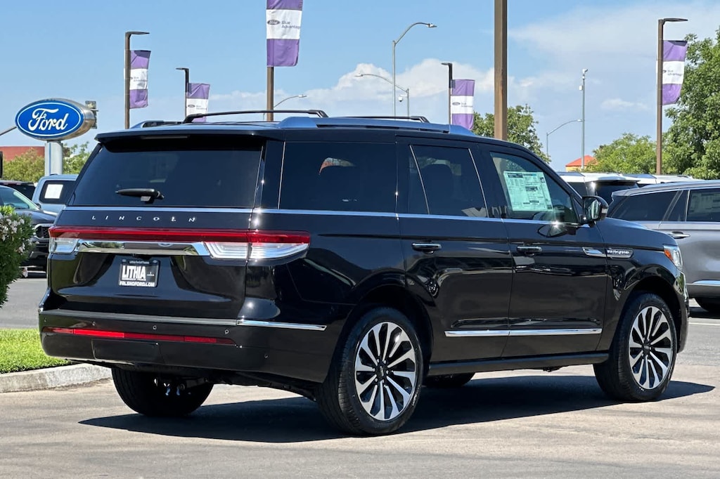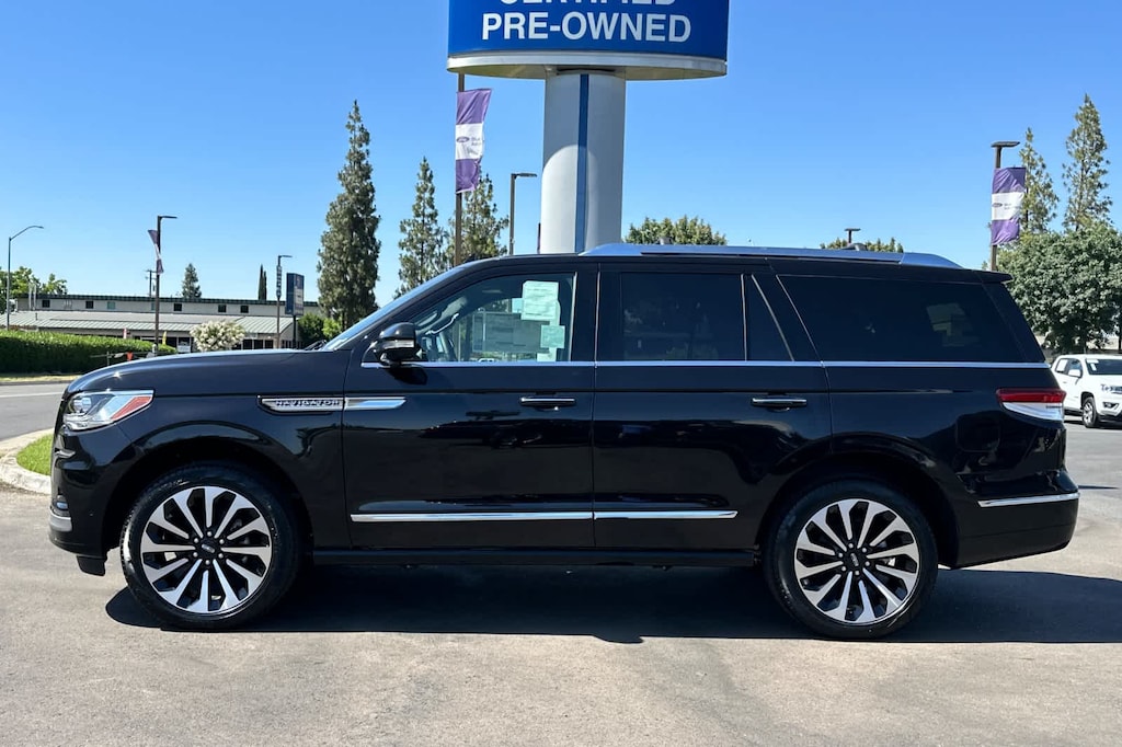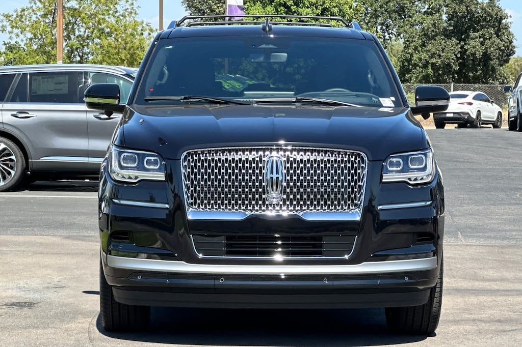 Lithia Ford and Lincoln of Fresno is pleased to offer this Infinite Black Metallic Clearcoat 2024 Lincoln Navigator Reserve for purchase, this vehicle is well equipped with many features including: Equipment Group 201A Reserve I, Heavy-Duty Trailer Tow Package (26mm Radiator, Class IV w/4-Pin & 7-Pin Connectors, Electronic Traction Assist (eLSD), Front Tow Hooks, Pro-Trailer Backup Assist 2.0, Smart Trailer Tow, Tiered Cargo Area Management System, Trailer Brake Controller, and Trailer Sway Control), Luxury Package (Illuminated 1st & 2nd Row Seat Belts, Lincoln Lit Star in Grille, Perfect Position Seats (30-Way) w/Active Motion, and Radio: Revel Ultima 3D Audio System w/28 Speakers), 4WD, Black Onyx Leather, 14 Speakers, 2nd Row Heated/Ventilated 40/Console/40 Seat, 3.73 Axle Ratio, 3rd row seats: split-bench, 4-Wheel Disc Brakes, ABS brakes, Adaptive suspension, Adjustable pedals, Air Conditioning, Alloy wheels, AM/FM radio: SiriusXM with 360L, Apple CarPlay/Android Auto, Audio memory, Auto High-beam Headlights, Auto Start-Stop Technology, Auto tilt-away steering wheel, Auto-dimming door mirrors, Auto-dimming Rear-View mirror, Auto-leveling suspension, Automatic temperature control, Bodyside moldings, Brake assist, Bumpers: body-color, Chrome Roof Rack w/Black Crossbars, Compass, Delay-off headlights, Driver door bin, Driver vanity mirror, Drivers Seat Mounted Armrest, Dual front impact airbags, Dual front side impact airbags, Electronic Stability Control, Emergency communication system: 911 Assist, Exterior Parking Camera Rear, Four wheel independent suspension, Front anti-roll bar, Front Bucket Seats, Front dual zone A/C, Front fog lights, Front reading lights, Fully automatic headlights, Garage door transmitter, Genuine wood dashboard insert, Genuine wood door panel insert, Head restraints memory, Heads-Up Display, Heated door mirrors, Heated front seats, Heated rear seats, Heated steering wheel, HVAC memory, Illuminated entry, Lane Departure Warning System, Leather steering wheel, Low tire pressure warning, Memory seat, Navigation system: Connected Navigation (1-year trial), Occupant sensing airbag, Outside temperature display, Overhead airbag, Overhead console, Panic alarm, Passenger door bin, Passenger seat mounted armrest, Passenger vanity mirror, Pedal memory, Power adjustable rear head restraints, Power door mirrors, Power driver seat, Power Liftgate, Power moonroof: Panoramic Vista Roof, Power passenger seat, Power steering, Power windows, Prem Lthr Auto Htd/Ventiltd Perfect Position Seats, Radio data system, Radio: Revel Audio System w/Satelllite/AM/FM/HD, Rain sensing wipers, Rear air conditioning, Rear anti-roll bar, Rear audio controls, Rear reading lights, Rear window defroster, Rear window wiper, Reclining 3rd row seat, Remote keyless entry, Security system, SiriusXM w/360L, Slow Climb Drive Mode, Speed control, Speed-sensing steering, Speed-Sensitive Wipers, Split folding rear seat, Spoiler, Steering wheel memory, Steering wheel mounted audio controls, SYNC 4 Communications & Entertainment System, Tachometer, Telescoping steering wheel, Tilt steering wheel, Traction control, Trip computer, Turn signal indicator mirrors, Variably intermittent wipers, Ventilated front seats, Ventilated rear seats, Voice-Activated Touchscreen Navigation System, Wheels: 22 12-Spoke Bright-Machined Aluminum, and Wheels: 22 Bright Machined Aluminum. 4WD 10-Speed Automatic V6 Reserve 4WD, Black Onyx Leather.