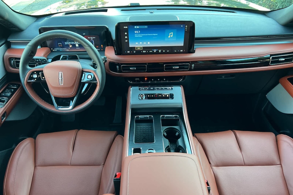 Lithia Ford and Lincoln of Fresno is pleased to offer this Infinite Black Metallic Clearcoat 2025 Lincoln Aviator Reserve for purchase, this vehicle is well equipped with many features including: 14 Speakers, 3rd row seats: split-bench, 4-Wheel Disc Brakes, 40/Mini Console/40 Dual Captains Chairs, ABS brakes, Adaptive suspension, Air Conditioning, Alloy wheels, AM/FM radio: SiriusXM, Apple CarPlay/Android Auto, Audio memory, Auto High-beam Headlights, Auto-dimming door mirrors, Auto-dimming Rear-View mirror, Automatic temperature control, Brake assist, Bumpers: body-color, Compass, Delay-off headlights, Driver door bin, Driver vanity mirror, Dual front impact airbags, Dual front side impact airbags, Electronic Stability Control, Emergency communication system: 911 Assist, Four wheel independent suspension, Front anti-roll bar, Front Bucket Seats, Front Center Armrest, Front dual zone A/C, Front reading lights, Fully automatic headlights, Garage door transmitter, Genuine wood console insert, Genuine wood dashboard insert, Heads-Up Display, Heated door mirrors, Heated front seats, Heated steering wheel, HVAC memory, Illuminated entry, Knee airbag, Leather steering wheel, Lincoln BlueCruise Equipped (4-Years Included), Lincoln Digital Experience, Low tire pressure warning, Memory seat, Navigation system: Connected Navigation (1-year trial), Occupant sensing airbag, Outside temperature display, Overhead airbag, Overhead console, Panic alarm, Passenger door bin, Passenger vanity mirror, Power door mirrors, Power driver seat, Power Liftgate, Power moonroof: Panoramic Vista Roof, Power passenger seat, Power steering, Power windows, Premium Lthr Heated/Ventilated Fnt Captains Chairs, Radio data system, Radio: Revel Audio System w/14 Speakers, Rain sensing wipers, Rear air conditioning, Rear anti-roll bar, Rear audio controls, Rear dual zone A/C, Rear reading lights, Rear window defroster, Rear window wiper, Remote keyless entry, Security system, SiriusXM, Speed control, Speed-Sensitive Wipers, Split folding rear seat, Spoiler, Steering wheel memory, Steering wheel mounted A/C controls, Steering wheel mounted audio controls, Tachometer, Telescoping steering wheel, Tilt steering wheel, Traction control, Trip computer, Turn signal indicator mirrors, Variably intermittent wipers, Ventilated front seats, and Wheels: 21 Bright-Machined Aluminum. AWD 10-Speed Automatic 3.0L V6 Reserve