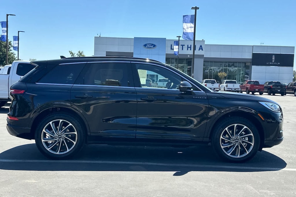 Lithia Ford and Lincoln of Fresno is pleased to offer this Infinite Black Metallic Clearcoat 2025 Lincoln Corsair Plug-In Hybrid Grand Touring for purchase, this vehicle is well equipped with many features including: 2.5L i-VCT, 19 Bright Machined Aluminum Wheels, 4-Wheel Disc Brakes, 9 Speakers, ABS brakes, Adaptive suspension, Air Conditioning, Alexa Built-In, Alloy wheels, AM/FM radio: SiriusXM with 360L, Apple CarPlay/Android Auto, Auto High-beam Headlights, Auto-dimming Rear-View mirror, Automatic temperature control, Brake assist, Bumpers: body-color, Compass, Delay-off headlights, Driver door bin, Driver vanity mirror, Dual front impact airbags, Dual front side impact airbags, Electronic Stability Control, Emergency communication system: 911 Assist, Four wheel independent suspension, Front anti-roll bar, Front Bucket Seats, Front Center Armrest, Front dual zone A/C, Front reading lights, Fully automatic headlights, Heated door mirrors, Heated front seats, Illuminated entry, Knee airbag, Leather steering wheel, Low tire pressure warning, Memory seat, Navigation system: Connected Navigation (4-year trial), Occupant sensing airbag, Outside temperature display, Overhead airbag, Overhead console, Panic alarm, Passenger door bin, Passenger vanity mirror, Power door mirrors, Power driver seat, Power Liftgate, Power moonroof: Panoramic Vista Roof, Power passenger seat, Power steering, Power windows, Premium Leather-Trimmed Heated Captains Chairs, Radio data system, Radio: Lincoln Premium Audio System w/MP3, Rear anti-roll bar, Rear Parking Sensors, Rear reading lights, Rear seat center armrest, Rear window defroster, Rear window wiper, Remote keyless entry, Security system, SiriusXM w/360L Radio, Speed control, Speed-sensing steering, Speed-Sensitive Wipers, Split folding rear seat, Spoiler, Steering wheel mounted A/C controls, Steering wheel mounted audio controls, SYNC 4 Communications & Entertainment System, Tachometer, Telescoping steering wheel, Tilt steering wheel, Traction control, Trip computer, and Variably intermittent wipers. AWD eCVT 2.5L i-VCT Grand Touring 2.5L i-VCT.