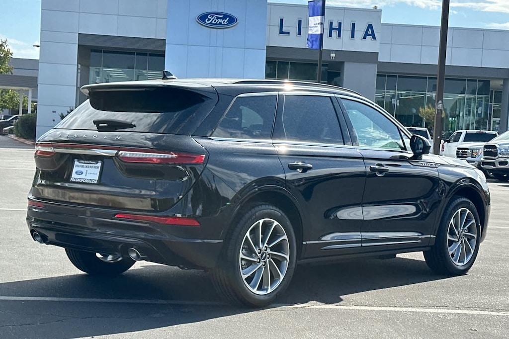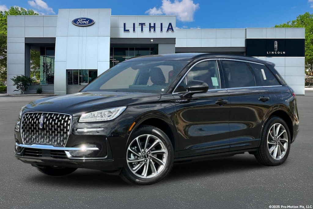Lithia Ford and Lincoln of Fresno is pleased to offer this Infinite Black Metallic Clearcoat 2025 Lincoln Corsair Plug-In Hybrid Grand Touring for purchase, this vehicle is well equipped with many features including: 2.5L i-VCT, 19 Bright Machined Aluminum Wheels, 4-Wheel Disc Brakes, 9 Speakers, ABS brakes, Adaptive suspension, Air Conditioning, Alexa Built-In, Alloy wheels, AM/FM radio: SiriusXM with 360L, Apple CarPlay/Android Auto, Auto High-beam Headlights, Auto-dimming Rear-View mirror, Automatic temperature control, Brake assist, Bumpers: body-color, Compass, Delay-off headlights, Driver door bin, Driver vanity mirror, Dual front impact airbags, Dual front side impact airbags, Electronic Stability Control, Emergency communication system: 911 Assist, Four wheel independent suspension, Front anti-roll bar, Front Bucket Seats, Front Center Armrest, Front dual zone A/C, Front reading lights, Fully automatic headlights, Heated door mirrors, Heated front seats, Illuminated entry, Knee airbag, Leather steering wheel, Low tire pressure warning, Memory seat, Navigation system: Connected Navigation (4-year trial), Occupant sensing airbag, Outside temperature display, Overhead airbag, Overhead console, Panic alarm, Passenger door bin, Passenger vanity mirror, Power door mirrors, Power driver seat, Power Liftgate, Power moonroof: Panoramic Vista Roof, Power passenger seat, Power steering, Power windows, Premium Leather-Trimmed Heated Captains Chairs, Radio data system, Radio: Lincoln Premium Audio System w/MP3, Rear anti-roll bar, Rear Parking Sensors, Rear reading lights, Rear seat center armrest, Rear window defroster, Rear window wiper, Remote keyless entry, Security system, SiriusXM w/360L Radio, Speed control, Speed-sensing steering, Speed-Sensitive Wipers, Split folding rear seat, Spoiler, Steering wheel mounted A/C controls, Steering wheel mounted audio controls, SYNC 4 Communications & Entertainment System, Tachometer, Telescoping steering wheel, Tilt steering wheel, Traction control, Trip computer, and Variably intermittent wipers. AWD eCVT 2.5L i-VCT Grand Touring 2.5L i-VCT.