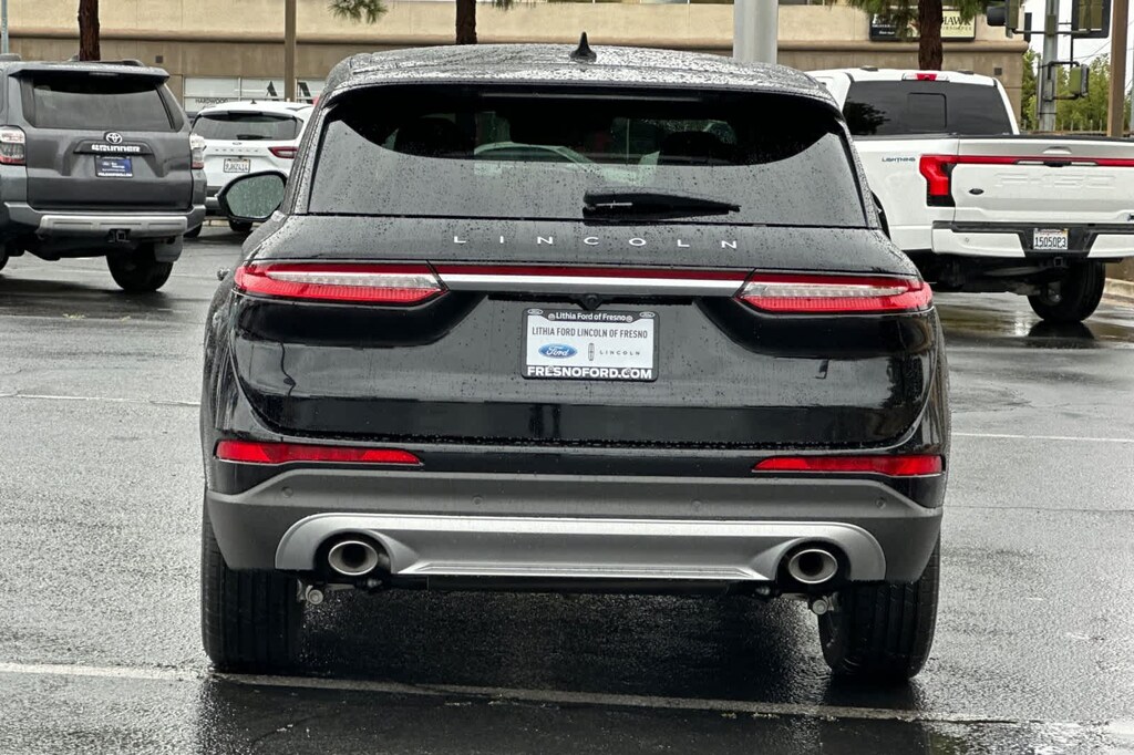 Lithia Ford and Lincoln of Fresno is pleased to offer this Infinite Black Metallic Clearcoat 2025 Lincoln Corsair Premiere for purchase, this vehicle is well equipped with many features including: 4-Wheel Disc Brakes, 9 Speakers, ABS brakes, Air Conditioning, Alexa Built-In, Alloy wheels, AM/FM radio: SiriusXM with 360L, Apple CarPlay/Android Auto, Auto High-beam Headlights, Auto-dimming Rear-View mirror, Automatic temperature control, Brake assist, Bumpers: body-color, Compass, Delay-off headlights, Driver door bin, Driver vanity mirror, Dual front impact airbags, Dual front side impact airbags, Electronic Stability Control, Emergency communication system: 911 Assist, Four wheel independent suspension, Front anti-roll bar, Front Bucket Seats, Front Center Armrest, Front dual zone A/C, Front reading lights, Fully automatic headlights, Heated door mirrors, Heated front seats, Illuminated entry, Knee airbag, Leather steering wheel, Lincoln Soft Touch Heated Front Captains Chairs, Low tire pressure warning, Memory seat, Navigation system: Connected Navigation (4-year trial), Occupant sensing airbag, Outside temperature display, Overhead airbag, Overhead console, Panic alarm, Passenger door bin, Passenger vanity mirror, Power door mirrors, Power driver seat, Power Liftgate, Power passenger seat, Power steering, Power windows, Radio data system, Radio: Lincoln Premium Audio System w/MP3, Rear anti-roll bar, Rear Parking Sensors, Rear reading lights, Rear seat center armrest, Rear window defroster, Rear window wiper, Remote keyless entry, Security system, SiriusXM w/360L Radio, Speed control, Speed-sensing steering, Speed-Sensitive Wipers, Split folding rear seat, Spoiler, Steering wheel mounted A/C controls, Steering wheel mounted audio controls, SYNC 4 Communications & Entertainment System, Tachometer, Telescoping steering wheel, Tilt steering wheel, Traction control, Trip computer, Variably intermittent wipers, and Wheels: 18 Warm Painted Alloy. FWD 8-Speed Automatic 2.0L I4 Premiere