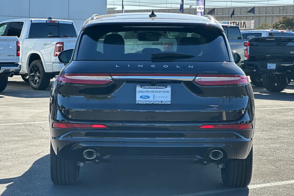 Lithia Ford and Lincoln of Fresno is pleased to offer this Infinite Black Metallic Clearcoat 2025 Lincoln Corsair Premiere for purchase, this vehicle is well equipped with many features including: 4-Wheel Disc Brakes, 9 Speakers, ABS brakes, Air Conditioning, Alexa Built-In, Alloy wheels, AM/FM radio: SiriusXM with 360L, Apple CarPlay/Android Auto, Auto High-beam Headlights, Auto-dimming Rear-View mirror, Automatic temperature control, Brake assist, Bumpers: body-color, Compass, Delay-off headlights, Driver door bin, Driver vanity mirror, Dual front impact airbags, Dual front side impact airbags, Electronic Stability Control, Emergency communication system: 911 Assist, Four wheel independent suspension, Front anti-roll bar, Front Bucket Seats, Front Center Armrest, Front dual zone A/C, Front reading lights, Fully automatic headlights, Heated door mirrors, Heated front seats, Illuminated entry, Knee airbag, Leather steering wheel, Lincoln Soft Touch Heated Front Captains Chairs, Low tire pressure warning, Memory seat, Navigation system: Connected Navigation (4-year trial), Occupant sensing airbag, Outside temperature display, Overhead airbag, Overhead console, Panic alarm, Passenger door bin, Passenger vanity mirror, Power door mirrors, Power driver seat, Power Liftgate, Power passenger seat, Power steering, Power windows, Radio data system, Radio: Lincoln Premium Audio System w/MP3, Rear anti-roll bar, Rear Parking Sensors, Rear reading lights, Rear seat center armrest, Rear window defroster, Rear window wiper, Remote keyless entry, Security system, SiriusXM w/360L Radio, Speed control, Speed-sensing steering, Speed-Sensitive Wipers, Split folding rear seat, Spoiler, Steering wheel mounted A/C controls, Steering wheel mounted audio controls, SYNC 4 Communications & Entertainment System, Tachometer, Telescoping steering wheel, Tilt steering wheel, Traction control, Trip computer, Variably intermittent wipers, and Wheels: 18 Warm Painted Alloy. AWD 8-Speed Automatic 2.0L I4 Premiere