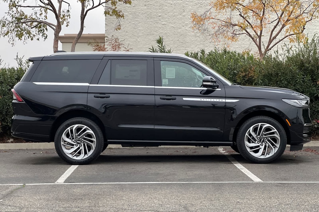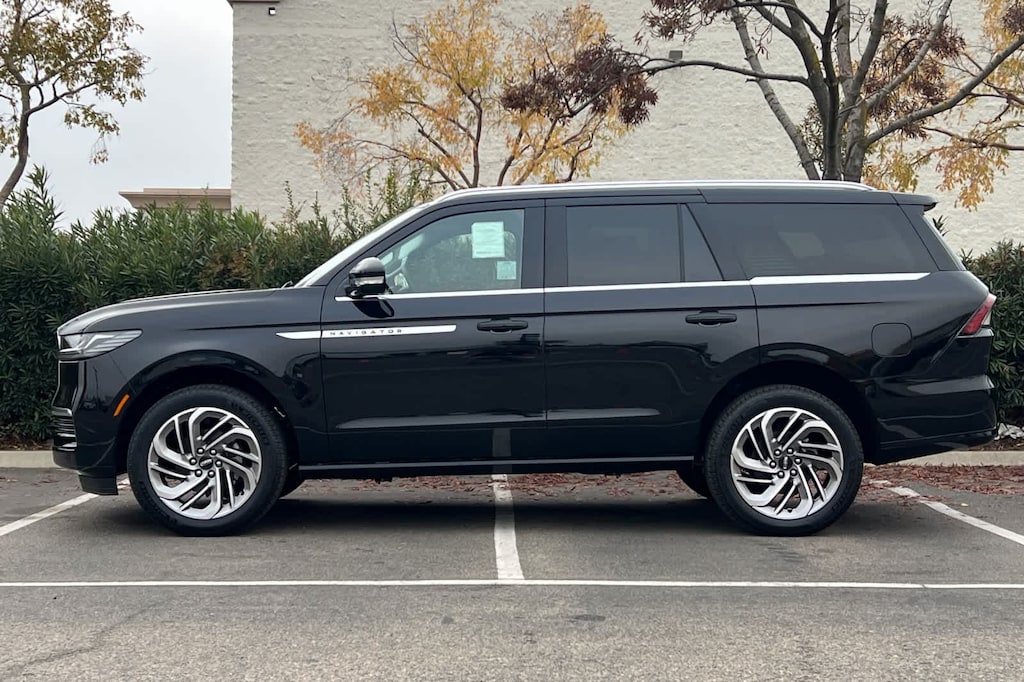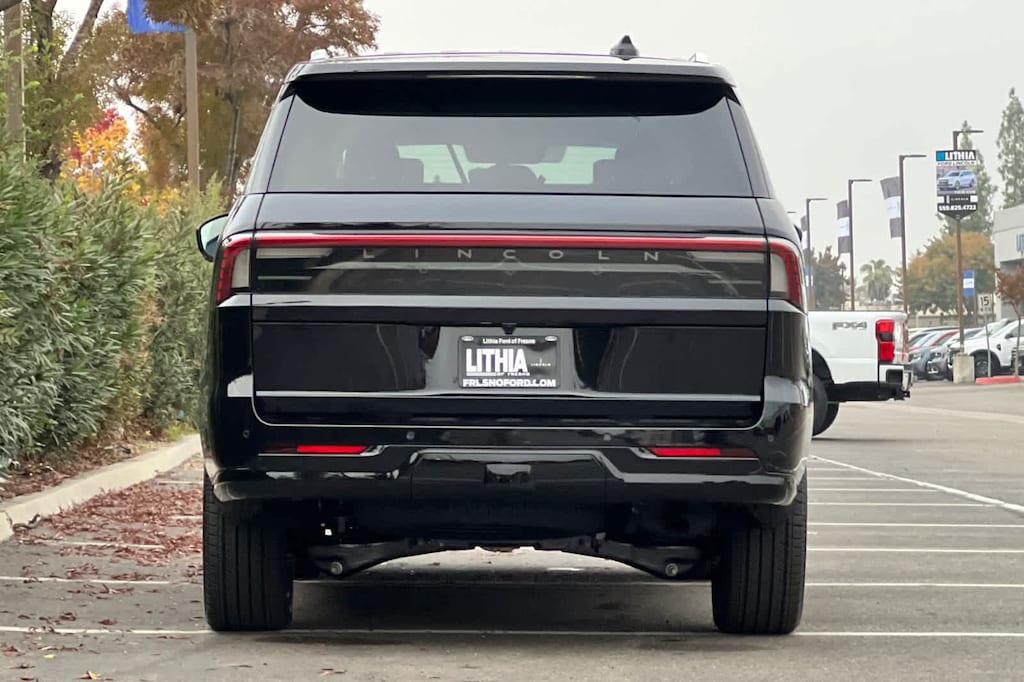 Lithia Ford and Lincoln of Fresno is pleased to offer this Infinite Black Metallic Clearcoat 2025 Lincoln Navigator Reserve for purchase, this vehicle is well equipped with many features including: 4WD, Black Onyx Leather, 28 Speakers, 3rd row seats: split-bench, 4-Wheel Disc Brakes, ABS brakes, Adaptive suspension, Adjustable pedals, Air Conditioning, Alloy wheels, AM/FM radio: SiriusXM with 360L, Apple CarPlay/Android Auto, Audio memory, Auto High-beam Headlights, Auto Htd & Ventilated Premium Lthr Captains Chair, Auto Start-Stop Technology, Auto tilt-away steering wheel, Auto-dimming door mirrors, Auto-dimming Rear-View mirror, Auto-leveling suspension, Automatic temperature control, Brake assist, Bumpers: body-color, Compass, Delay-off headlights, Driver door bin, Driver vanity mirror, Drivers Seat Mounted Armrest, Dual front impact airbags, Dual front side impact airbags, Electronic Stability Control, Emergency communication system: 911 Assist, Exterior Parking Camera Rear, Four wheel independent suspension, Front anti-roll bar, Front Bucket Seats, Front dual zone A/C, Front reading lights, Fully automatic headlights, Garage door transmitter, Heated door mirrors, Heated front seats, Heated rear seats, Heated steering wheel, HVAC memory, Illuminated entry, Leather steering wheel, Lincoln Connect, Lincoln Premium Connectivity, Low tire pressure warning, Memory seat, Navigation system: Connected Navigation (1-year trial), Occupant sensing airbag, Outside temperature display, Overhead airbag, Overhead console, Panic alarm, Passenger door bin, Passenger seat mounted armrest, Passenger vanity mirror, Pedal memory, Power adjustable rear head restraints, Power door mirrors, Power driver seat, Power moonroof: Panoramic Vista Roof, Power passenger seat, Power steering, Power windows, Radio data system, Radio: Revel Ultima 3D AM/FM/HD Audio System, Rain sensing wipers, Rear air conditioning, Rear anti-roll bar, Rear audio controls, Rear reading lights, Rear window defroster, Rear window wiper, Reclining 3rd row seat, Remote keyless entry, Security system, SiriusXM w/360L, Speed control, Speed-sensing steering, Speed-Sensitive Wipers, Split folding rear seat, Spoiler, Steering wheel memory, Steering wheel mounted audio controls, Tachometer, Telescoping steering wheel, Tilt steering wheel, Traction control, Trip computer, Turn signal indicator mirrors, Variably intermittent wipers, Ventilated front seats, and Wheels: 22 Dark Tarnished Aluminum. 4WD 10-Speed Automatic 3.5L V6 Reserve 4WD, Black Onyx Leather.