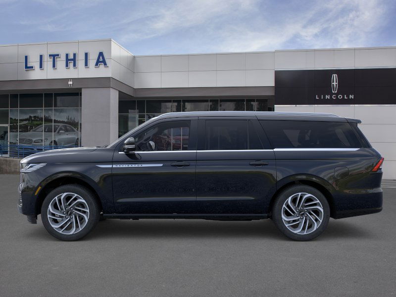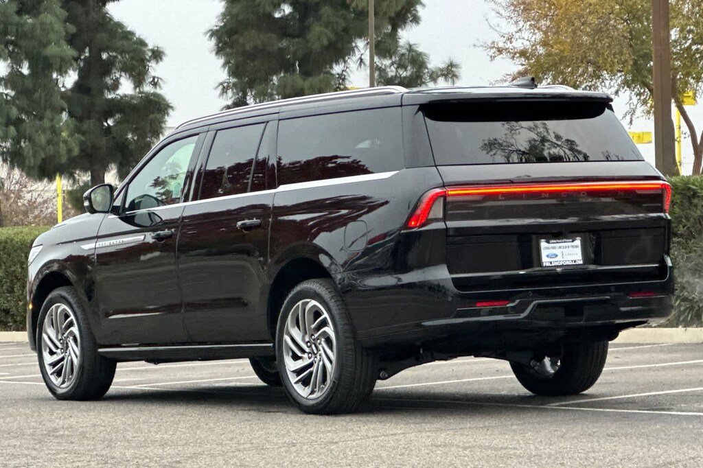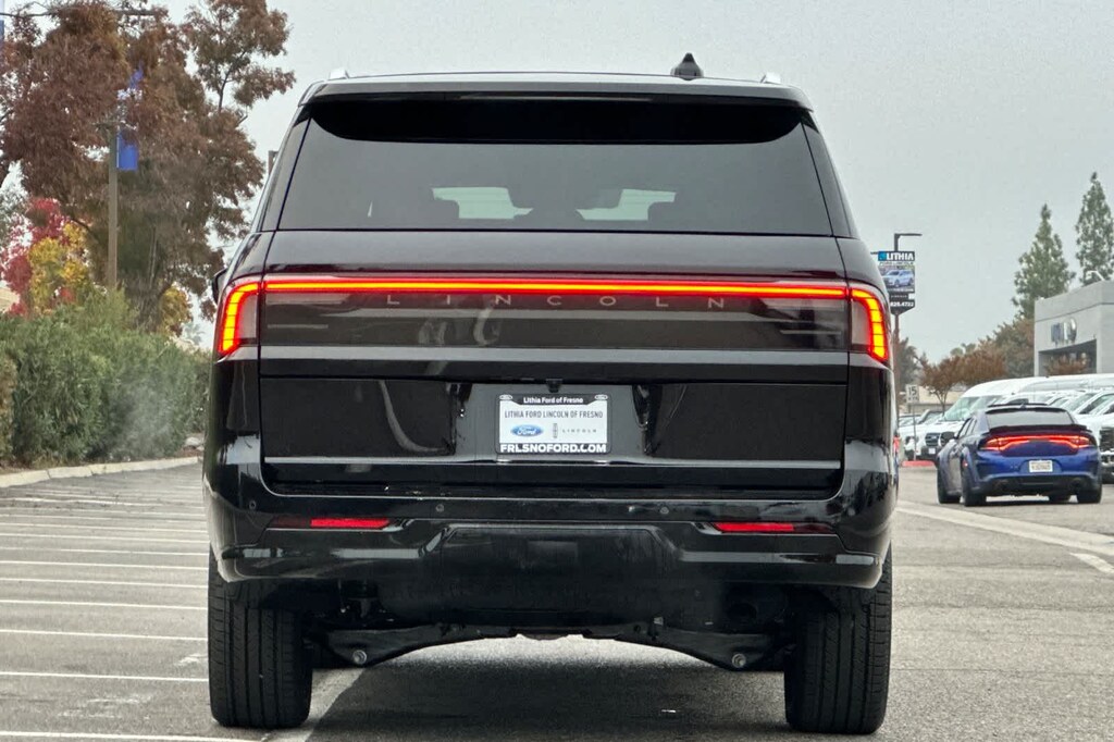 Lithia Ford and Lincoln of Fresno is pleased to offer this Infinite Black Metallic Clearcoat 2025 Lincoln Navigator L Reserve for purchase, this vehicle is well equipped with many features including: 28 Speakers, 3rd row seats: split-bench, 4-Wheel Disc Brakes, ABS brakes, Adaptive suspension, Adjustable pedals, Air Conditioning, Alloy wheels, AM/FM radio: SiriusXM with 360L, Apple CarPlay/Android Auto, Audio memory, Auto High-beam Headlights, Auto Htd & Ventilated Premium Lthr Captains Chair, Auto Start-Stop Technology, Auto tilt-away steering wheel, Auto-dimming door mirrors, Auto-dimming Rear-View mirror, Auto-leveling suspension, Automatic temperature control, Brake assist, Bumpers: body-color, Compass, Delay-off headlights, Driver door bin, Driver vanity mirror, Drivers Seat Mounted Armrest, Dual front impact airbags, Dual front side impact airbags, Electronic Stability Control, Emergency communication system: 911 Assist, Exterior Parking Camera Rear, Four wheel independent suspension, Front anti-roll bar, Front Bucket Seats, Front dual zone A/C, Front reading lights, Fully automatic headlights, Garage door transmitter, Heated door mirrors, Heated front seats, Heated rear seats, Heated steering wheel, HVAC memory, Illuminated entry, Leather steering wheel, Lincoln Connect, Lincoln Premium Connectivity, Low tire pressure warning, Memory seat, Navigation system: Connected Navigation (1-year trial), Occupant sensing airbag, Outside temperature display, Overhead airbag, Overhead console, Panic alarm, Passenger door bin, Passenger seat mounted armrest, Passenger vanity mirror, Pedal memory, Power adjustable front head restraints, Power adjustable rear head restraints, Power door mirrors, Power driver seat, Power moonroof, Power passenger seat, Power steering, Power windows, Radio data system, Radio: Revel Ultima 3D AM/FM/HD Audio System, Rain sensing wipers, Rear air conditioning, Rear anti-roll bar, Rear audio controls, Rear reading lights, Rear window defroster, Rear window wiper, Reclining 3rd row seat, Remote keyless entry, Security system, SiriusXM w/360L, Speed control, Speed-sensing steering, Speed-Sensitive Wipers, Split folding rear seat, Spoiler, Steering wheel memory, Steering wheel mounted audio controls, Tachometer, Telescoping steering wheel, Tilt steering wheel, Traction control, Trip computer, Turn signal indicator mirrors, Variably intermittent wipers, Ventilated front seats, and Wheels: 22 Dark Tarnished Aluminum. 4WD 10-Speed Automatic 3.5L V6 Reserve