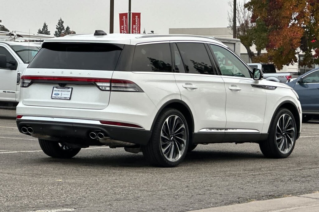 Lithia Ford and Lincoln of Fresno is pleased to offer this Pristine White Metallic Tri-Coat 2026 Lincoln Aviator Reserve for purchase, this vehicle is well equipped with many features including: Lincoln Connectivity Package (4-years included), 14 Speakers, 3rd row seats: split-bench, 4-Wheel Disc Brakes, 40/Mini Console/40 Dual Captains Chairs, ABS brakes, Adaptive suspension, Advanced Heads-Up Display, Air Conditioning, Alloy wheels, AM/FM radio: SiriusXM, Apple CarPlay/Android Auto, Audio memory, Auto Air Refresh, Auto High-beam Headlights, Auto-dimming door mirrors, Auto-dimming Rear-View mirror, Automatic temperature control, Brake assist, Bumpers: body-color, Compass, Delay-off headlights, Driver door bin, Driver vanity mirror, Dual front impact airbags, Dual front side impact airbags, Electronic Stability Control, Emergency communication system: 911 Assist, Exterior Parking Camera Rear, Four wheel independent suspension, Front anti-roll bar, Front Bucket Seats, Front Center Armrest, Front dual zone A/C, Front reading lights, Fully automatic headlights, Garage door transmitter, Genuine wood console insert, Genuine wood dashboard insert, Heads-Up Display, Heated door mirrors, Heated front seats, Heated steering wheel, HVAC memory, Illuminated entry, Knee airbag, Leather steering wheel, Lincoln BlueCruise Equipped (4-Years Included), Lincoln Digital Experience, Low tire pressure warning, Memory seat, Navigation System, Occupant sensing airbag, Outside temperature display, Overhead airbag, Overhead console, Panic alarm, Passenger door bin, Passenger vanity mirror, Power door mirrors, Power driver seat, Power Liftgate, Power moonroof: Panoramic Vista Roof, Power passenger seat, Power steering, Power windows, Premium Lthr Heated/Ventilated Fnt Captains Chairs, Radio data system, Radio: Revel Audio System w/14 Speakers, Rain sensing wipers, Rear air conditioning, Rear anti-roll bar, Rear audio controls, Rear dual zone A/C, Rear reading lights, Rear window defroster, Rear window wiper, Remote keyless entry, Security system, SiriusXM, Speed control, Speed-Sensitive Wipers, Split folding rear seat, Spoiler, Steering wheel memory, Steering wheel mounted A/C controls, Steering wheel mounted audio controls, Tachometer, Telescoping steering wheel, Tilt steering wheel, Traction control, Trip computer, Turn signal indicator mirrors, Variably intermittent wipers, Ventilated front seats, Wheels: 21 Bright-Machined Aluminum, and Wireless Charging Pad. AWD 10-Speed Automatic 3.0L V6 Reserve