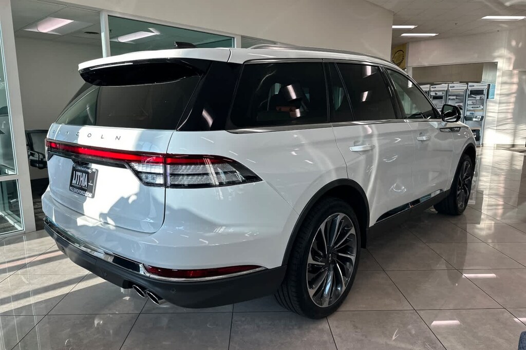 Lithia Ford and Lincoln of Fresno is pleased to offer this Pristine White Metallic Tri-Coat 2026 Lincoln Aviator Reserve for purchase, this vehicle is well equipped with many features including: Lincoln Connectivity Package (4-years included), 14 Speakers, 3rd row seats: split-bench, 4-Wheel Disc Brakes, 40/Mini Console/40 Dual Captains Chairs, ABS brakes, Adaptive suspension, Advanced Heads-Up Display, Air Conditioning, Alloy wheels, AM/FM radio: SiriusXM, Apple CarPlay/Android Auto, Audio memory, Auto Air Refresh, Auto High-beam Headlights, Auto-dimming door mirrors, Auto-dimming Rear-View mirror, Automatic temperature control, Brake assist, Bumpers: body-color, Compass, Delay-off headlights, Driver door bin, Driver vanity mirror, Dual front impact airbags, Dual front side impact airbags, Electronic Stability Control, Emergency communication system: 911 Assist, Exterior Parking Camera Rear, Four wheel independent suspension, Front anti-roll bar, Front Bucket Seats, Front Center Armrest, Front dual zone A/C, Front reading lights, Fully automatic headlights, Garage door transmitter, Genuine wood console insert, Genuine wood dashboard insert, Heads-Up Display, Heated door mirrors, Heated front seats, Heated steering wheel, HVAC memory, Illuminated entry, Knee airbag, Leather steering wheel, Lincoln BlueCruise Equipped (4-Years Included), Lincoln Digital Experience, Low tire pressure warning, Memory seat, Navigation System, Occupant sensing airbag, Outside temperature display, Overhead airbag, Overhead console, Panic alarm, Passenger door bin, Passenger vanity mirror, Power door mirrors, Power driver seat, Power Liftgate, Power moonroof: Panoramic Vista Roof, Power passenger seat, Power steering, Power windows, Premium Lthr Heated/Ventilated Fnt Captains Chairs, Radio data system, Radio: Revel Audio System w/14 Speakers, Rain sensing wipers, Rear air conditioning, Rear anti-roll bar, Rear audio controls, Rear dual zone A/C, Rear reading lights, Rear window defroster, Rear window wiper, Remote keyless entry, Security system, SiriusXM, Speed control, Speed-Sensitive Wipers, Split folding rear seat, Spoiler, Steering wheel memory, Steering wheel mounted A/C controls, Steering wheel mounted audio controls, Tachometer, Telescoping steering wheel, Tilt steering wheel, Traction control, Trip computer, Turn signal indicator mirrors, Variably intermittent wipers, Ventilated front seats, Wheels: 21 Bright-Machined Aluminum, and Wireless Charging Pad. AWD 10-Speed Automatic 3.0L V6 Reserve