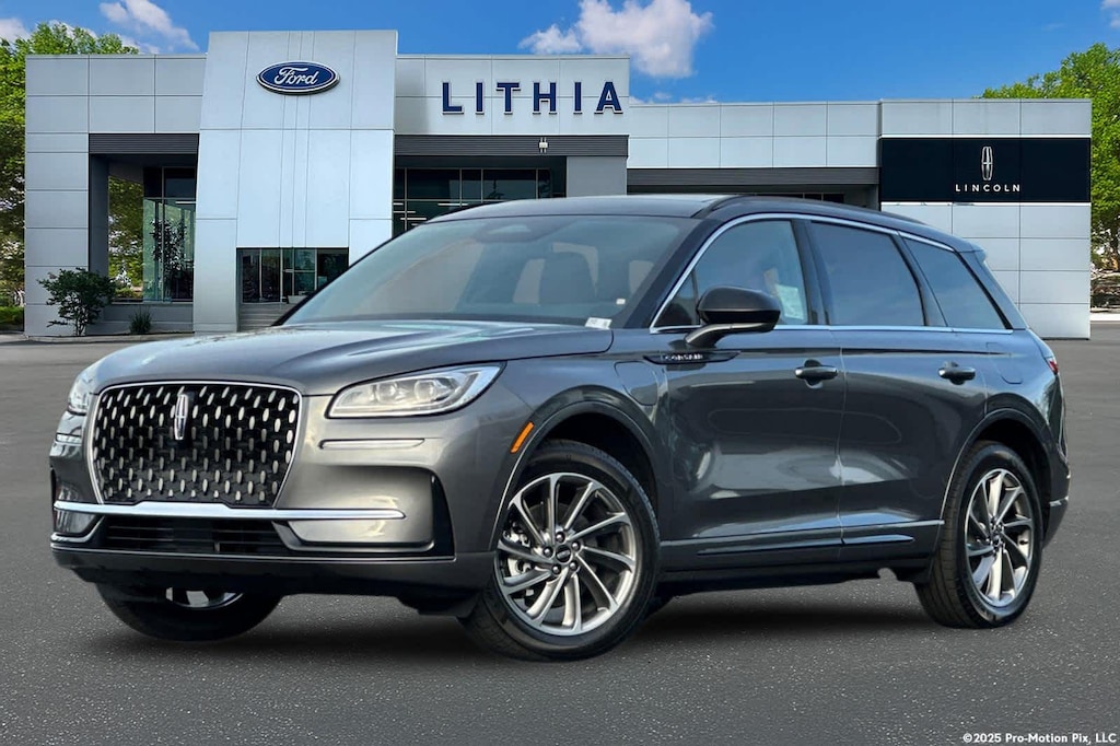 Lithia Ford and Lincoln of Fresno is pleased to offer this Asher Gray Metallic Clearcoat 2026 Lincoln Corsair Plug-In Hybrid Grand Touring for purchase, this vehicle is well equipped with many features including: 2.5L i-VCT, 19 Bright Machined Aluminum Wheels, 4-Wheel Disc Brakes, 9 Speakers, ABS brakes, Adaptive suspension, Air Conditioning, Alexa Built-In, Alloy wheels, AM/FM radio: SiriusXM with 360L, Apple CarPlay/Android Auto, Auto High-beam Headlights, Auto-dimming Rear-View mirror, Automatic temperature control, Brake assist, Bumpers: body-color, Compass, Delay-off headlights, Driver door bin, Driver vanity mirror, Dual front impact airbags, Dual front side impact airbags, Electronic Stability Control, Emergency communication system: 911 Assist, Exterior Parking Camera Rear, Four wheel independent suspension, Front anti-roll bar, Front Bucket Seats, Front Center Armrest, Front dual zone A/C, Front reading lights, Fully automatic headlights, Heated door mirrors, Heated front seats, Illuminated entry, Knee airbag, Leather steering wheel, Low tire pressure warning, Memory seat, Navigation system: Connected Navigation (4-year trial), Occupant sensing airbag, Outside temperature display, Overhead airbag, Overhead console, Panic alarm, Passenger door bin, Passenger vanity mirror, Power door mirrors, Power driver seat, Power Liftgate, Power moonroof: Panoramic Vista Roof, Power passenger seat, Power steering, Power windows, Premium Leather-Trimmed Heated Captains Chairs, Radio data system, Radio: Lincoln Premium Audio System w/MP3, Rear anti-roll bar, Rear Parking Sensors, Rear reading lights, Rear seat center armrest, Rear window defroster, Rear window wiper, Remote keyless entry, Security system, SiriusXM w/360L Radio, Speed control, Speed-sensing steering, Speed-Sensitive Wipers, Split folding rear seat, Spoiler, Steering wheel mounted A/C controls, Steering wheel mounted audio controls, SYNC 4 Communications & Entertainment System, Tachometer, Telescoping steering wheel, Tilt steering wheel, Traction control, Trip computer, and Variably intermittent wipers. AWD eCVT 2.5L i-VCT Grand Touring 2.5L i-VCT.