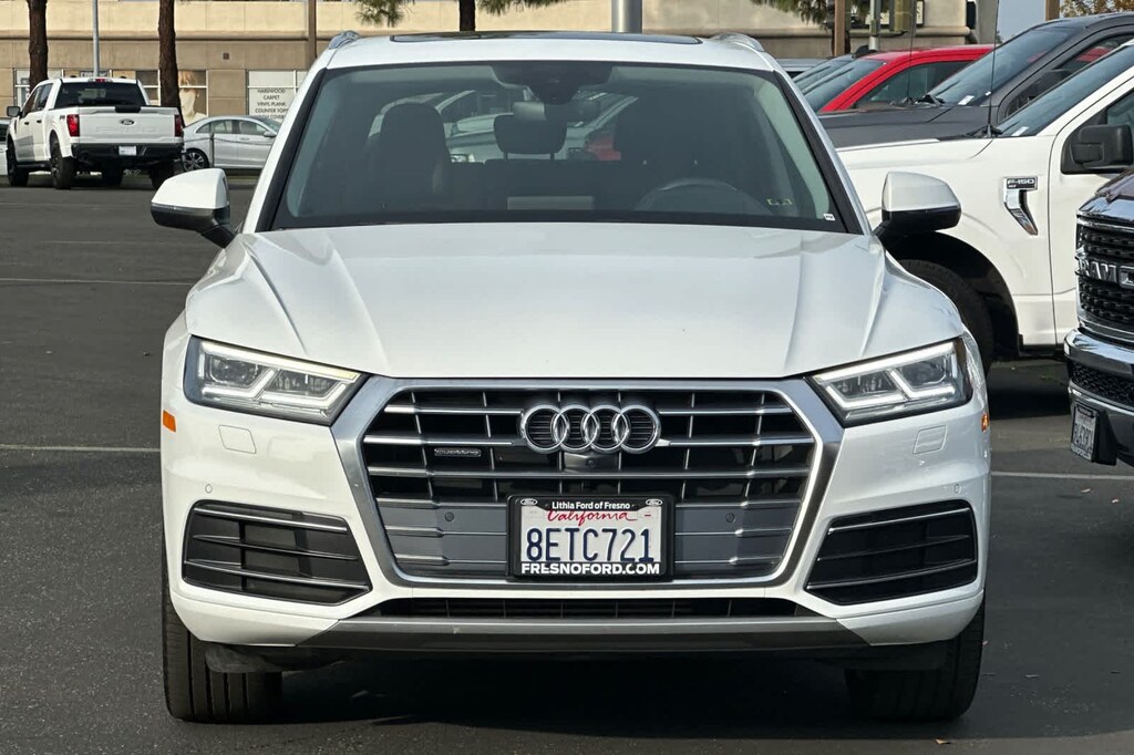 Lithia Ford and Lincoln of Fresno is pleased to offer this White 2018 Audi Q5 2.0T for purchase, this vehicle is well equipped with many features including: Leather, 10 Speakers, 4-Wheel Disc Brakes, 5.302 Axle Ratio, 8-Way Power Front Bucket Seats, ABS brakes, Air Conditioning, Alloy wheels, Audi smartphone interface (Apple CarPlay/Android Auto), Auto-dimming Rear-View mirror, Automatic temperature control, Brake assist, Bumpers: body-color, Compass, Delay-off headlights, Driver door bin, Driver vanity mirror, Dual front impact airbags, Dual front side impact airbags, Electronic Stability Control, Exterior Parking Camera Rear, Four wheel independent suspension, Front anti-roll bar, Front Bucket Seats, Front Center Armrest, Front dual zone A/C, Front fog lights, Front reading lights, Garage door transmitter: HomeLink, Genuine wood console insert, Genuine wood dashboard insert, Genuine wood door panel insert, Heated door mirrors, High intensity discharge headlights: Xenon plus, Illuminated entry, Leather Seating Surfaces, Leather Shift Knob, Leather steering wheel, Low tire pressure warning, Occupant sensing airbag, Outside temperature display, Overhead airbag, Overhead console, Panic alarm, Passenger door bin, Passenger vanity mirror, Power door mirrors, Power driver seat, Power Liftgate, Power passenger seat, Power steering, Power windows, Radio data system, Rain sensing wipers, Rear air conditioning, Rear anti-roll bar, Rear fog lights, Rear reading lights, Rear seat center armrest, Rear window defroster, Rear window wiper, Remote keyless entry, Roof rack, Security system, Speed control, Speed-sensing steering, Speed-Sensitive Wipers, Split folding rear seat, Spoiler, Steering wheel mounted audio controls, Tachometer, Telescoping steering wheel, Tilt steering wheel, Traction control, Trip computer, Turn signal indicator mirrors, Variably intermittent wipers, and Wheels: 8 x 18 5-Double-Spoke Dynamic Design. quattro 2.0L TFSI 7-Speed Automatic S tronic 2.0T quattro