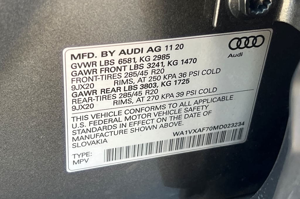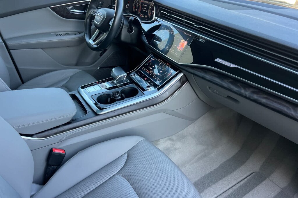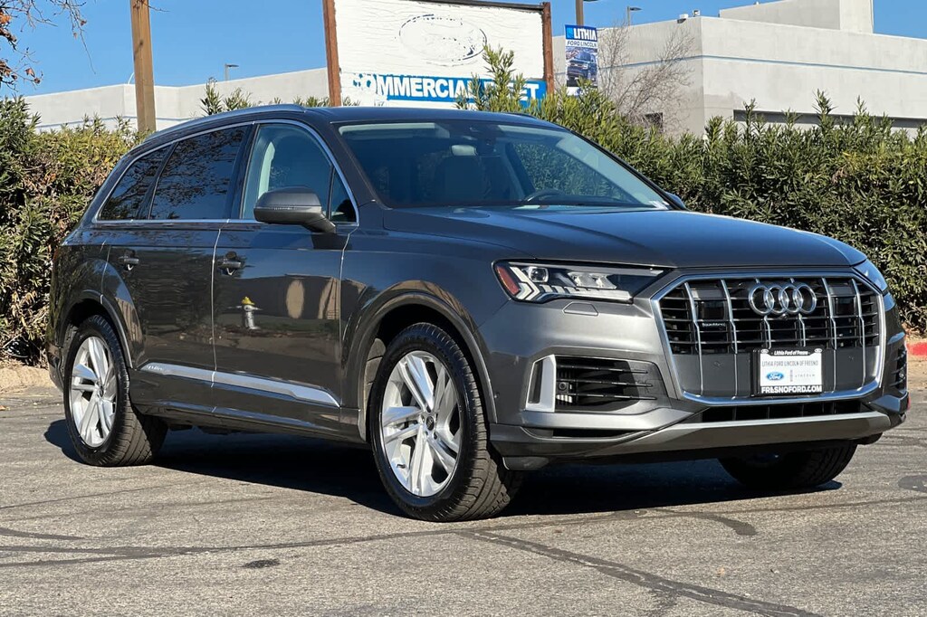 Lithia Ford and Lincoln of Fresno is pleased to offer this Samurai Gray Metallic 2021 Audi Q7 55 Prestige for purchase, this vehicle is well equipped with many features including: Ambient Interior Lighting Package, Contour/Ambient LED Interior Lighting Package, Convenience Package (3-Spoke Multifunction Steering Wheel w/Paddles, Audi Phone Box w/Wireless Charging, Heated Auto-Dimming Power Folding Exterior Mirrors, and Topview Camera System), Executive Package (4-Zone Automatic Climate Control, Audi Active Lane Assist w/Emergency Assist, Audi Adaptive Cruise Assist w/Traffic Jam Assist, Driver & Passenger Front Seats w/Ventilation, Heated Rear Seats, and Rear Door/Side Windows & Tailgate Sunshades), Interior Protection Package, Prestige Package (Bang & Olufsen 3D Premium Sound System, Comfort Adaptive Air Suspension, Dual-Pane Acoustic Side Windows, Head-Up Display, Illuminated Door Sills, Intersection Assist, Matrix-Design LED Headlights, Power Soft-Closing Doors, Traffic Sign Recognition, and Wheels: 20 5-Spoke Turbine-Design), Towing Package (Tow Hitch Receiver), 10 Speakers, 3.204 Axle Ratio, 3rd row seats: bench, 4-Wheel Disc Brakes, ABS brakes, Air Conditioning, Alloy wheels, AM/FM radio: SiriusXM, Audi smartphone interface (Apple CarPlay/Android Auto), Auto High-beam Headlights, Auto-dimming Rear-View mirror, Automatic temperature control, Brake assist, Bumpers: body-color, Compass, Delay-off headlights, Driver door bin, Driver vanity mirror, Dual front impact airbags, Dual front side impact airbags, Electronic Stability Control, Emergency communication system: Audi connect CARE, PRIME & PLUS, Exterior Parking Camera Rear, Four wheel independent suspension, Front anti-roll bar, Front Bucket Seats, Front Center Armrest, Front dual zone A/C, Front fog lights, Front reading lights, Fully automatic headlights, Garage door transmitter: HomeLink, Genuine wood door panel insert, Gray/Brown Fine Grain Ash Natural Wood Inlays, Heated door mirrors, Heated Front Bucket Seats, Heated front seats, Illuminated entry, Leather Seating Surfaces, Leather Shift Knob, Leather steering wheel, Low tire pressure warning, Memory seat, Navigation system: Audi MMI Navigation plus with Touch Response, Occupant sensing airbag, Outside temperature display, Overhead airbag, Overhead console, Panic alarm, Passenger door bin, Passenger vanity mirror, Power door mirrors, Power driver seat, Power Liftgate, Power moonroof, Power passenger seat, Power steering, Power windows, Radio data system, Radio: Audi Sound System, Rain sensing wipers, Rear air conditioning, Rear anti-roll bar, Rear fog lights, Rear reading lights, Rear seat center armrest, Rear window defroster, Rear window wiper, Reclining 3rd row seat, Remote keyless entry, Roof rack: rails only, Security system, Speed control, Speed-sensing steering, Split folding rear seat, Spoiler, Steering wheel memory, Steering wheel mounted audio controls, Tachometer, Telescoping steering wheel, Tilt steering wheel, Traction control, Trip computer, Turn signal indicator mirrors, Variably intermittent wipers, and Wheels: 19 5-Arm-Star Design. quattro 3.0L TFSI V6 DOHC 8-Speed Automatic with Tiptronic 55 Prestige quattro