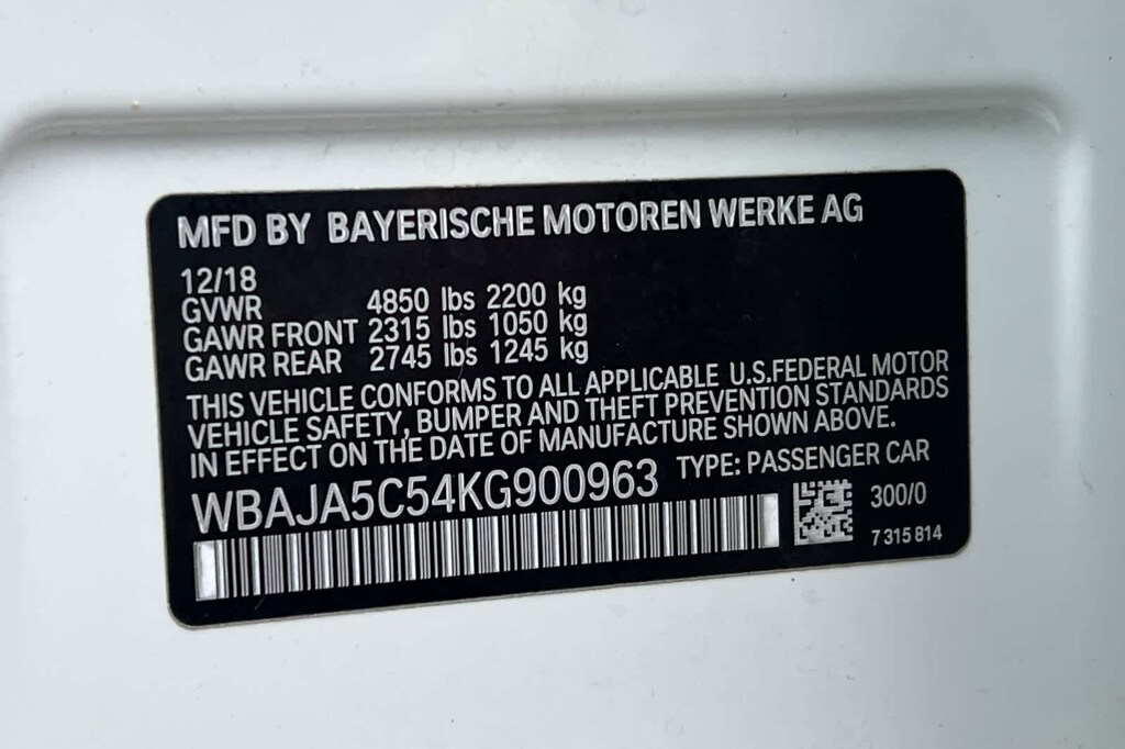 Lithia Ford and Lincoln of Fresno is pleased to offer this Alpine White 2019 BMW 5 Series 530i for purchase, this vehicle is well equipped with many features including: Black Artificial Leather, 12 Speakers, 4-Wheel Disc Brakes, ABS brakes, Air Conditioning, Alloy wheels, AM/FM radio, Apple CarPlay, Apple CarPlay Compatibility w/1 Year Trial, Auto tilt-away steering wheel, Auto-dimming door mirrors, Auto-dimming Rear-View mirror, Automatic temperature control, Brake assist, Bumpers: body-color, CD player, Comfort Access Keyless Entry, Delay-off headlights, Driver door bin, Driver vanity mirror, Dual front impact airbags, Dual front side impact airbags, Electronic Stability Control, Emergency communication system: BMW Assist eCall, Enhanced USB & Bluetooth, Exterior Parking Camera Rear, Four wheel independent suspension, Front anti-roll bar, Front Bucket Seats, Front Center Armrest, Front dual zone A/C, Front reading lights, Fully automatic headlights, Garage door transmitter, Genuine wood console insert, Genuine wood dashboard insert, Genuine wood door panel insert, Heated door mirrors, Heated Front Seats, HiFi Sound System, Illuminated entry, In-Dash CD Player, Leather Shift Knob, Leather steering wheel, Low tire pressure warning, Lumbar Support, Memory seat, Navigation System, Occupant sensing airbag, Outside temperature display, Overhead airbag, Panic alarm, Passenger door bin, Passenger vanity mirror, Power door mirrors, Power driver seat, Power Front Seats, Power moonroof, Power passenger seat, Power steering, Power Tailgate, Power windows, Radio data system, Radio: AM/FM Audio System, Rain sensing wipers, Rear anti-roll bar, Rear reading lights, Rear seat center armrest, Rear window defroster, Remote keyless entry, Security system, SensaTec Leatherette Upholstery, SiriusXM Satellite Radio, Speed control, Speed-sensing steering, Speed-Sensitive Wipers, Split folding rear seat, Sport Seats, Sport steering wheel, Steering wheel memory, Steering wheel mounted audio controls, Tachometer, Telescoping steering wheel, Tilt steering wheel, Traction control, Trip computer, Turn signal indicator mirrors, Variably intermittent wipers, Wheels: 18 x 8 Double-Spoke (Style 634), and WiFi Hotspot. RWD 2.0L 4-Cylinder 8-Speed Automatic 530i
