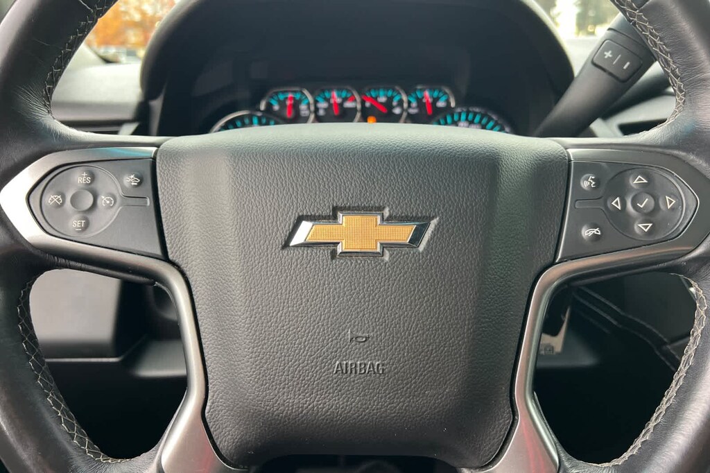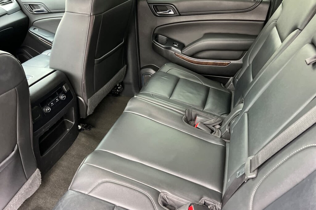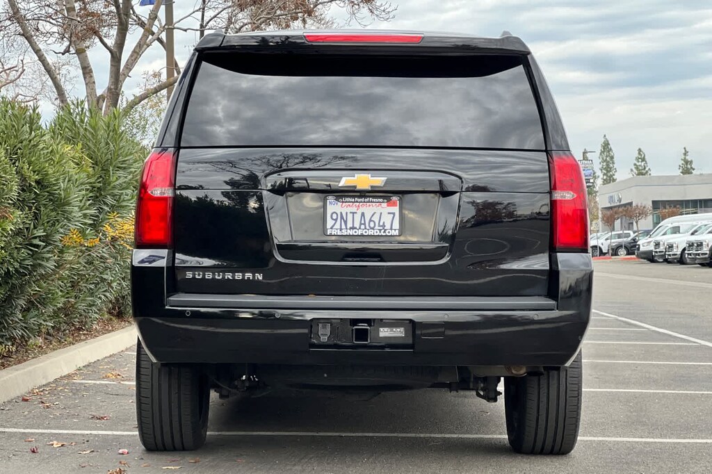 Lithia Ford and Lincoln of Fresno is pleased to offer this Black 2018 Chevrolet Suburban LT for purchase, this vehicle is well equipped with many features including: Enhanced Driver Alert Package (Forward Collision Alert, Intellibeam Headlamps w/Automatic High Beam On/Off, Lane Keep Assist w/Lane Departure Warning, Low Speed Forward Automatic Braking, and Safety Alert Seat), License Plate Front Mounting Package, Preferred Equipment Group 1LT (12-Volt Auxiliary Power Outlet (5), 1st & 2nd Row Color-Keyed Carpeted Floor Mats, 2nd Row 60/40 Split-Folding Manual Bench, 3rd Row Manual 60/40 Split-Folding Fold Flat Bench, 4-Wheel Antilock Disc Brakes, 6-Way Power Front Passenger Seat Adjuster, Auto-Dimming Inside Rear-View Mirror, Black Assist Steps, Bose Premium Audio System Feature, Color-Keyed Carpeting Floor Covering, Driver Inboard & Front Passenger Airbags, Electronic Cruise Control w/Set & Resume Speed, Extended-Range Remote Keyless Entry, Floor Console w/Storage Area, HD Radio, Leather-Wrapped Steering Wheel, Memory Settings, OnStar Basic Plan For 5 Years, Power Liftgate, Power-Adjustable Accelerator & Brake Pedals, Rear Park Assist w/Audible Warning, Remote Vehicle Start, Roof-Mounted Luggage Rack Side Rails, SiriusXM Satellite Radio, and Universal Home Remote), Premium Smooth Ride Suspension Package, 18 x 8.5 High-Polished Aluminum Finish Wheels, 3.08 Rear Axle Ratio, 3rd row seats: split-bench, 4-Wheel Disc Brakes, 9 Speakers, ABS brakes, Adjustable pedals, Air Conditioning, Alloy wheels, AM/FM radio: SiriusXM, Apple CarPlay/Android Auto, Auto High-beam Headlights, Auto-dimming Rear-View mirror, Automatic temperature control, Brake assist, Bumpers: body-color, CD player, Compass, Delay-off headlights, Driver door bin, Driver vanity mirror, Dual front impact airbags, Dual front side impact airbags, Electronic Stability Control, Emergency communication system: OnStar Guidance, Exterior Parking Camera Rear, Front anti-roll bar, Front Bucket Seats, Front Center Armrest, Front dual zone A/C, Front reading lights, Front wheel independent suspension, Fully automatic headlights, Garage door transmitter, Heated door mirrors, Heated Front Reclining Bucket Seats, Heated front seats, Illuminated entry, Leather-Appointed Seat Trim, Low tire pressure warning, Memory seat, Occupant sensing airbag, Outside temperature display, Overhead airbag, Overhead console, Panic alarm, Passenger door bin, Passenger vanity mirror, Pedal memory, Power door mirrors, Power driver seat, Power passenger seat, Power steering, Power windows, Radio: Chevrolet MyLink AM/FM Stereo, Radio: Chevrolet MyLink AM/FM Stereo w/Navigation, Rain sensing wipers, Rear air conditioning, Rear anti-roll bar, Rear reading lights, Rear seat center armrest, Rear window defroster, Rear window wiper, Remote keyless entry, Roof rack: rails only, Security system, Single-Slot CD/MP3 Player, SiriusXM NavTraffic, Speed control, Speed-sensing steering, Split folding rear seat, Spoiler, Steering wheel mounted audio controls, Tachometer, Telescoping steering wheel, Tilt steering wheel, Traction control, Trip computer, Variably intermittent wipers, and Voltmeter. RWD EcoTec3 5.3L V8 6-Speed Automatic Electronic with Overdrive LT