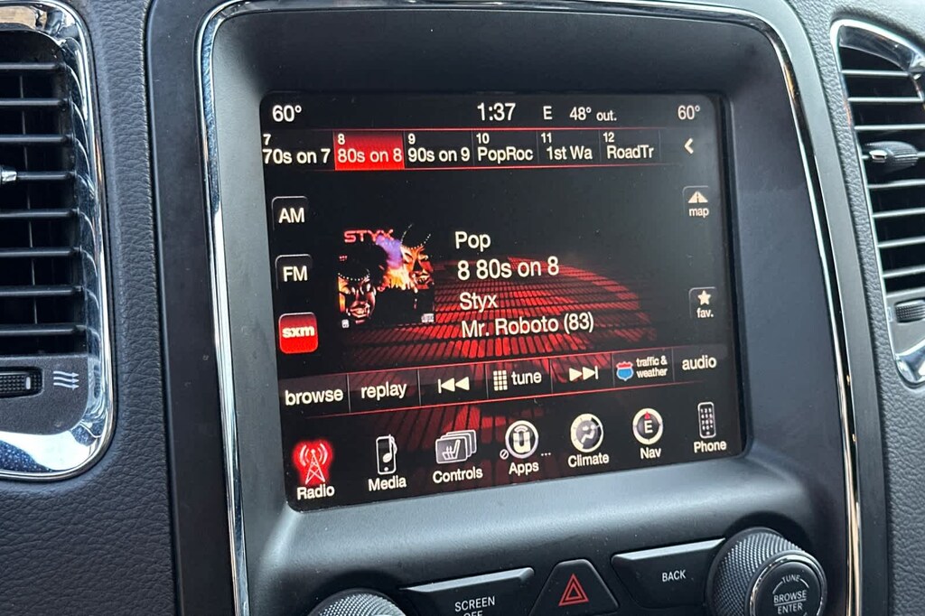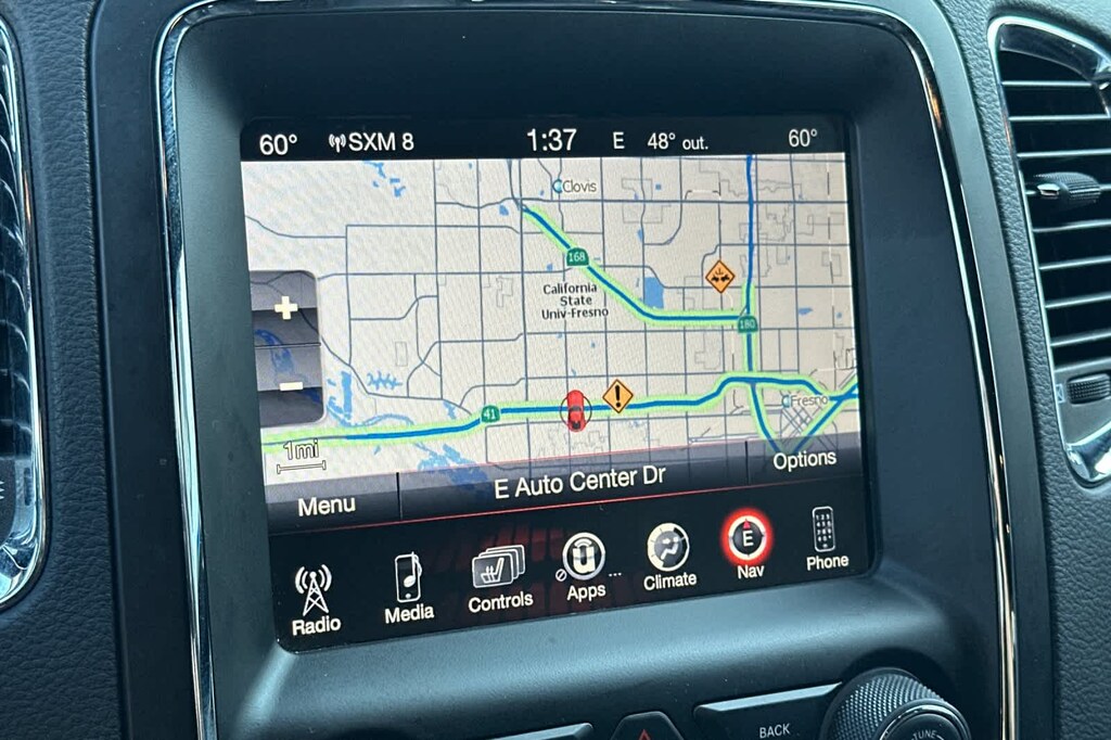 Lithia Ford and Lincoln of Fresno is pleased to offer this DB Black Crystal Clearcoat 2017 Dodge Durango R/T for purchase, this vehicle is well equipped with many features including: Blacktop Package (Gloss Black Badges, Gloss Black Exterior Mirrors, Gloss Black Grille, and Wheels: 20 x 8.0 Gloss Black Aluminum), Quick Order Package 25S, Technology Group (Adaptive Cruise Control w/Stop, Advanced Brake Assist, Blind Spot & Cross Path Detection, Full Speed Forward Collision Warning Plus, and Lane Departure Warning Plus), Trailer Tow Group IV (7 & 4 Pin Wiring Harness, Class IV Receiver Hitch, Heavy-Duty Engine Cooling, and Rear Load Leveling Suspension), 10 Speakers, 3.09 Rear Axle Ratio, 3rd row seats: split-bench, 4-Wheel Disc Brakes, ABS brakes, Air Conditioning, Alloy wheels, AM/FM radio: SiriusXM, Anti-whiplash front head restraints, Audio memory, Auto-dimming door mirrors, Auto-dimming Rear-View mirror, Auto-leveling suspension, Automatic temperature control, Blu-Ray Compatible Dual Screen Video, Brake assist, Bumpers: body-color, Compass, Delay-off headlights, Driver door bin, Driver vanity mirror, Dual front impact airbags, Dual front side impact airbags, Dual Rear Exhaust w/Bright Tips, Electronic Stability Control, Emergency communication system: Uconnect Access, Exterior Parking Camera Rear, Four wheel independent suspension, Front anti-roll bar, Front Bucket Seats, Front Center Armrest w/Storage, Front dual zone A/C, Front fog lights, Front reading lights, Fully automatic headlights, Garage door transmitter, Heated door mirrors, Heated front seats, Heated rear seats, Heated steering wheel, High-Intensity Discharge Headlights, Illuminated entry, Knee airbag, Low tire pressure warning, Lux Leather Trimmed Bucket Seats, Manufacturers Statement of Origin, Memory seat, Navigation system: Garmin, Occupant sensing airbag, Outside temperature display, Overhead airbag, Overhead console, Panic alarm, Passenger door bin, Passenger vanity mirror, Power 8-Way Driver Memory 8-Way Passenger Seats, Power door mirrors, Power driver seat, Power Liftgate, Power passenger seat, Power steering, Power Sunroof, Power windows, Radio data system, Radio: Uconnect 3C Nav w/8.4 Display, Rear air conditioning, Rear anti-roll bar, Rear DVD Entertainment Center, Rear reading lights, Rear seat center armrest, Rear window defroster, Rear window wiper, Rear-Seat Video System, Remote keyless entry, Security system, Speed control, Speed-Sensitive Wipers, Split folding rear seat, Spoiler, Steering wheel mounted audio controls, Tachometer, Telescoping steering wheel, Tilt steering wheel, Traction control, Trip computer, Turn signal indicator mirrors, Variably intermittent wipers, Ventilated front seats, and Wheels: 20 x 8.0 Low Gloss Granite Crystal. RWD HEMI 5.7L V8 Multi Displacement VVT 8-Speed Automatic R/T