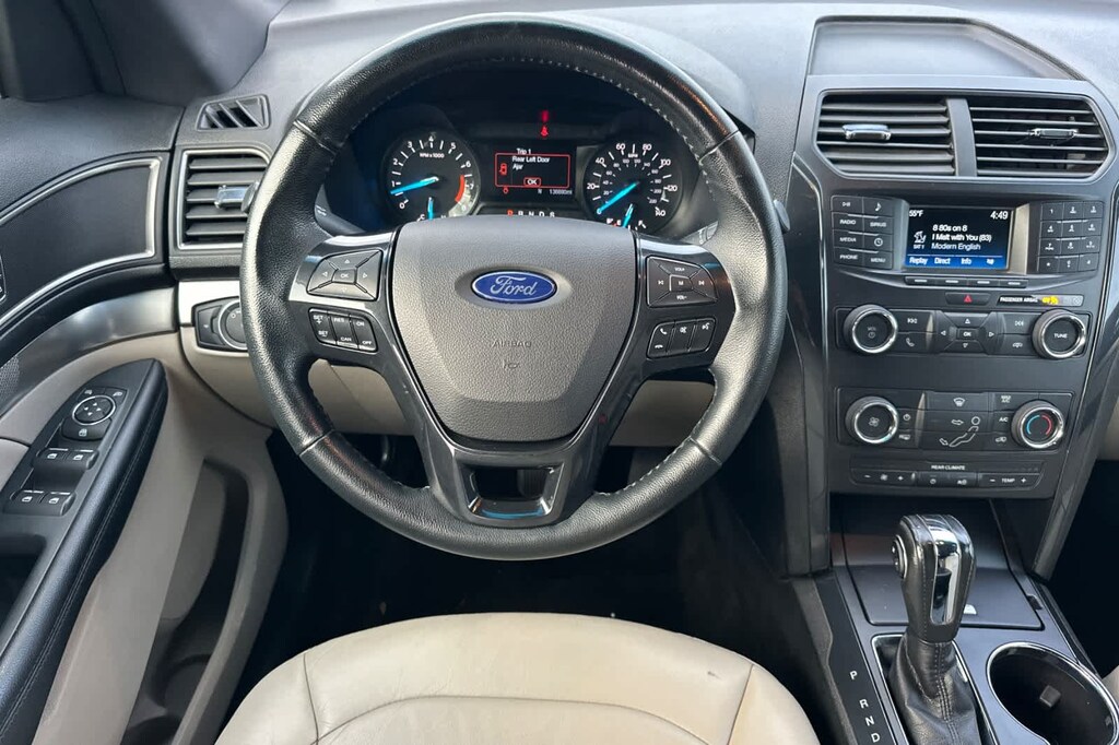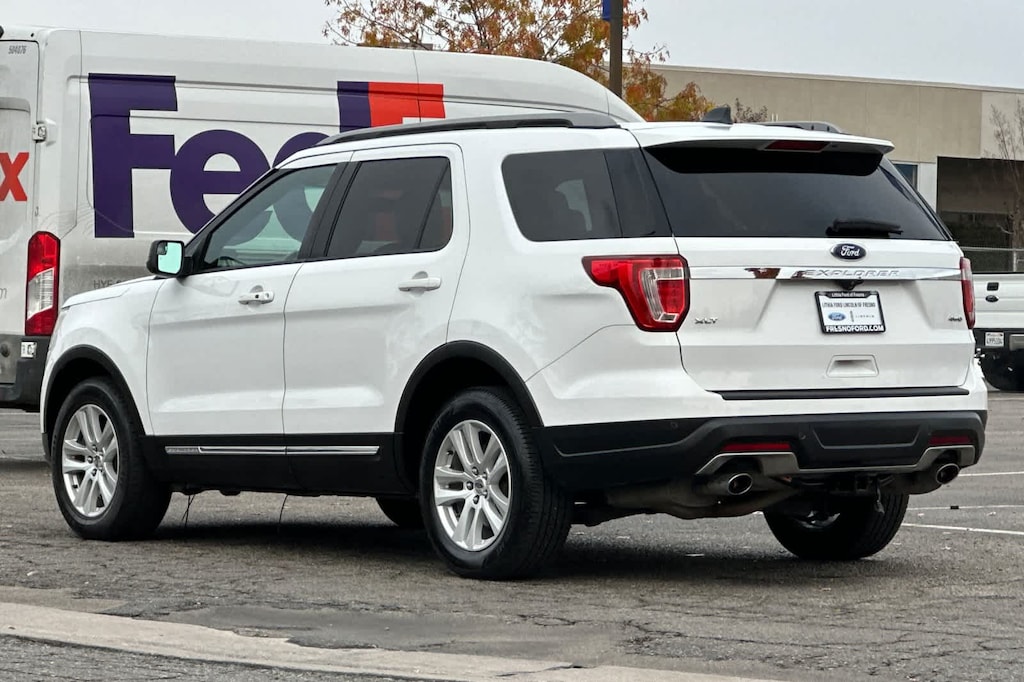 Lithia Ford and Lincoln of Fresno is pleased to offer this Oxford White 2018 Ford Explorer XLT for purchase, this vehicle is well equipped with many features including: 4WD, 3.65 Axle Ratio, 3rd row seats: split-bench, 4-Wheel Disc Brakes, 6 Speakers, ABS brakes, Air Conditioning, Alloy wheels, AM/FM radio: SiriusXM, AM/FM Stereo, Brake assist, Bumpers: body-color, Compass, Delay-off headlights, Driver door bin, Driver vanity mirror, Dual front impact airbags, Dual front side impact airbags, Electronic Stability Control, Emergency communication system: 911 Assist, Exterior Parking Camera Rear, Four wheel independent suspension, Front anti-roll bar, Front Bucket Seats, Front Center Armrest, Front reading lights, Fully automatic headlights, Heated door mirrors, Illuminated entry, Knee airbag, Leather steering wheel, Low tire pressure warning, Occupant sensing airbag, Outside temperature display, Overhead airbag, Overhead console, Panic alarm, Passenger door bin, Passenger vanity mirror, Power door mirrors, Power driver seat, Power passenger seat, Power steering, Power windows, Rear air conditioning, Rear anti-roll bar, Rear Parking Sensors, Rear reading lights, Rear seat center armrest, Rear window defroster, Rear window wiper, Remote keyless entry, Roof rack: rails only, Security system, Speed control, Speed-sensing steering, Speed-Sensitive Wipers, Split folding rear seat, Spoiler, Steering wheel mounted audio controls, SYNC Communication & Entertainment System, Tachometer, Telescoping steering wheel, Tilt steering wheel, Traction control, Trip computer, Variably intermittent wipers, and Wheels: 18 5-Split-Spoke Sparkle Silver-Painted. 4WD 3.5L 6-Cylinder SMPI DOHC 6-Speed Automatic with Select-Shift XLT
