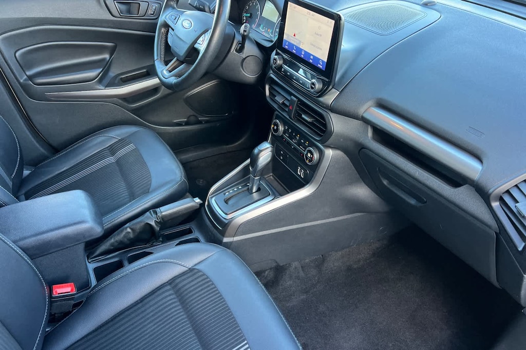 Lithia Ford and Lincoln of Fresno is pleased to offer this Diamond White 2021 Ford EcoSport SES for purchase, this vehicle is well equipped with many features including: Equipment Group 300A, 3.51 Axle Ratio, 4-Wheel Disc Brakes, 7 Speakers, ABS brakes, ActiveX Seating Material Heated Front Bucket Seats, Air Conditioning, Alloy wheels, AM/FM radio: SiriusXM, AppLink/Apple CarPlay and Android Auto, Auto-dimming Rear-View mirror, Automatic temperature control, Brake assist, Bumpers: body-color, Compass, Delay-off headlights, Driver door bin, Driver vanity mirror, Dual front impact airbags, Dual front side impact airbags, Electronic Stability Control, Emergency communication system: SYNC 3 911 Assist, Exterior Parking Camera Rear, Front anti-roll bar, Front Bucket Seats, Front Center Armrest, Front fog lights, Front License Plate Bracket, Front reading lights, Front wheel independent suspension, Fully automatic headlights, Heated door mirrors, Heated front seats, Heated steering wheel, Illuminated entry, Knee airbag, Leather Shift Knob, Low tire pressure warning, Navigation System, Occupant sensing airbag, Outside temperature display, Overhead airbag, Overhead console, Panic alarm, Passenger door bin, Passenger vanity mirror, Power door mirrors, Power driver seat, Power moonroof, Power steering, Power windows, Radio data system, Radio: AM/FM/MP3 Stereo, Rain sensing wipers, Rear anti-roll bar, Rear Parking Sensors, Rear seat center armrest, Rear side impact airbag, Rear window defroster, Rear window wiper, Remote keyless entry, Roof rack: rails only, SiriusXM Radio, SiriusXM Traffic & Travel Link, Speed control, Speed-sensing steering, Split folding rear seat, Spoiler, Steering wheel mounted audio controls, SYNC 3 Communications & Entertainment System, Tachometer, Telescoping steering wheel, Tilt steering wheel, Traction control, Trip computer, Turn signal indicator mirrors, Variably intermittent wipers, and Wheels: 17 Black-Painted Aluminum. 4WD 2.0L I4 Ti-VCT GDI 6-Speed Automatic SES