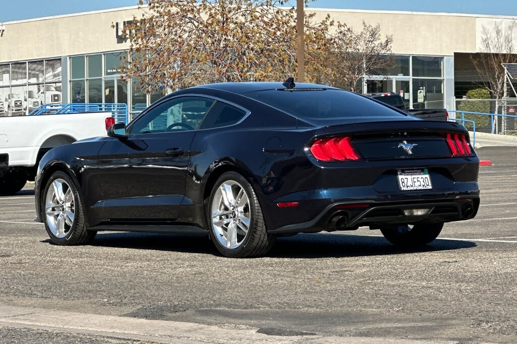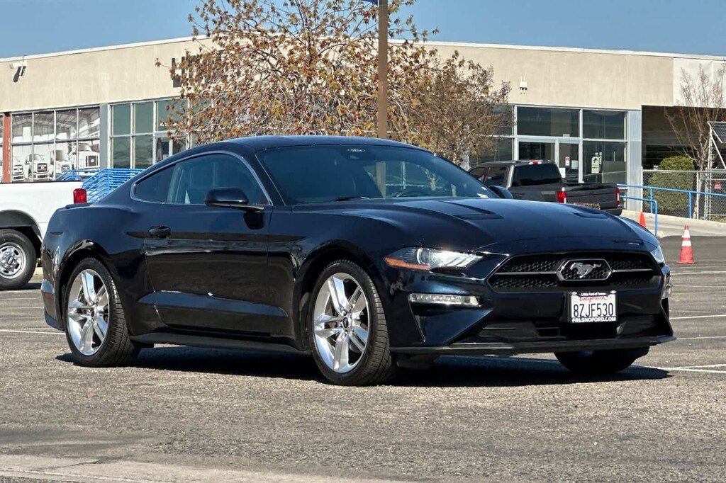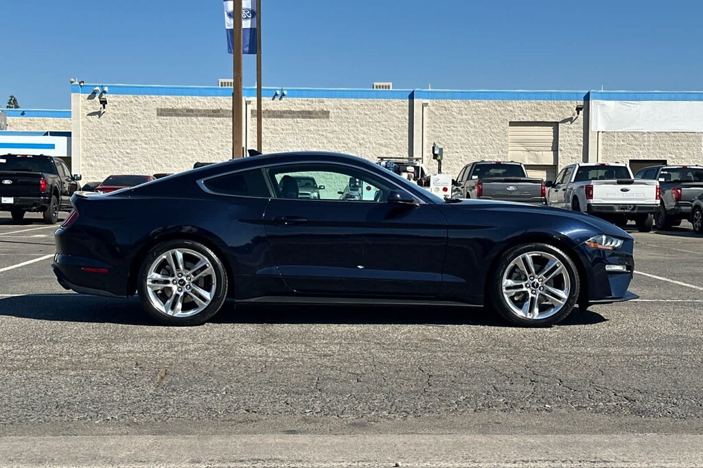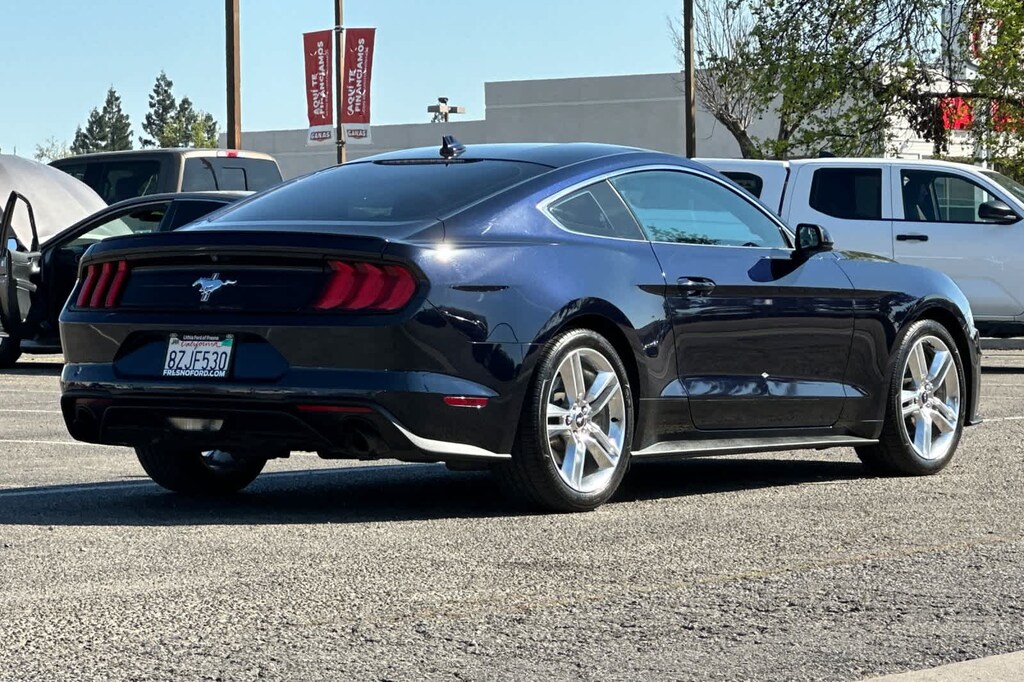 Lithia Ford and Lincoln of Fresno is pleased to offer this Antimatter Blue Metallic 2021 Ford Mustang EcoBoost Premium for purchase, this vehicle is well equipped with many features including: Equipment Group 200A, Pony Package (19 x 8.5 Polished Aluminum Wheels, Bright Beltline & Window Surround, Premium Carpeted Floor Mats, Tri-Bar Pony Badge, and Unique Bright Upper Grille), 4-Wheel Disc Brakes, 9 Speakers, ABS brakes, ActiveX Bucket Seats, Air Conditioning, Alloy wheels, AM/FM radio: SiriusXM, AM/FM Stereo, Auto High-beam Headlights, Auto-dimming Rear-View mirror, Automatic temperature control, Black Front & Rear Pony Badges, Brake assist, Bumpers: body-color, Climate Controlled Heated/Cooled Front Seats, Compass, Delay-off headlights, Driver door bin, Driver vanity mirror, Dual front impact airbags, Dual front side impact airbags, Ebony Side Stripe, Electronic Stability Control, Emergency communication system: 911 Assist, Exterior Parking Camera Rear, Four wheel independent suspension, Front anti-roll bar, Front Bucket Seats, Front Center Armrest, Front dual zone A/C, Front fog lights, Front reading lights, Fully automatic headlights, Heated door mirrors, Heated front seats, Illuminated entry, Knee airbag, Leather Shift Knob, Low tire pressure warning, Occupant sensing airbag, Outside temperature display, Overhead airbag, Overhead console, Panic alarm, Passenger door bin, Passenger vanity mirror, Power door mirrors, Power driver seat, Power passenger seat, Power steering, Power windows, Radio data system, Rain sensing wipers, Rear anti-roll bar, Rear window defroster, Remote keyless entry, Security system, SiriusXM Radio, Speed control, Speed-sensing steering, Speed-Sensitive Wipers, Split folding rear seat, Spoiler, Steering wheel mounted audio controls, SYNC 3 Communications & Entertainment System, Tachometer, Telescoping steering wheel, Tilt steering wheel, Traction control, Trip computer, Variably intermittent wipers, Ventilated front seats, Voltmeter, and Wheels: 18 x 8 Machined-Face Aluminum. RWD EcoBoost 2.3L I4 GTDi DOHC Turbocharged VCT 10-Speed Automatic EcoBoost Premium