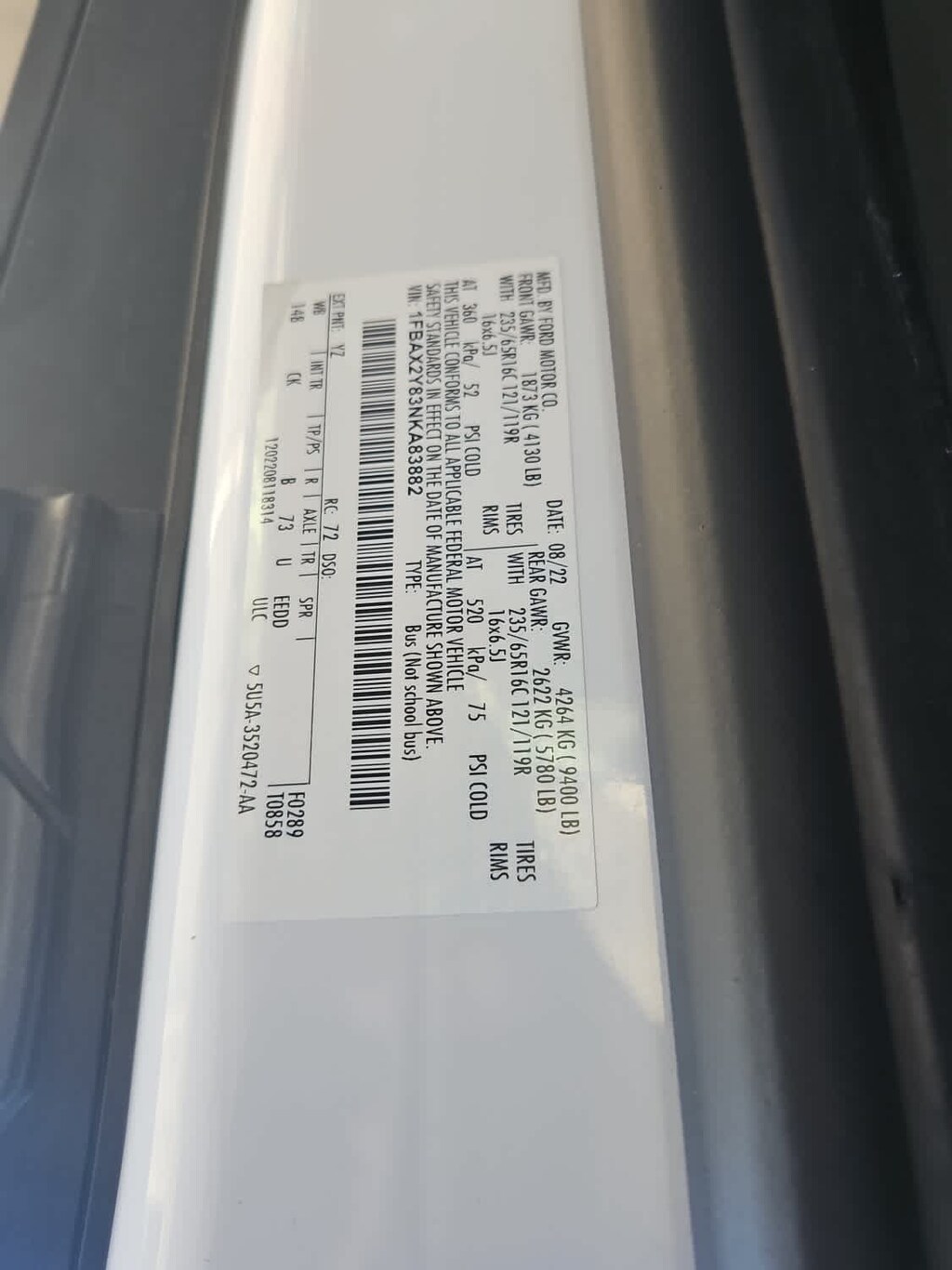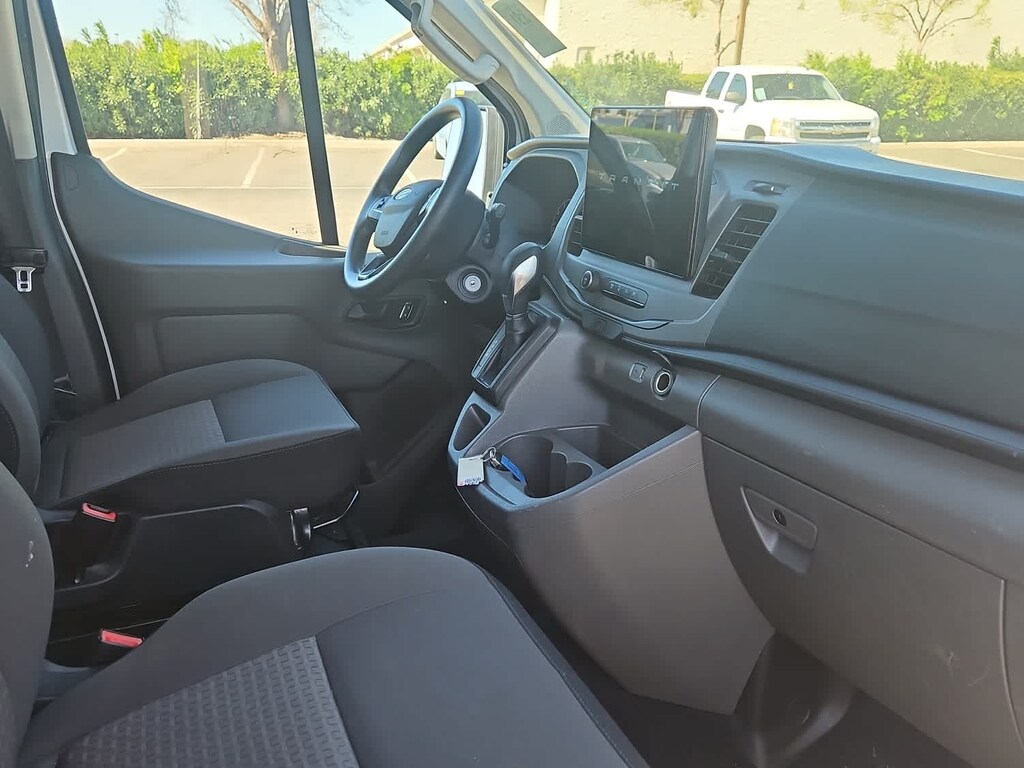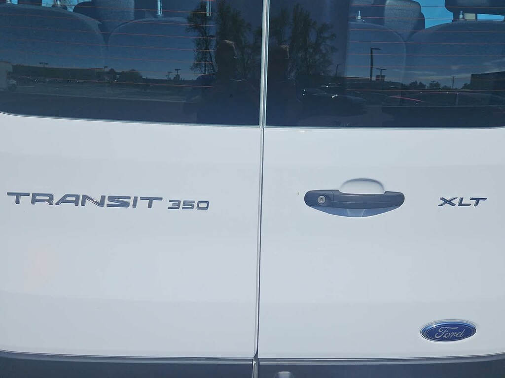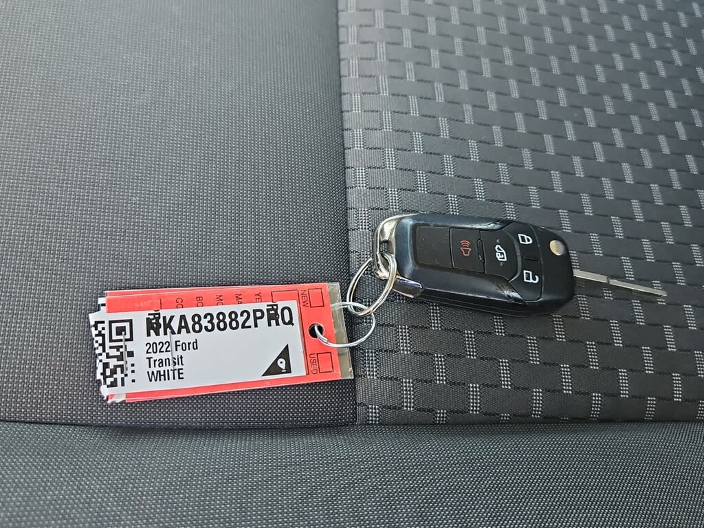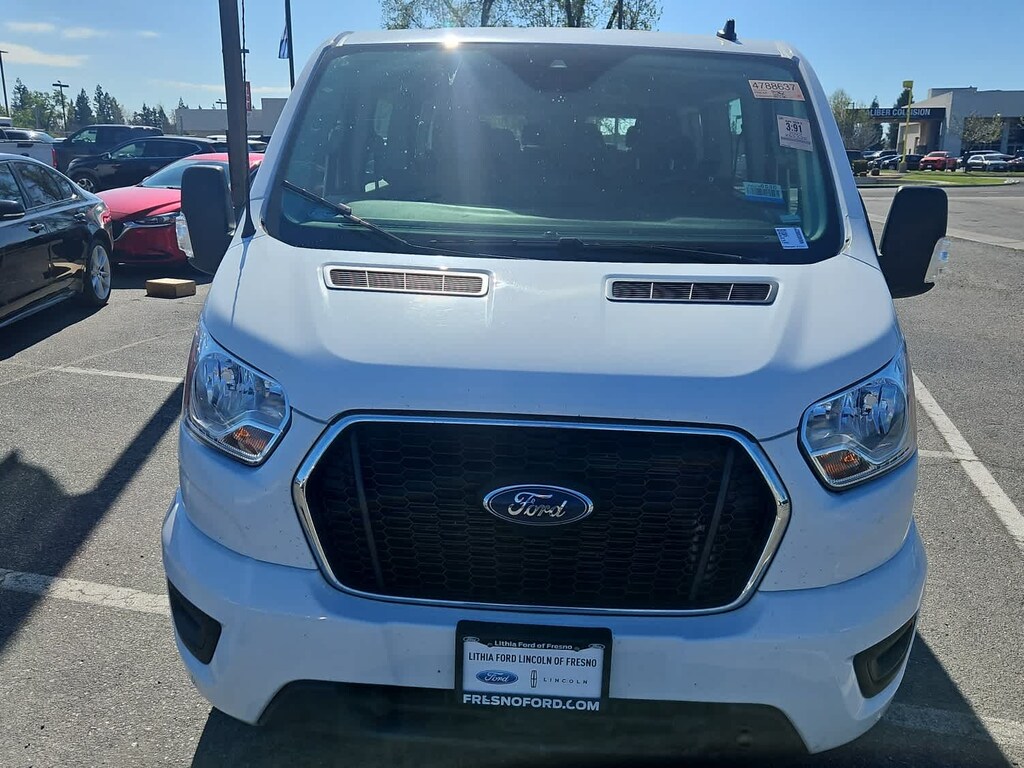 1st row: 2 seats, 2nd row: 3 seats, 3rd row: 3 seats, 4th row: 3 seats and 5th row: 4 seats, GVWR: 9,400 lbs, auxiliary transmission oil cooler (STD). 2022 Ford Transit Passenger Wagon with Oxford White exterior and Dark Palazzo Gray interior features a V6 Cylinder Engine with 275 HP at 6250 RPM*.