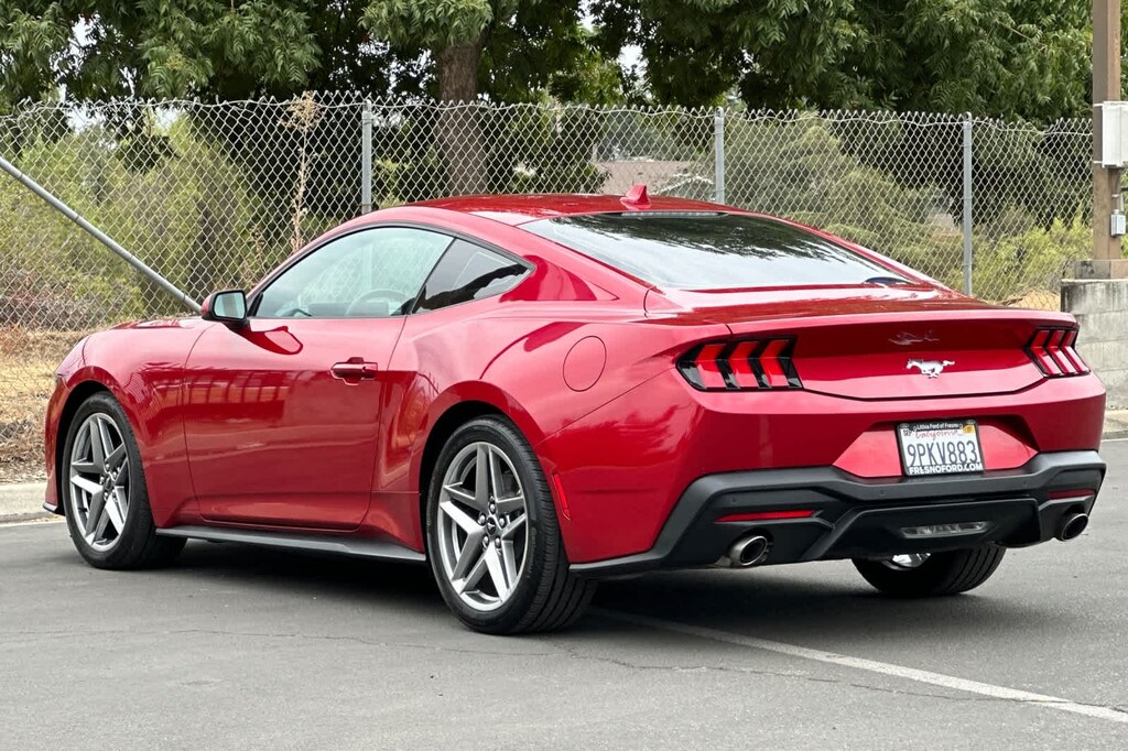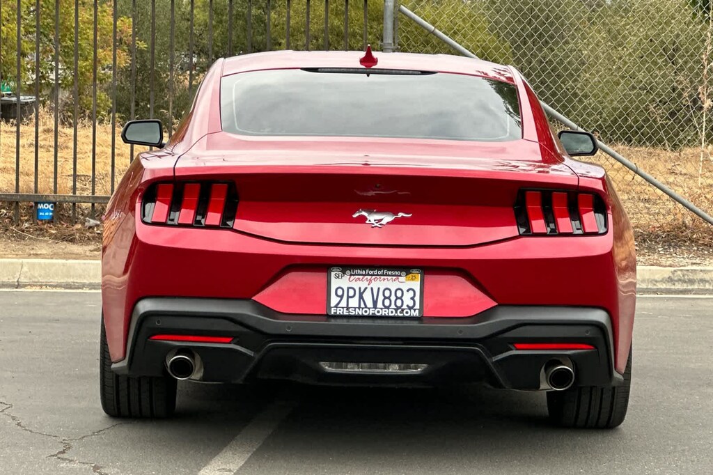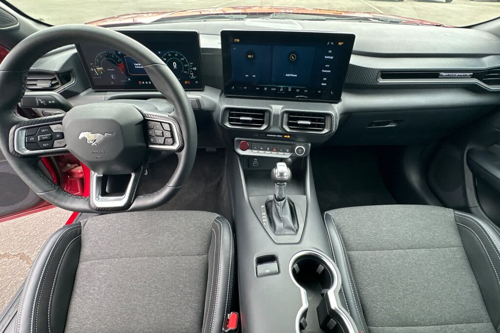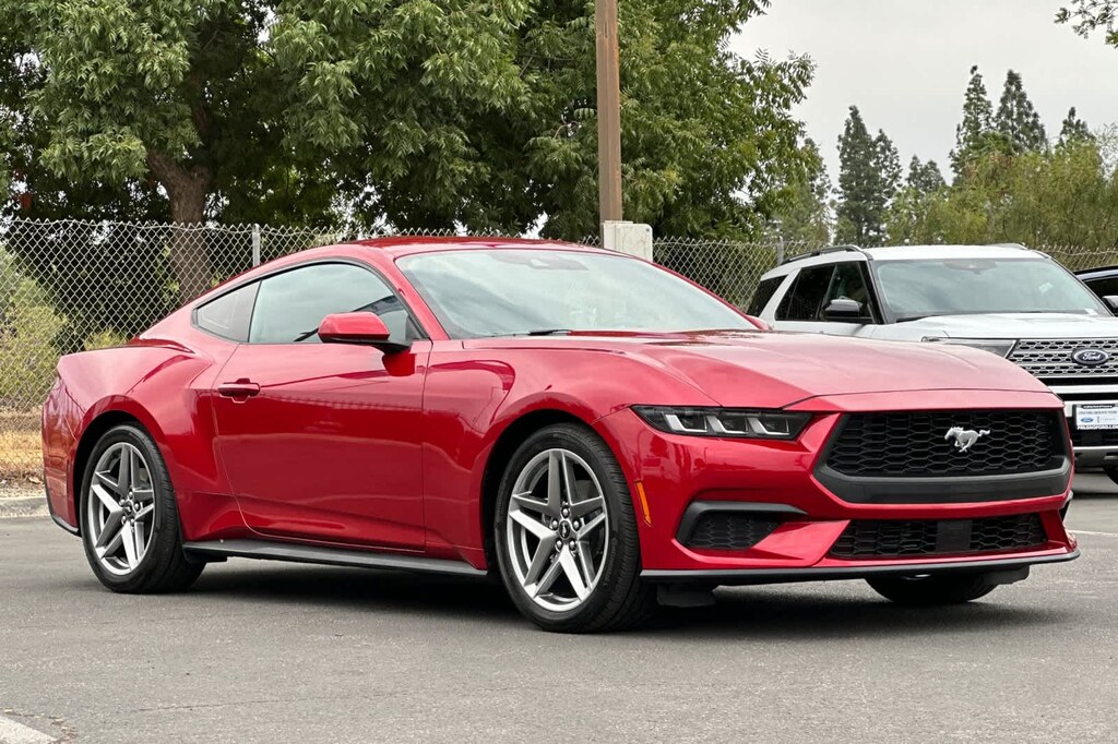 Lithia Ford and Lincoln of Fresno is pleased to offer this Rapid Red Metallic Tinted Clearcoat 2024 Ford Mustang EcoBoost for purchase, this vehicle is well equipped with many features including: Equipment Group 101A High Package (9-Speaker Stereo System, Cloth/Vinyl Heated Bucket Seats, Dual-Zone Electronic Automatic Temperature Control, and SiriusXM w/360L & HD Radio), 4-Wheel Disc Brakes, 6 Speakers, ABS brakes, Air Conditioning, Alloy wheels, AM/FM radio, AM/FM Stereo, Auto High-beam Headlights, Automatic temperature control, Brake assist, Bumpers: body-color, Cloth Bucket Seats, Compass, Delay-off headlights, Driver door bin, Driver vanity mirror, Dual front impact airbags, Dual front side impact airbags, Electronic Stability Control, Emergency communication system: 911 Assist, Exterior Parking Camera Rear, Four wheel independent suspension, Front anti-roll bar, Front Bucket Seats, Front Center Armrest, Front reading lights, Fully automatic headlights, Illuminated entry, Knee airbag, Leather Shift Knob, Low tire pressure warning, Occupant sensing airbag, Outside temperature display, Overhead airbag, Overhead console, Panic alarm, Passenger door bin, Passenger vanity mirror, Power door mirrors, Power steering, Power windows, Radio data system, Rain sensing wipers, Rear anti-roll bar, Rear Parking Sensors, Rear window defroster, Remote keyless entry, Speed control, Speed-sensing steering, Speed-Sensitive Wipers, Split folding rear seat, Sport steering wheel, Steering wheel mounted audio controls, SYNC 4.0 QNX, Tachometer, Telescoping steering wheel, Tilt steering wheel, Traction control, Trip computer, Variably intermittent wipers, Voltmeter, Wheels: 18 x 8 Machined-Face Aluminum, and Wheels: 19 x 8.5 Premier Polished Aluminum. RWD EcoBoost 2.3L I4 GTDi DOHC Turbocharged VCT 10-Speed Automatic EcoBoost