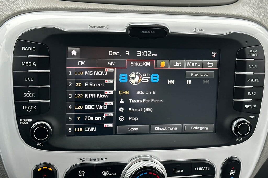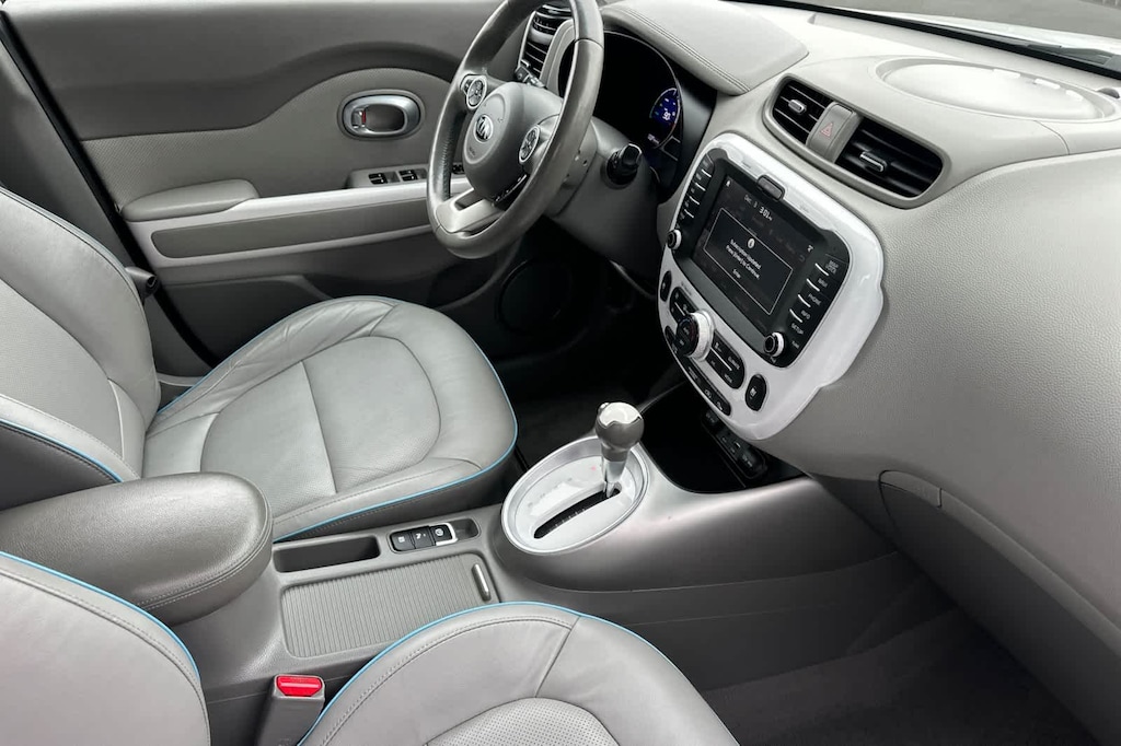 Lithia Ford and Lincoln of Fresno is pleased to offer this Clear White 2017 Kia Soul EV Plus for purchase, this vehicle is well equipped with many features including: Navigation System, 4-Wheel Disc Brakes, 6 Speakers, ABS brakes, Air Conditioning, Alloy wheels, AM/FM radio: SiriusXM, Apple CarPlay & Android Auto, Auto-dimming Rear-View mirror, Automatic temperature control, Brake assist, Bumpers: body-color, Carpeted Floor Mats, Delay-off headlights, Driver door bin, Driver vanity mirror, Dual front impact airbags, Dual front side impact airbags, Electronic Stability Control, Exterior Parking Camera Rear, Front anti-roll bar, Front Bucket Seats, Front Center Armrest, Front dual zone A/C, Front fog lights, Front reading lights, Front wheel independent suspension, Fully automatic headlights, Heated & Ventilated Front Bucket Seats, Heated door mirrors, Heated front seats, Heated rear seats, Heated steering wheel, Illuminated entry, Leather Seat Trim, Leather Shift Knob, Leather steering wheel, Low tire pressure warning, Occupant sensing airbag, Outside temperature display, Overhead airbag, Overhead console, Panic alarm, Passenger door bin, Passenger vanity mirror, Power door mirrors, Power steering, Power windows, Premium audio system: UVO, Radio: AM/FM/MP3/SiriusXM Audio System, Rear Bumper Applique, Rear seat center armrest, Rear window defroster, Rear window wiper, Remote keyless entry, Speed control, Speed-sensing steering, Split folding rear seat, Steering wheel mounted audio controls, Telescoping steering wheel, Tilt steering wheel, Traction control, Trip computer, Turn signal indicator mirrors, Variably intermittent wipers, Ventilated front seats, and Wheels: 16 Alloy Dark Gray w/Satin Metal Spokes. FWD Electric Motor 1-Speed Automatic Plus
