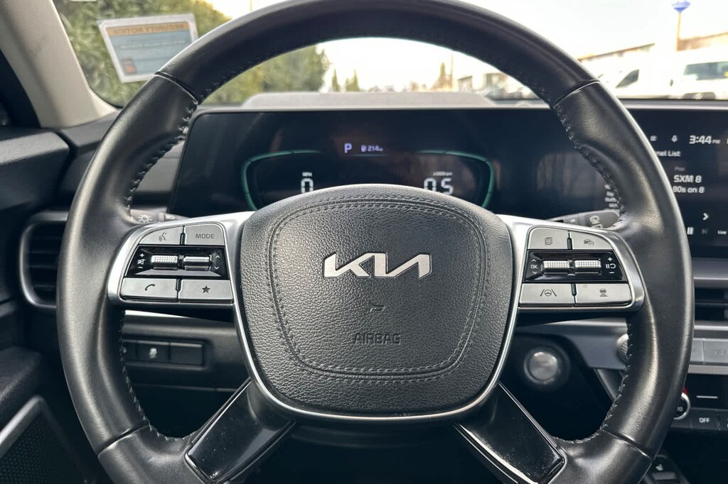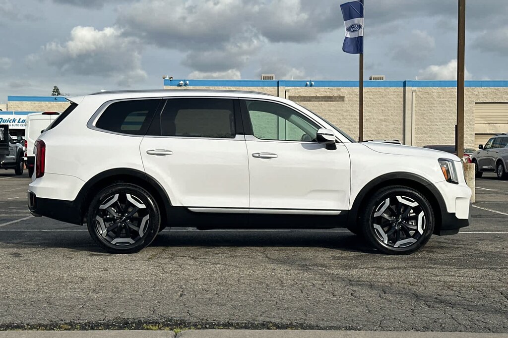 Lithia Ford and Lincoln of Fresno is pleased to offer this Glacial White Pearl 2023 Kia Telluride S for purchase, this vehicle is well equipped with many features including: S Sunroof Package (Power Sunroof w/Sunshade), Navigation System, 3.510 Axle Ratio, 3rd row seats: split-bench, 4-Wheel Disc Brakes, 6 Speakers, ABS brakes, Air Conditioning, Alloy wheels, AM/FM radio: SiriusXM, Apple CarPlay & Android Auto, Auto High-beam Headlights, Automatic temperature control, Brake assist, Bumpers: body-color, Carpet Floor Mats, Delay-off headlights, Driver door bin, Driver vanity mirror, Dual front impact airbags, Dual front side impact airbags, Electronic Stability Control, Emergency communication system: 911 Connect, Exterior Parking Camera Rear, Four wheel independent suspension, Front anti-roll bar, Front Bucket Seats, Front Center Armrest, Front dual zone A/C, Front reading lights, Fully automatic headlights, Heated door mirrors, Heated Front Bucket Seats, Heated front seats, Hybrid Cargo Net, Illuminated entry, Knee airbag, Leather Shift Knob, Leather steering wheel, Low tire pressure warning, Occupant sensing airbag, Outside temperature display, Overhead airbag, Overhead console, Panic alarm, Passenger door bin, Passenger vanity mirror, Power door mirrors, Power driver seat, Power steering, Power windows, Radio data system, Radio: AM/FM Display Audio System, Rear air conditioning, Rear anti-roll bar, Rear audio controls, Rear reading lights, Rear side impact airbag, Rear window defroster, Rear window wiper, Reclining 3rd row seat, Remote keyless entry, Roof rack: rails only, Security system, Smart Key w/ Push Button and Remote Start, Speed control, Speed-sensing steering, Split folding rear seat, Spoiler, Steering wheel mounted audio controls, SynTex Synthetic Leather Seat Trim, Tachometer, Telescoping steering wheel, Tilt steering wheel, Traction control, Trip computer, Turn signal indicator mirrors, Variably intermittent wipers, and Wheels: 20 x 7.5 Black Finish. FWD 3.8L V6 DGI DOHC Dual CVVT 8-Speed Automatic S