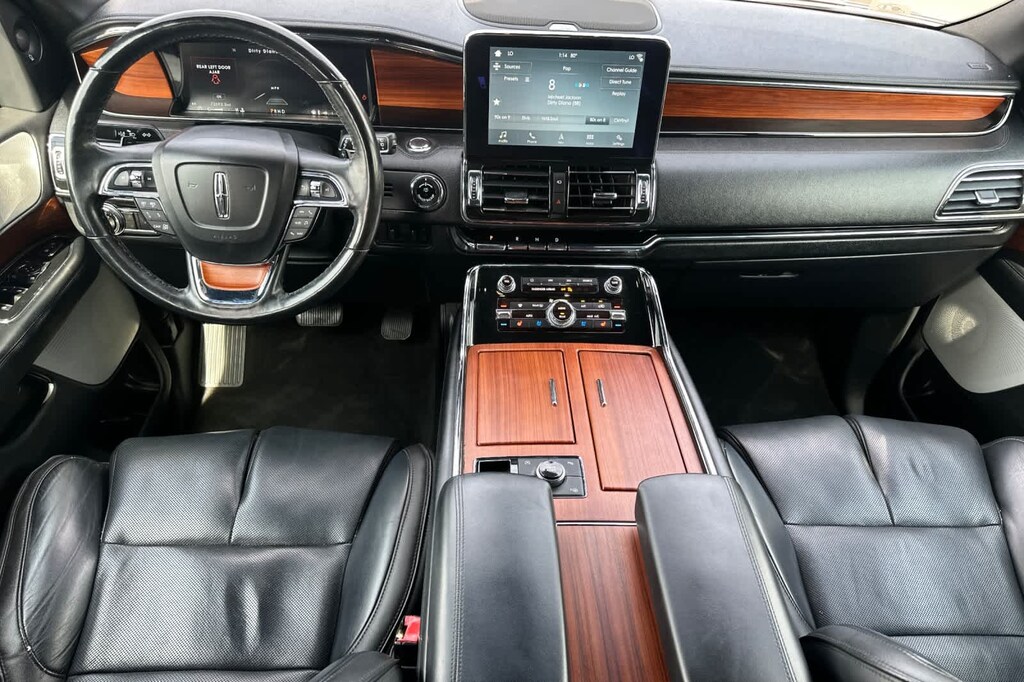 Lithia Ford and Lincoln of Fresno is pleased to offer this Magnetic Gray 2018 Lincoln Navigator Reserve for purchase, this vehicle is well equipped with many features including: Cargo Package (Bright Roof Rack w/Crossbars), Equipment Group 300A Reserve, GVWR: 7,625 lbs Payload Package, Heavy-Duty Trailer Tow Package (Electronic Traction Assist (eLSD), Heavy-Duty Radiator, Pro Trailer Backup Assist, and Trailer Brake Controller (TBC)), Technology Package (Adaptive Cruise Control, Auto High Beam, Auto Park Active Park Assist, Head-Up Display, Lane Keeping System, and Pre-Collision Assist w/Pedestrian Detection), 4WD, Ebony Leather, 14 Speakers, 2nd Row Heated 40/20/40 Split Bench Seat, 3.73 Axle Ratio, 3rd row seats: split-bench, 4-Wheel Disc Brakes, ABS brakes, Adaptive suspension, Adjustable pedals, Air Conditioning, Alloy wheels, AM/FM radio: SiriusXM, AppLink/Apple CarPlay and Android Auto, Audio memory, Auto tilt-away steering wheel, Auto-dimming door mirrors, Auto-dimming Rear-View mirror, Auto-leveling suspension, Automatic temperature control, Bodyside moldings, Brake assist, Bumpers: body-color, Compass, Delay-off headlights, Driver door bin, Driver vanity mirror, Drivers Seat Mounted Armrest, Dual front impact airbags, Dual front side impact airbags, Electronic Stability Control, Emergency communication system: 911 Assist, Exterior Parking Camera Rear, Four wheel independent suspension, Front anti-roll bar, Front Bucket Seats, Front dual zone A/C, Front fog lights, Front reading lights, Fully automatic headlights, Garage door transmitter: HomeLink, Genuine wood dashboard insert, Genuine wood door panel insert, Heated door mirrors, Heated front seats, Heated rear seats, Heated steering wheel, HVAC memory, Illuminated entry, Leather steering wheel, Low tire pressure warning, Memory seat, Navigation System, Occupant sensing airbag, Outside temperature display, Overhead airbag, Overhead console, Panic alarm, Passenger door bin, Passenger seat mounted armrest, Passenger vanity mirror, Pedal memory, Perfect Position Seating w/Active Motion, Power door mirrors, Power driver seat, Power Liftgate, Power moonroof: Panoramic Vista Roof, Power passenger seat, Power steering, Power windows, Premium Lthr Htd/Ventilated Low-Back Bucket Seats, Radio data system, Radio: Revel AM/FM/HD/MP3 Audio System, Rain sensing wipers, Rear air conditioning, Rear anti-roll bar, Rear audio controls, Rear reading lights, Rear window defroster, Rear window wiper, Reclining 3rd row seat, Remote keyless entry, Revel Ultima Audio System w/20 Speakers, Roof rack: rails only, Security system, SiriusXM Radio, Speed control, Speed-sensing steering, Speed-Sensitive Wipers, Split folding rear seat, Spoiler, Steering wheel memory, Steering wheel mounted audio controls, SYNC 3 Communications & Entertainment System, Tachometer, Telescoping steering wheel, Tilt steering wheel, Traction control, Trip computer, Turn signal indicator mirrors, Variably intermittent wipers, Ventilated front seats, and Wheels: 22 16-Spoke Ultra-Bright Machined Alum. 4WD V6 10-Speed Automatic Reserve