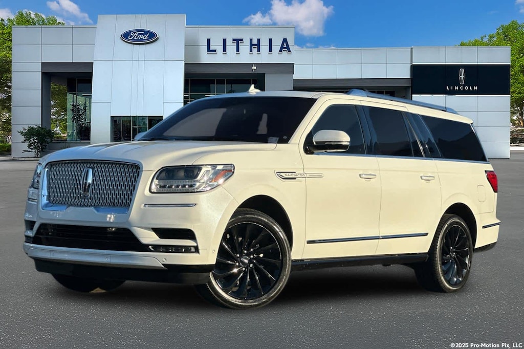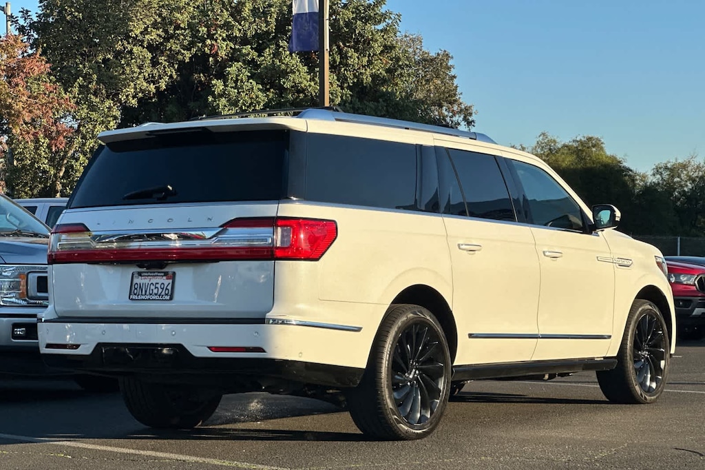 Lithia Ford and Lincoln of Fresno is pleased to offer this White 2020 Lincoln Navigator L Reserve for purchase, this vehicle is well equipped with many features including: GVWR: 7,800 lbs Payload Package, 14 Speakers, 3.73 Axle Ratio, 3rd row seats: split-bench, 4-Wheel Disc Brakes, ABS brakes, Adaptive suspension, Adjustable pedals, Air Conditioning, Alloy wheels, AM/FM radio: SiriusXM, Audio memory, Auto High-beam Headlights, Auto tilt-away steering wheel, Auto-dimming door mirrors, Auto-dimming Rear-View mirror, Auto-leveling suspension, Automatic temperature control, Bodyside moldings, Brake assist, Bumpers: body-color, Compass, Delay-off headlights, Driver door bin, Driver vanity mirror, Drivers Seat Mounted Armrest, Dual front impact airbags, Dual front side impact airbags, Electronic Stability Control, Emergency communication system: 911 Assist, Exterior Parking Camera Rear, Four wheel independent suspension, Front anti-roll bar, Front Bucket Seats, Front dual zone A/C, Front fog lights, Front reading lights, Fully automatic headlights, Garage door transmitter, Genuine wood dashboard insert, Genuine wood door panel insert, Head restraints memory, Heads-Up Display, Heated door mirrors, Heated front seats, Heated rear seats, Heated steering wheel, HVAC memory, Illuminated entry, Knee airbag, Leather steering wheel, Low tire pressure warning, Memory seat, Navigation System, Occupant sensing airbag, Outside temperature display, Overhead airbag, Overhead console, Panic alarm, Passenger door bin, Passenger seat mounted armrest, Passenger vanity mirror, Pedal memory, Power adjustable rear head restraints, Power door mirrors, Power driver seat, Power Liftgate, Power moonroof: Panoramic Vista Roof, Power passenger seat, Power steering, Power windows, Premium Lthr Htd/Ventilated Low Back Comfort Seats, Radio data system, Radio: Revel AM/FM/HD/MP3 Audio System, Rain sensing wipers, Rear air conditioning, Rear anti-roll bar, Rear audio controls, Rear reading lights, Rear window defroster, Rear window wiper, Reclining 3rd row seat, Remote keyless entry, Security system, SiriusXM Radio, Speed control, Speed-sensing steering, Speed-Sensitive Wipers, Split folding rear seat, Spoiler, Steering wheel memory, Steering wheel mounted audio controls, SYNC 3 Communications & Entertainment System, Tachometer, Telescoping steering wheel, Tilt steering wheel, Traction control, Trip computer, Turn signal indicator mirrors, Variably intermittent wipers, Ventilated front seats, Voice-Activated Touchscreen Navigation System, and Wheels: 22 12-Spoke Ultra Bright Machined Alum. 4WD V6 10-Speed Automatic Reserve