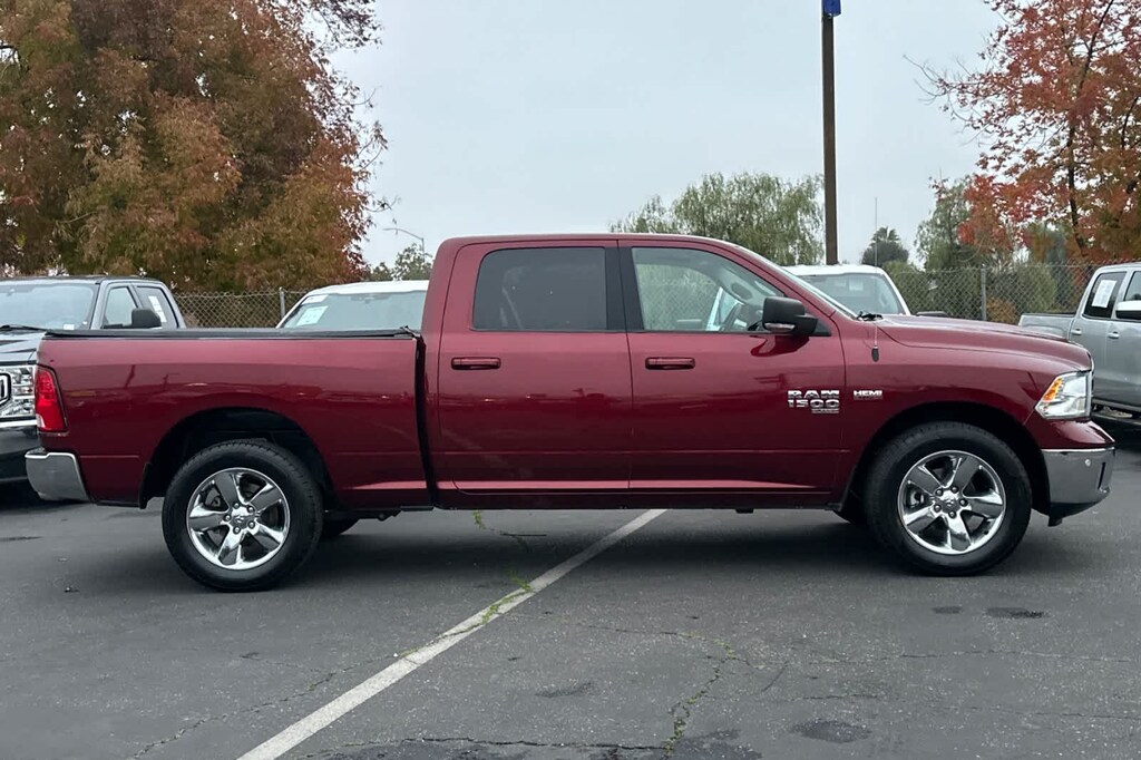 Lithia Ford and Lincoln of Fresno is pleased to offer this Delmonico Red Pearlcoat 2019 Ram 1500 Classic Big Horn for purchase, this vehicle is well equipped with many features including: Big Horn Regional Package, Quick Order Package 27S Big Horn (1-Yr SiriusXM Guardian Trial, 115V Auxiliary Power Outlet, 40/20/40 Split Bench Seat, 8.4 Touchscreen Display, Air Conditioning ATC w/Dual Zone Control, Apple CarPlay, Auto-Dimming Exterior Mirrors, Auto-Dimming Rear-View Mirror, Big Horn Badge, Bright/Bright Billets Grille, Class IV Receiver Hitch, Cloth 40/20/40 Premium Bench Seat, Cluster 7.0 TFT Color Display, Dual Rear Exhaust w/Bright Tips, Electric Shift-On-Demand Transfer Case, Exterior Mirrors Courtesy Lamps, Exterior Mirrors w/Supplemental Signals, Folding Flat Load Floor Storage, Front Armrest w/3 Cupholders, Front Center Seat Cushion Storage, Front Fog Lamps, Glove Box Lamp, Google Android Auto, GPS Antenna Input, HD Radio, Humidity Sensor, Integrated Voice Command w/Bluetooth, Leather Wrapped Steering Wheel, LED Bed Lighting, Media Hub (2 USB, AUX), Overhead Console w/Garage Door Opener, ParkSense Ft/Rr Park Assist System, Power 10-Way Driver Seat, Power Heated Fold-Away Mirrors, Power Lumbar Adjust, Power-Folding Mirrors, Radio: Uconnect 4C w/8.4 Display, Rear 60/40 Split Folding Seat, Rear Dome w/On/Off Switch Lamp, Rear Floor Mats, Rear Power Sliding Window, Remote Start System, Remote USB Port - Charge Only, Security Alarm, SiriusXM Satellite Radio, Steering Wheel Mounted Audio Controls, Storage Tray, Sun Visors w/Illuminated Vanity Mirrors, Universal Garage Door Opener, USB Host Flip, and Wheels: 20 x 8 Aluminum Chrome Clad), 3.21 Rear Axle Ratio, 4-Wheel Disc Brakes, 6 Speakers, ABS brakes, Air Conditioning, Alloy wheels, AM/FM radio: SiriusXM, Black Exterior Mirrors, Brake assist, Bumpers: chrome, Center Hub, Compass, Delay-off headlights, Driver door bin, Dual front impact airbags, Dual front side impact airbags, Electronic Stability Control, Exterior Mirrors w/Heating Element, Front anti-roll bar, Front Center Armrest w/Storage, Front reading lights, Front wheel independent suspension, Fully automatic headlights, Heated door mirrors, Illuminated entry, Low tire pressure warning, Manufacturers Statement of Origin, Occupant sensing airbag, Outside temperature display, Overhead airbag, Overhead console, Panic alarm, ParkView Rear Back-Up Camera, Passenger door bin, Passenger vanity mirror, Power door mirrors, Power steering, Power windows, Radio data system, Rear anti-roll bar, Rear seat center armrest, Rear step bumper, Remote keyless entry, Speed control, Tachometer, Tilt steering wheel, Traction control, Trip computer, Variably intermittent wipers, and Voltmeter. 4WD HEMI 5.7L V8 Multi Displacement VVT 8-Speed Automatic Big Horn