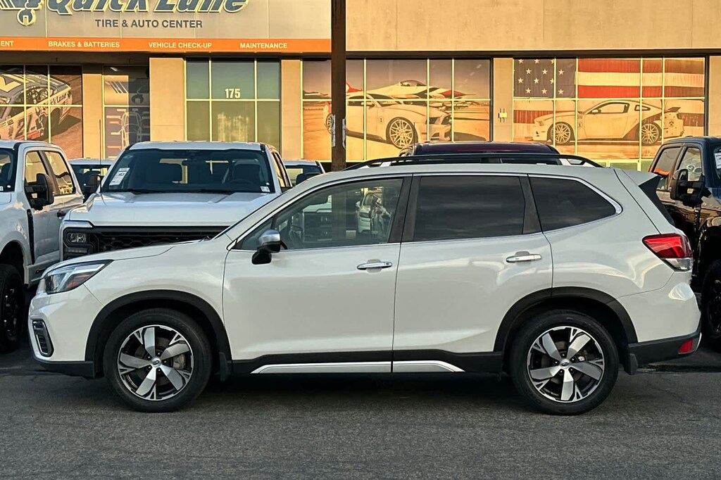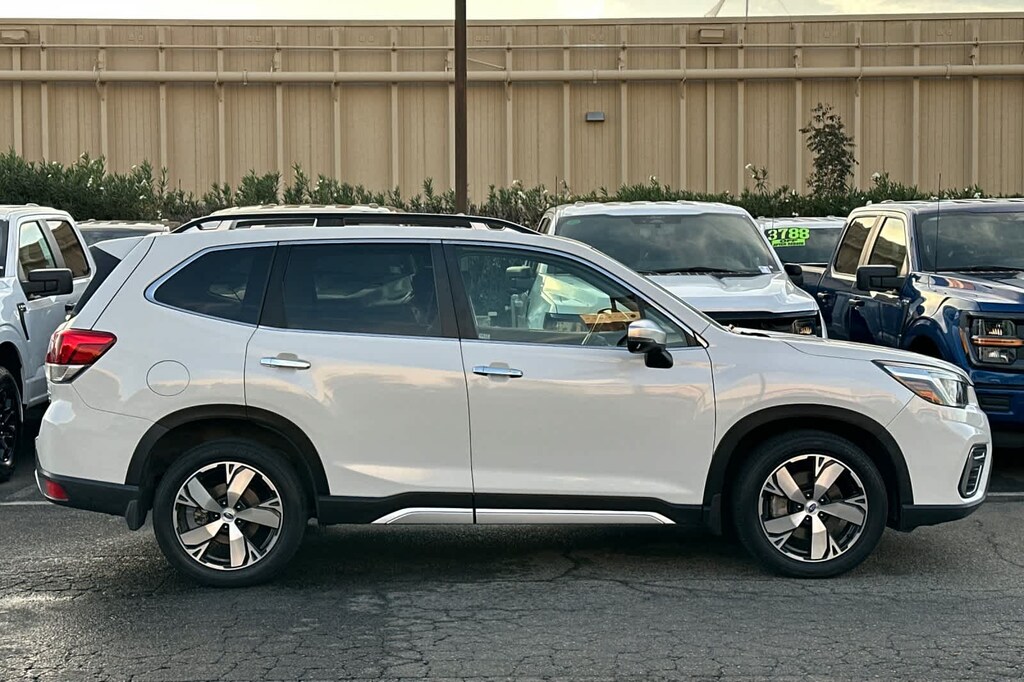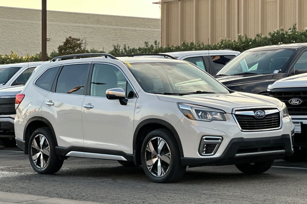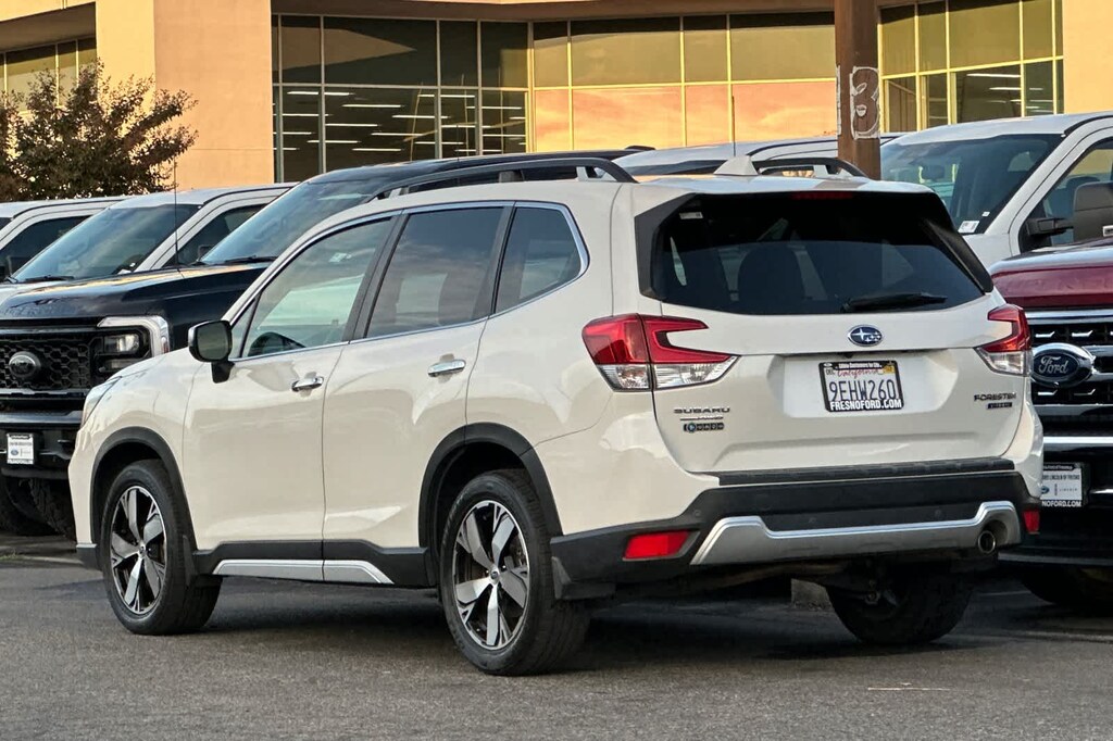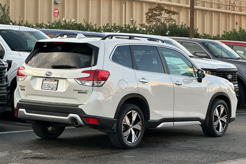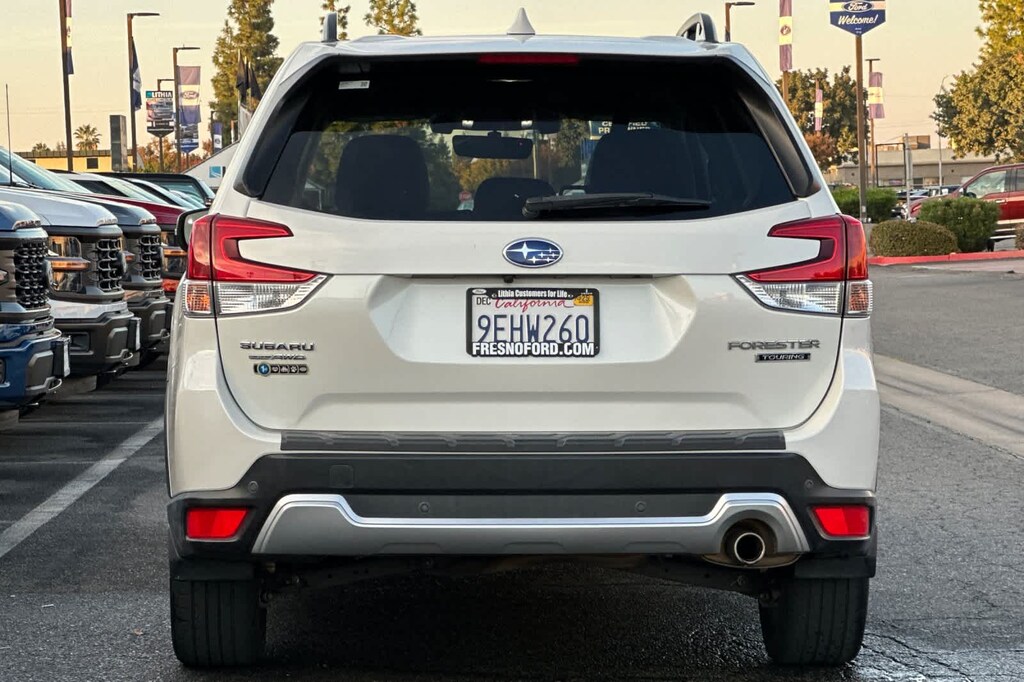 Lithia Ford and Lincoln of Fresno is pleased to offer this Crystal White Pearl 2019 Subaru Forester Touring for purchase, this vehicle is well equipped with many features including: 3.70 Axle Ratio, 4-Wheel Disc Brakes, 9 Speakers, ABS brakes, Air Conditioning, Alloy wheels, AM/FM radio: SiriusXM, Auto High-beam Headlights, Automatic temperature control, Brake assist, Bumpers: body-color, CD player, Driver door bin, Driver vanity mirror, Dual front impact airbags, Dual front side impact airbags, Electronic Stability Control, Emergency communication system: STARLINK Safety and Security, Exterior Parking Camera Rear, Four wheel independent suspension, Front anti-roll bar, Front Bucket Seats, Front Center Armrest, Front dual zone A/C, Front fog lights, Front reading lights, Fully automatic headlights, harman kardon 576W Amp & Speaker System, harman/kardon® Speakers, Heated door mirrors, Heated Front Bucket Seats, Heated front seats, Heated rear seats, Heated steering wheel, HVAC memory, Illuminated entry, Knee airbag, Leather Shift Knob, Low tire pressure warning, Memory seat, Navigation System, Occupant sensing airbag, Outside temperature display, Overhead airbag, Overhead console, Paddle-Shift Control Switches, Panic alarm, Passenger door bin, Passenger vanity mirror, Perforated Leather-Trimmed Upholstery, Power door mirrors, Power driver seat, Power Liftgate, Power moonroof: Panoramic, Power passenger seat, Power steering, Power windows, Radio data system, Radio: Subaru Starlink 8.0 Multimedia Nav System, Rear anti-roll bar, Rear seat center armrest, Rear window defroster, Rear window wiper, Remote keyless entry, Roof rack: rails only, Security system, Speed control, Speed-sensing steering, Split folding rear seat, Spoiler, STARLINK/Apple CarPlay/Android Auto, Steering wheel mounted audio controls, Tachometer, Telescoping steering wheel, Tilt steering wheel, Traction control, Trip computer, Turn signal indicator mirrors, Variably intermittent wipers, and Wheels: 18 x 7.0J Blk Machine Touring Alum Alloy. AWD 2.5L 4-Cylinder DOHC 16V VVT Lineartronic CVT Touring